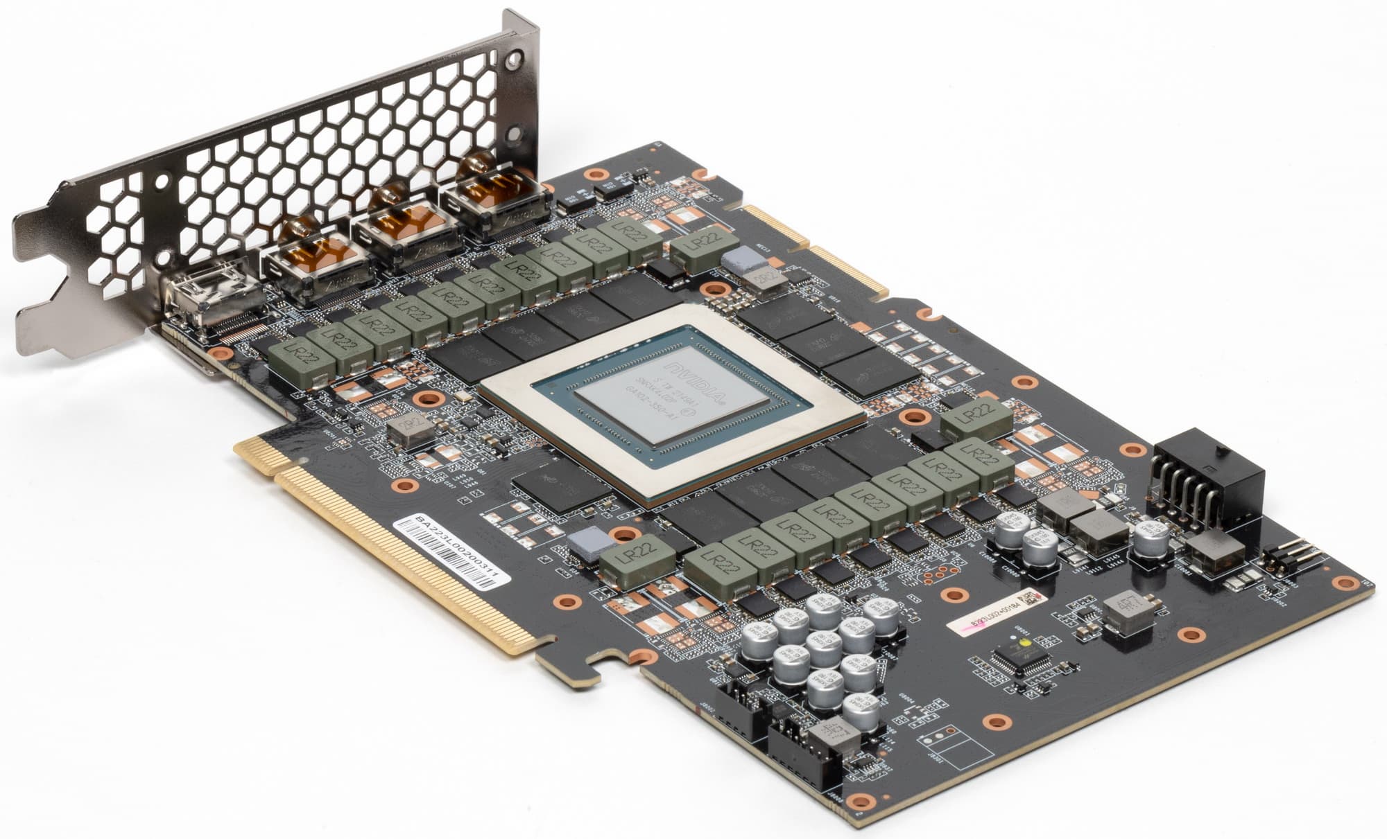 Карта имеет стандартный набор гнезд вывода информации: три DP 1.4a и один HDMI 2.1.