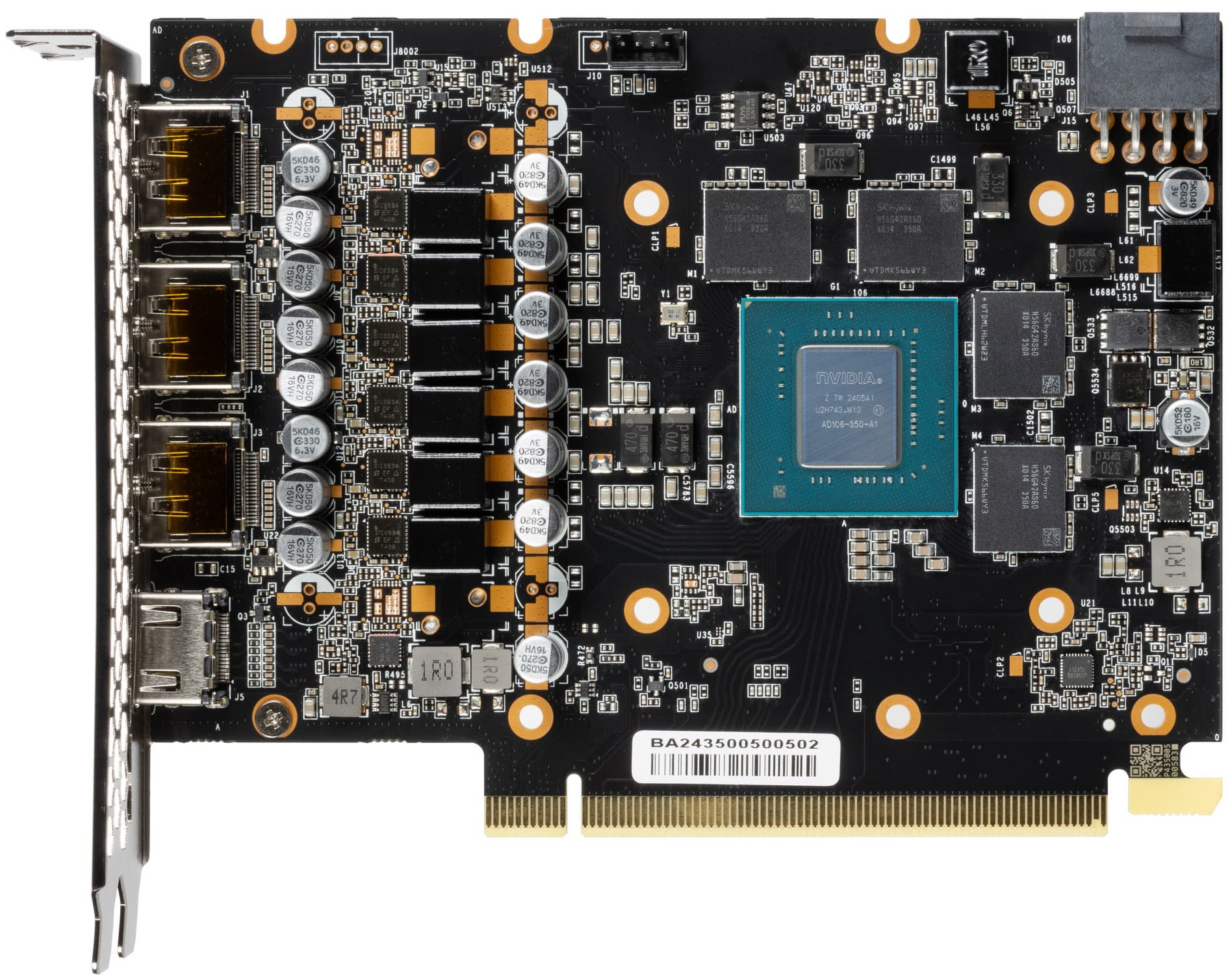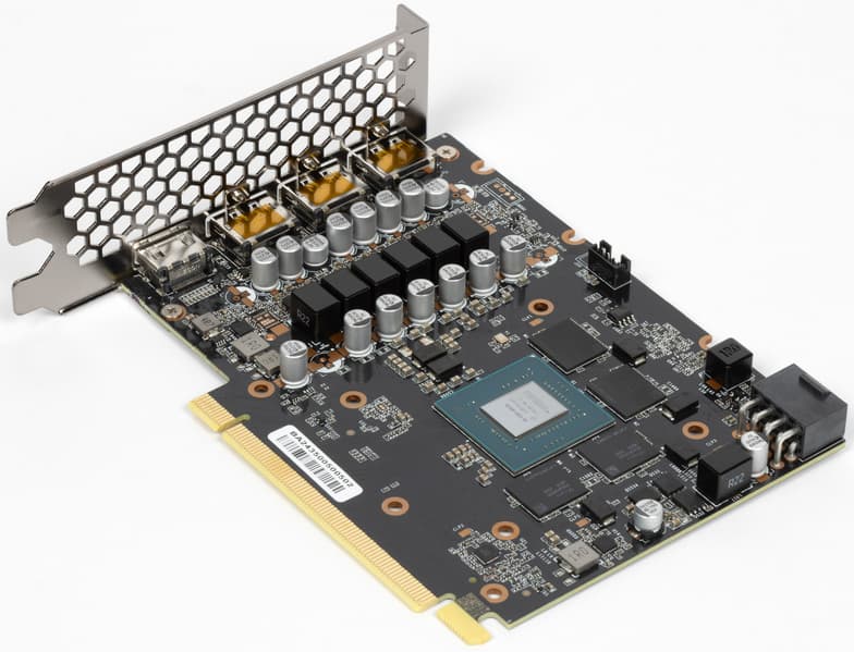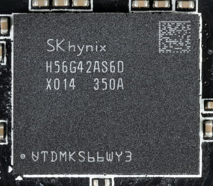 Карта имеет 8 ГБ памяти GDDR6 SDRAM, размещенной в 4 микросхемах по 16 Гбит на лицевой стороне PCB. Микросхемы памяти SK hynix (H56G42AS6DX014) рассчитаны на номинальную частоту работы в 2250 (18000) МГц.