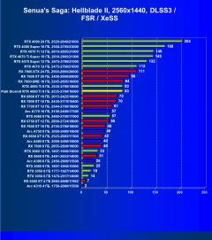 - Результаты тестов со включенной аппаратной трассировкой лучей и/или DLSS/FSR/XeSS в разрешениях 1920×1080, 2560×1440 и 3840×2160