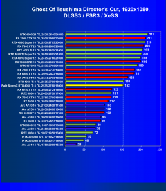 Если же задействовать трассировку лучей и, опять же, DLSS 3, то ситуация для GeForce RTX 4060 Ti кардинально улучшается, в своей группе этот ускоритель начинает лидировать с большим отрывом.