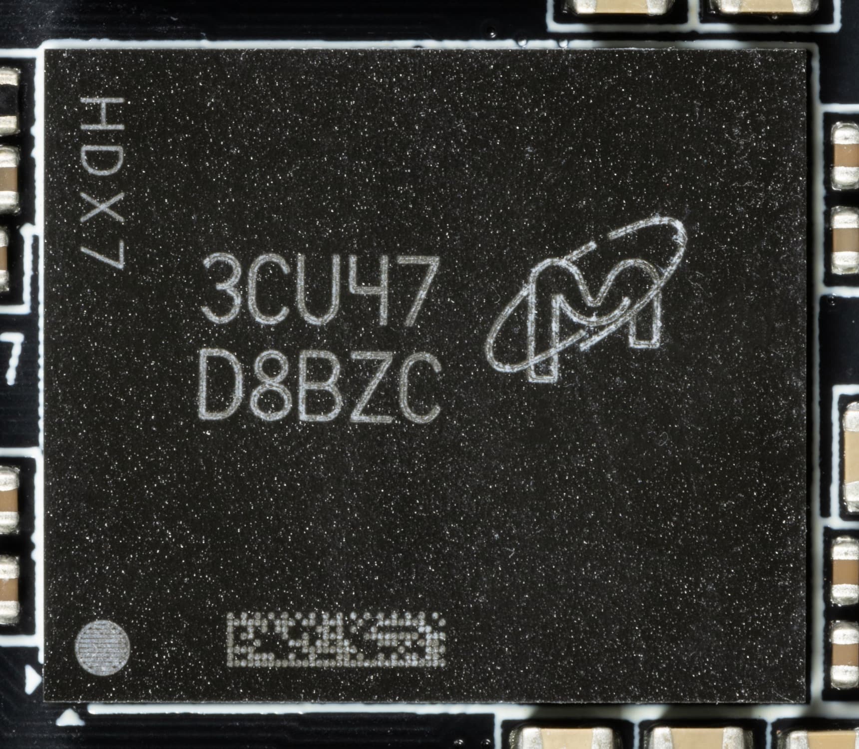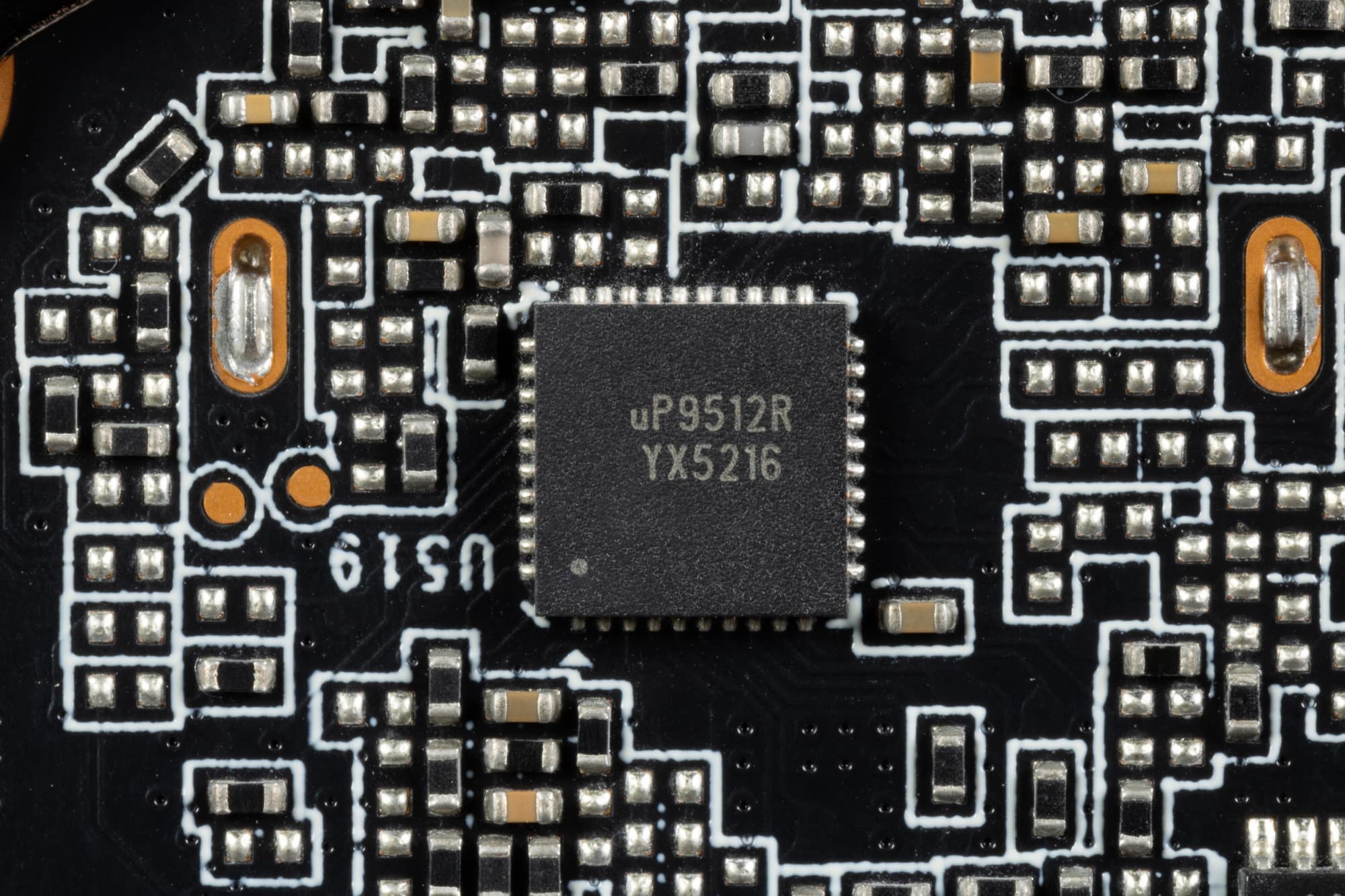 Питанием микросхем памяти управляет о ШИМ-контроллер uP9529Q (uPI Semiconductor), также расположенный на оборотной стороне PCB.