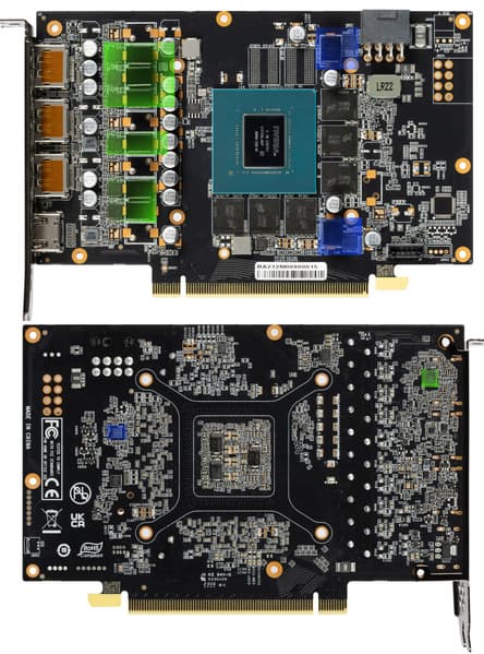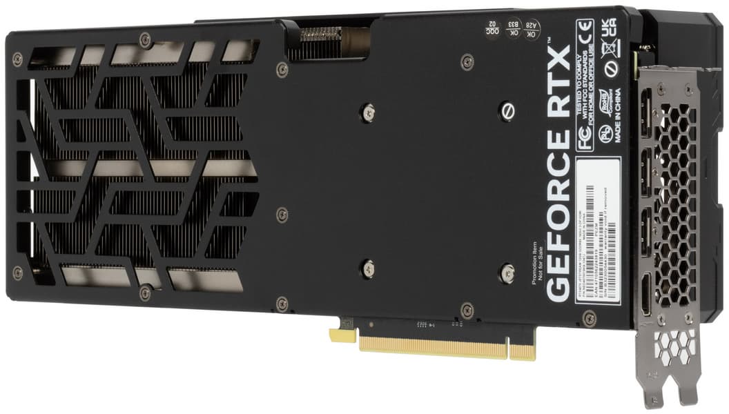 Как и все новинки из серии GeForce RTX 40, карта требует относительно мощного блока питания и просторного корпуса с хорошим продувом, она имеет длину 329 мм и занимает 4 слота. Карта может потреблять примерно до 200 Вт, она имеет один 8-контактный разъем питания. Система охлаждения тихая, но при этом очень эффективная. Карта не имеет возможности повысить лимит потребления для эффективного ручного разгона. Также стоит отметить отсутствие подсветки и фактическое отсутствие комплекта поставки.