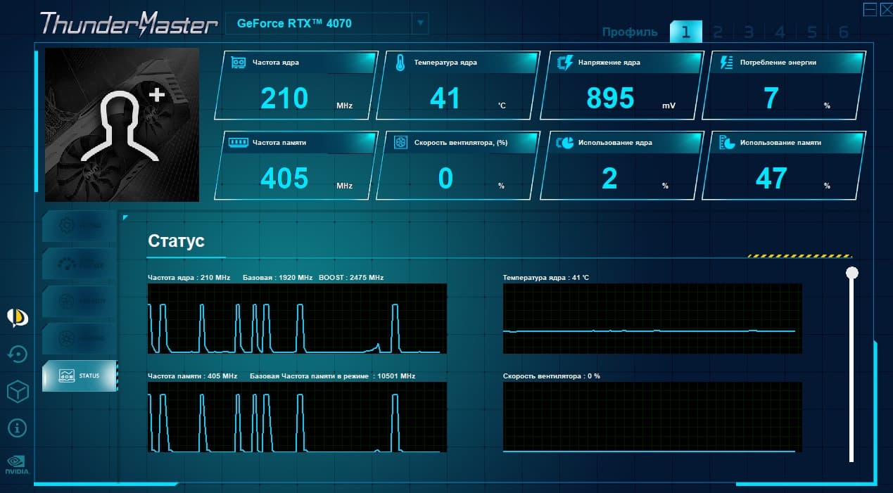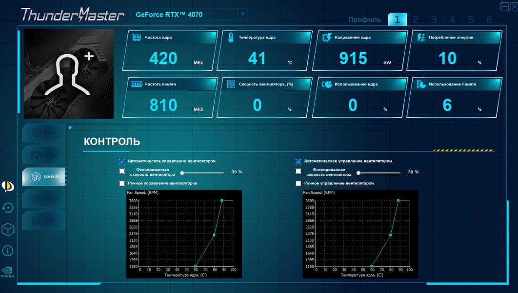 Эта программа предоставляет управление вентиляторами, частотами работы карты, напряжением ядра и слежение за состоянием карты (мониторинг).