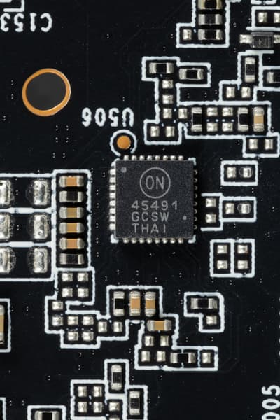 На тыльной стороне платы имеется контроллер NCP45491 (On Semiconductor), который отвечает за мониторинг карты (отслеживание напряжений и температуры).