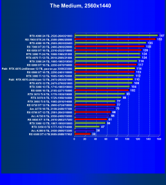 - Стандартные результаты тестов без использования аппаратной трассировки лучей в разрешениях 1920×1080, 2560×1440 и 3840×2160