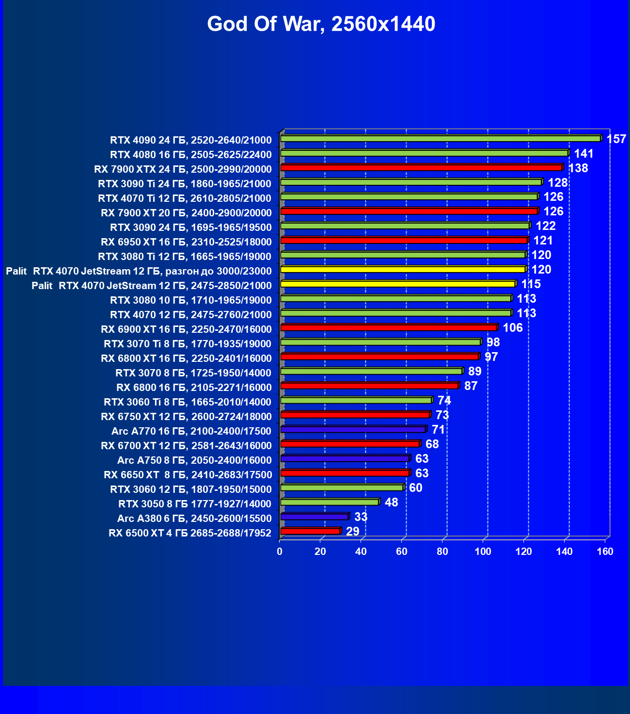 | 03 | Palit RTX 4070 JetStream 12 ГБ, разгон до 3000/23000 | 122 | 765 | 62 500 |