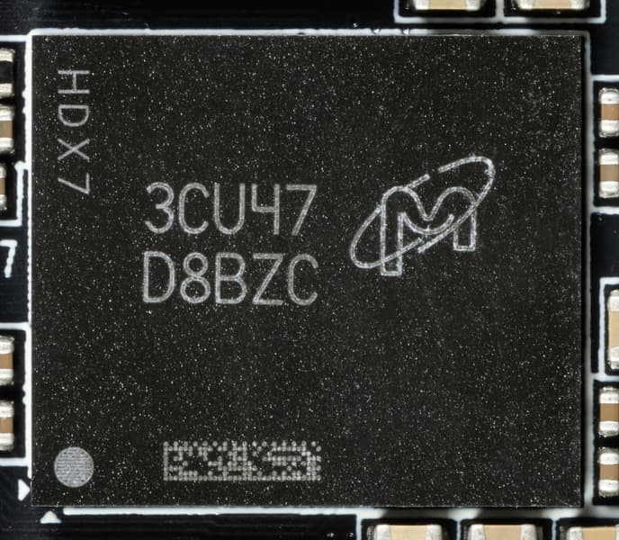 Карта имеет 12 ГБ памяти GDDR6X SDRAM, размещенной в 6 микросхемах по 16 Гбит на лицевой стороне PCB. Микросхемы памяти Micron (GDDR6X, MT61K512M32KPA-21 / D8BZC) рассчитаны на номинальную частоту работы в 2625 (21000) МГц.