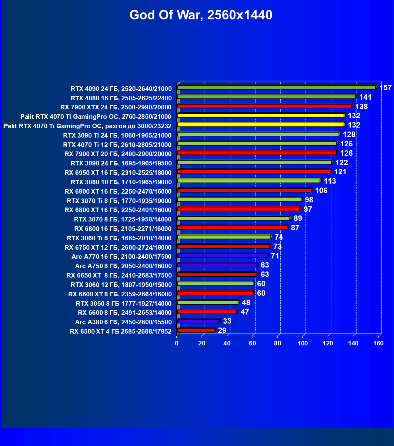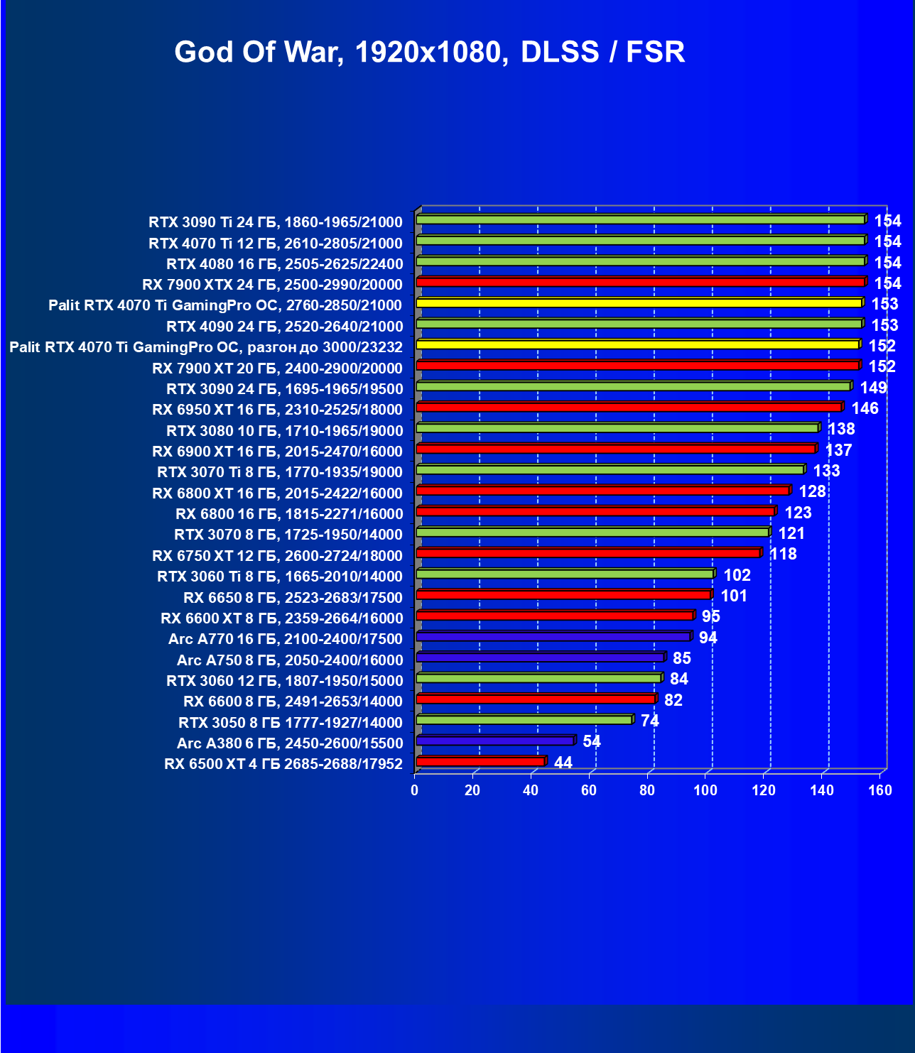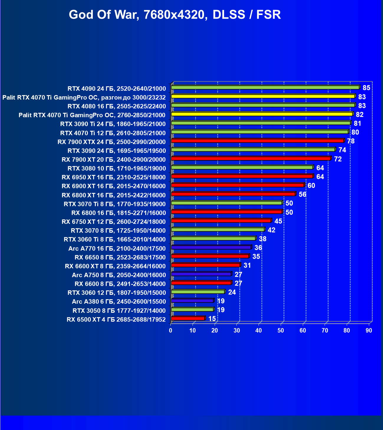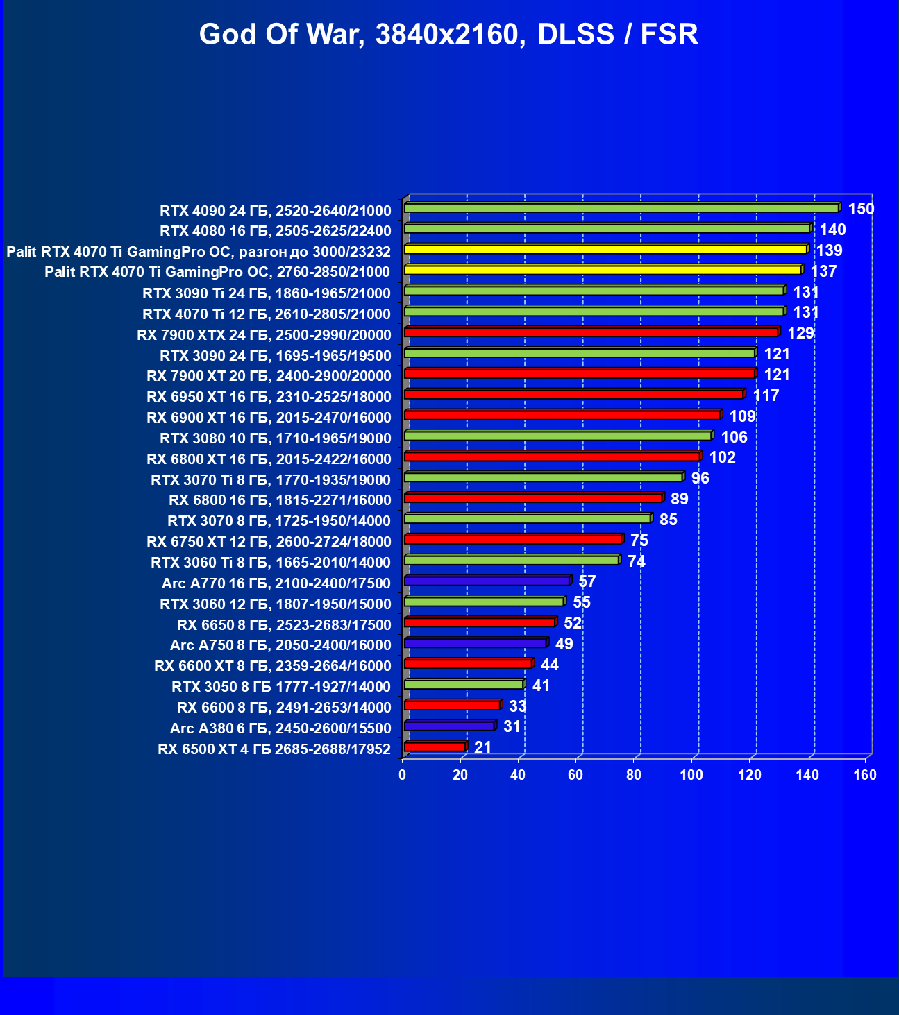 | 02 | Palit RTX 4070 Ti GamingPro OC, разгон до 3000/23232 | 130 | 999 | 77 000 |