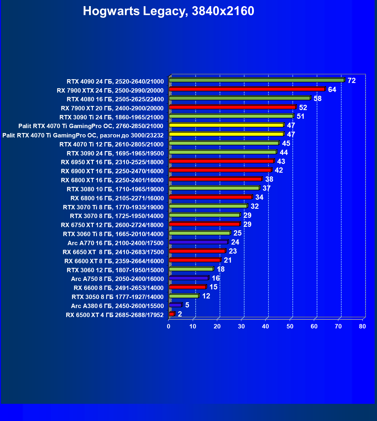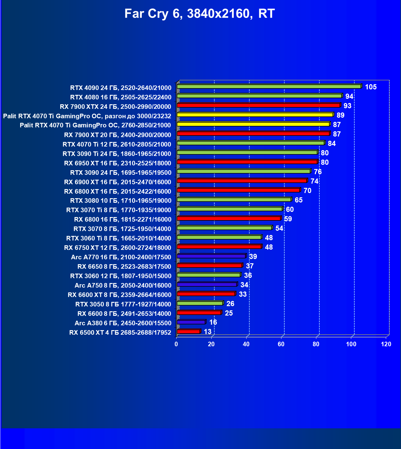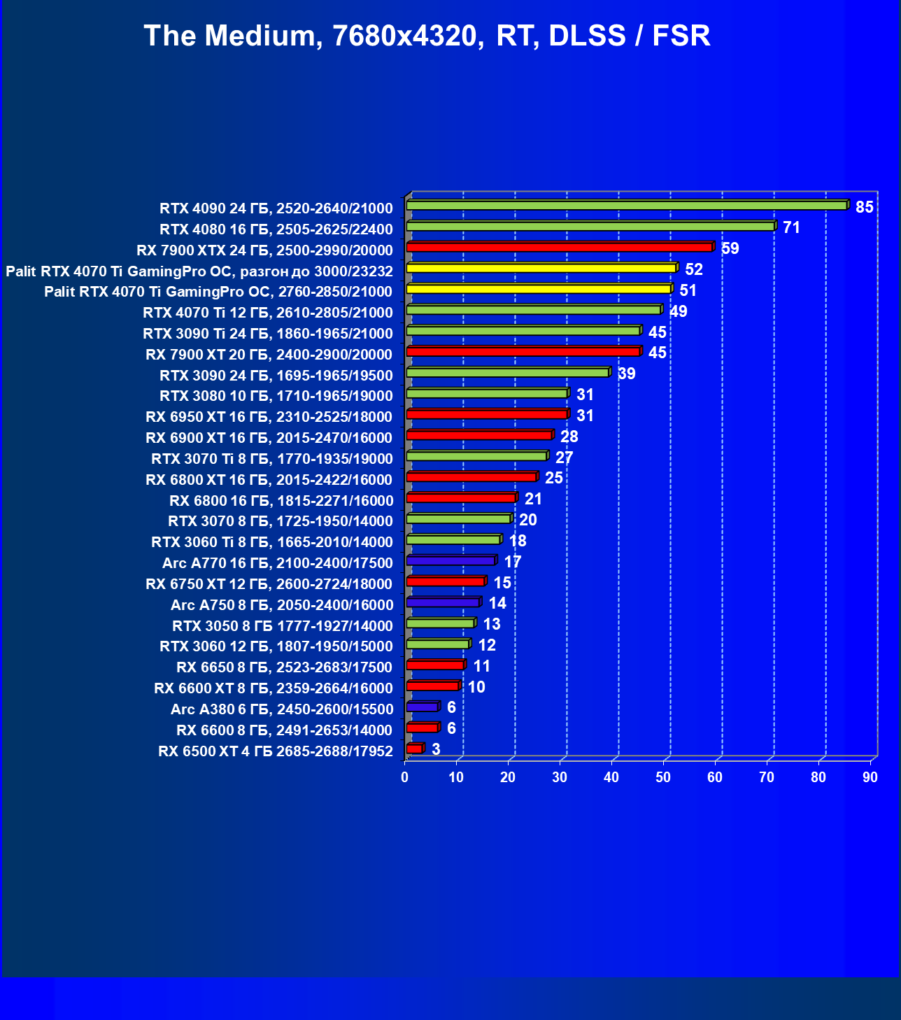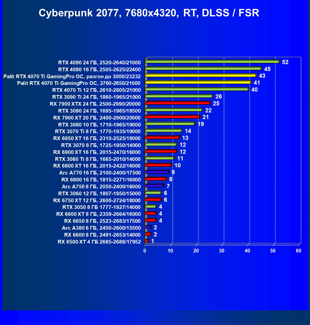 | 05 | Palit RTX 4070 Ti GamingPro OC, разгон до 3000/23232 | 999 | 130 | 77 000 |
