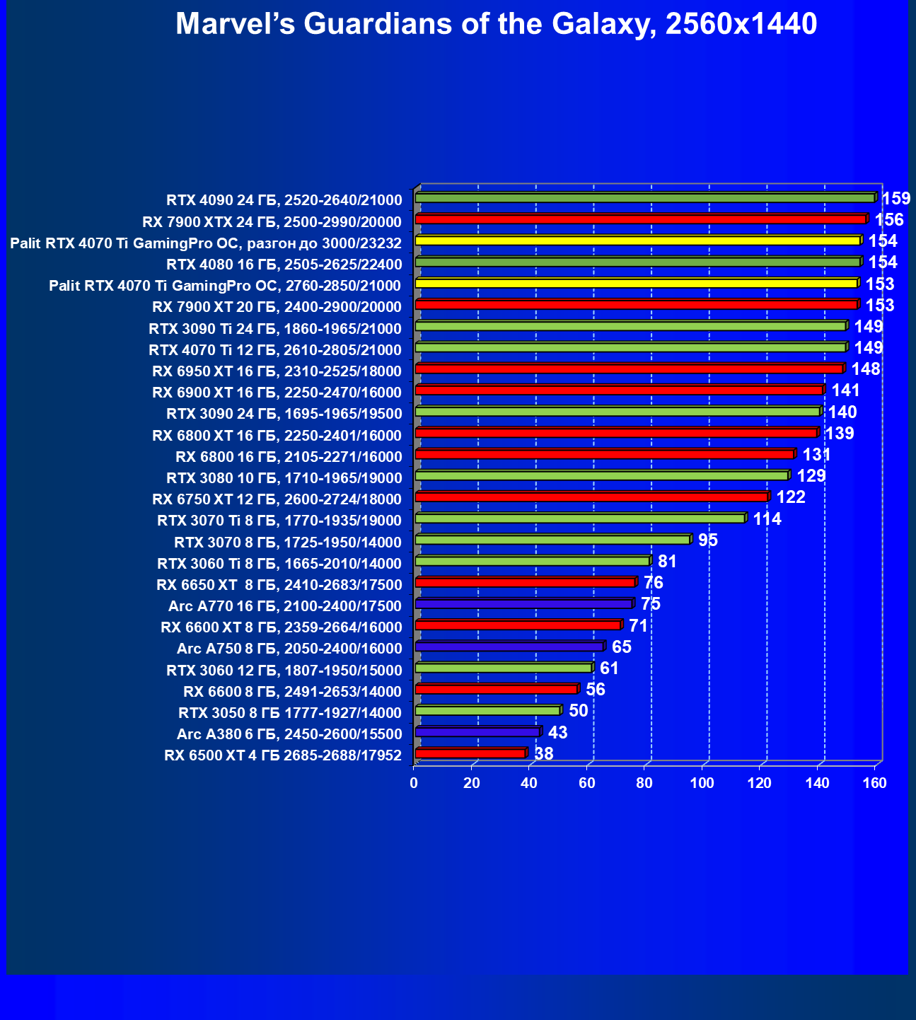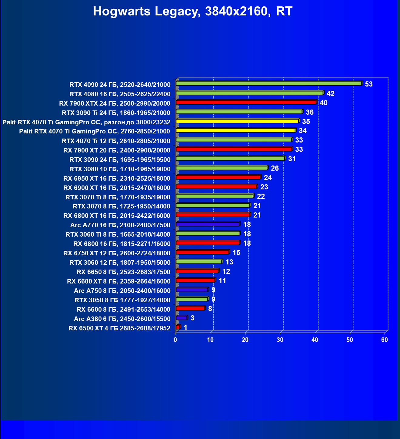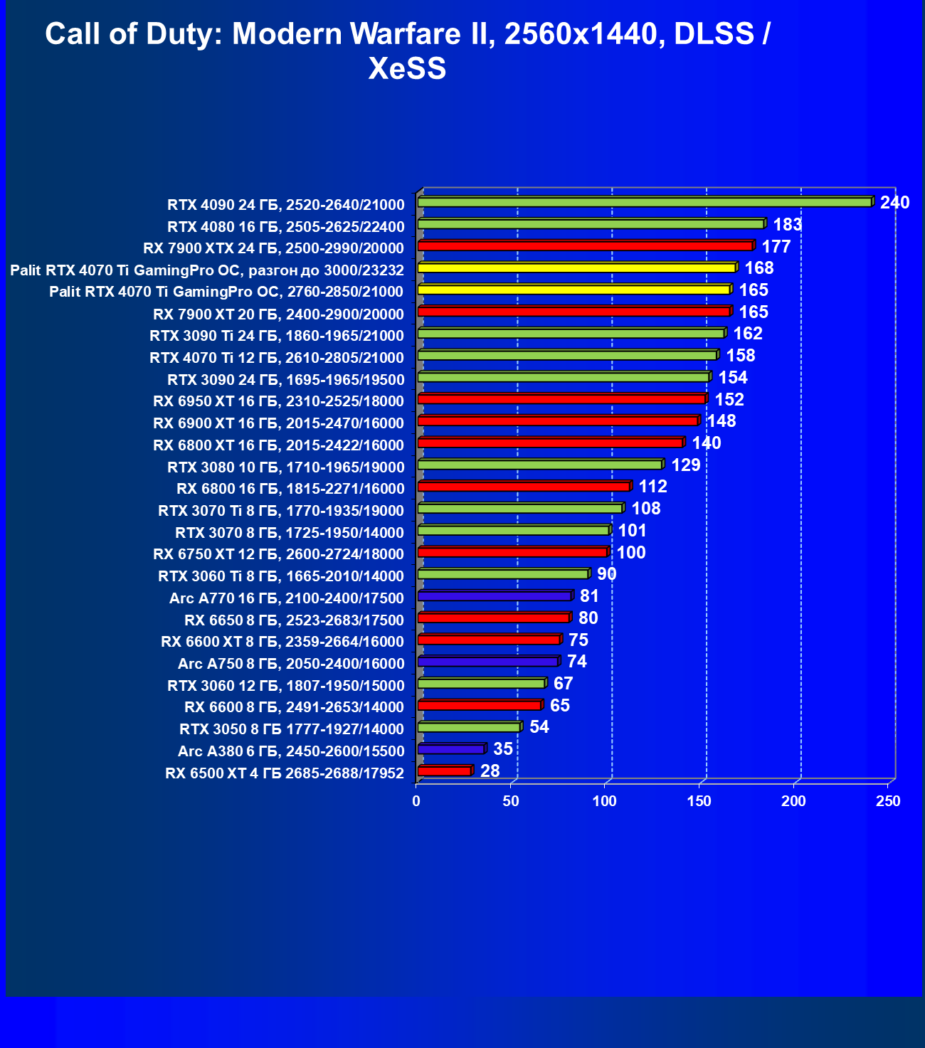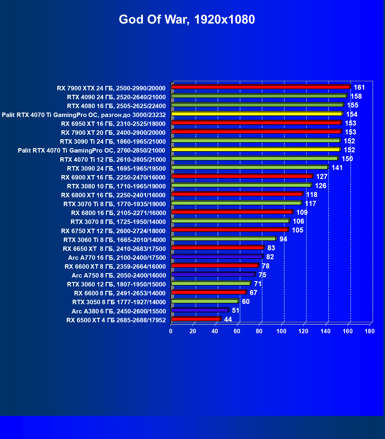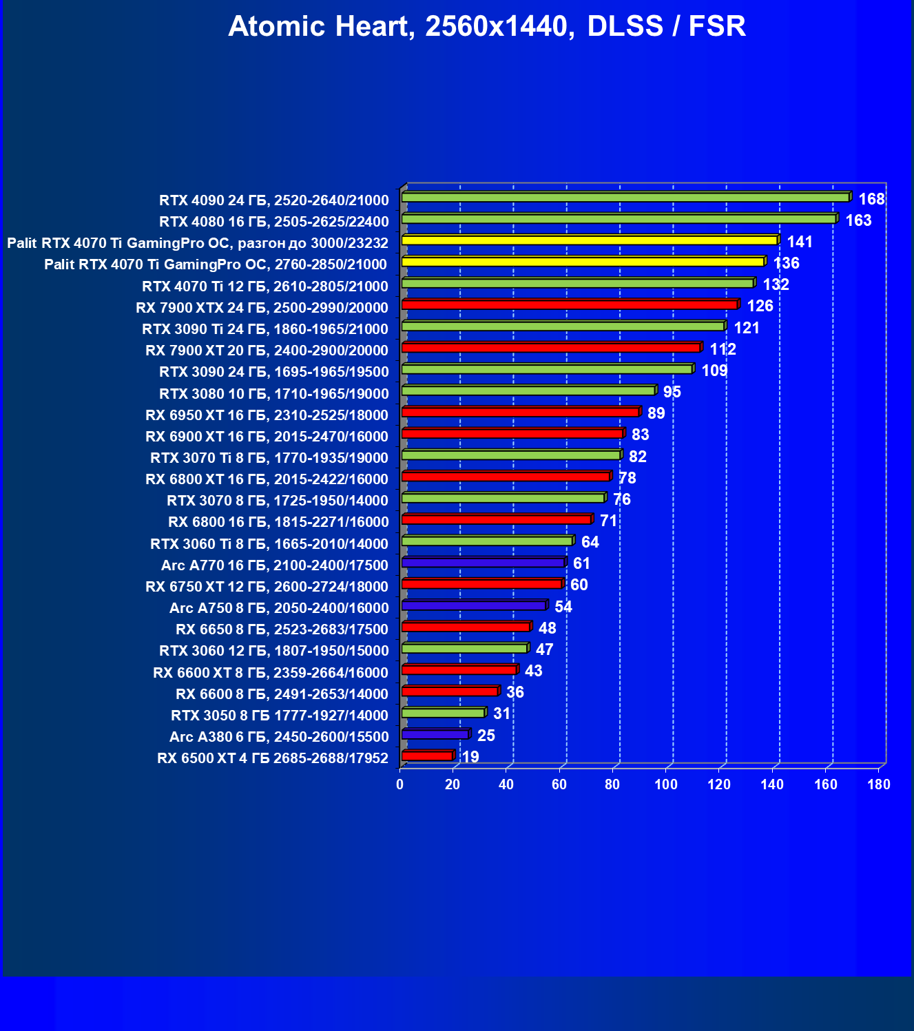 | 03 | Palit RTX 4070 Ti GamingPro OC, разгон до 3000/23232 | 1686 | 219 | 77 000 |