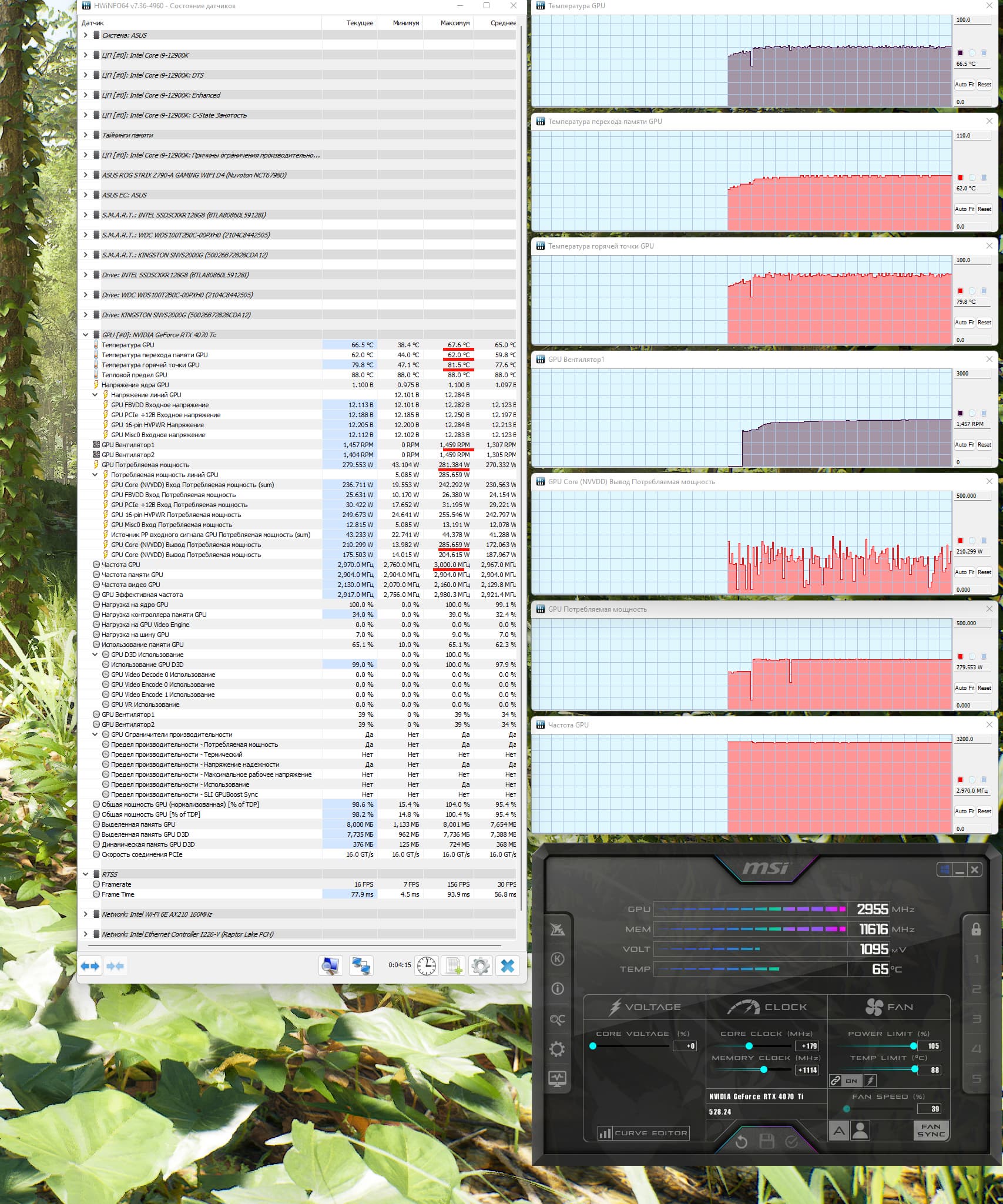 | 02 | Palit RTX 4070 Ti GamingPro OC, 2760—2850/21000 | 215 | 1655 | 77 000 |