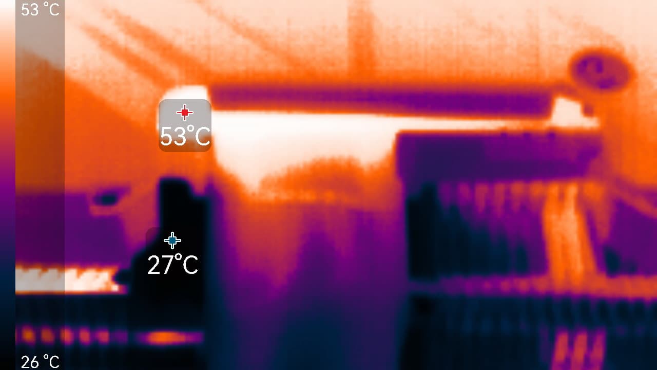 В режиме максимальной нагрузки в 3D температура достигала 66/80/62 °C (ядро/hot spot/память). Вентиляторы при этом раскручивались до 1434 оборотов в минуту, шум вырастал до 28,8 дБА: это всё еще тихо.