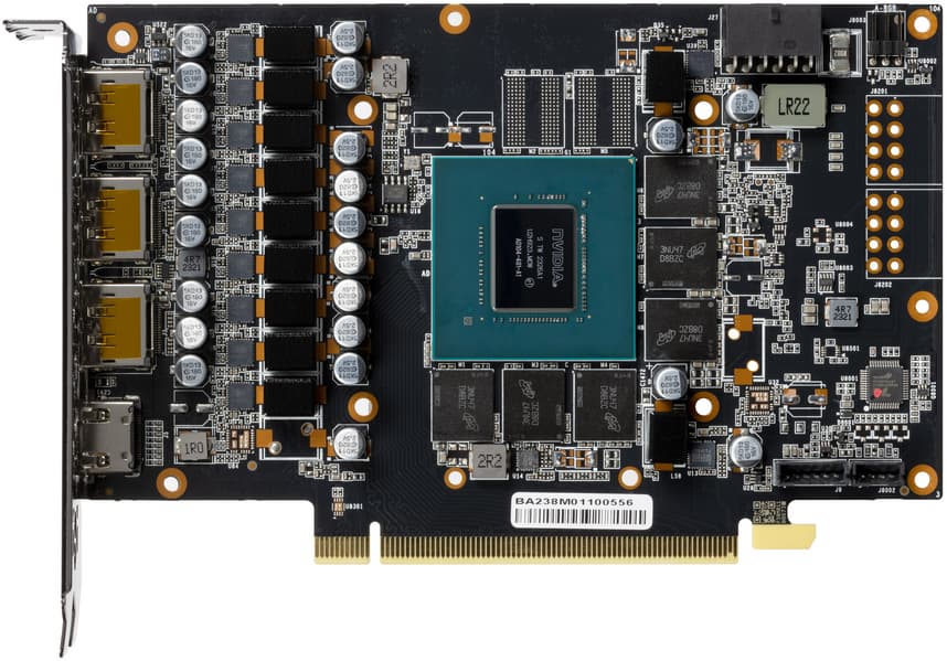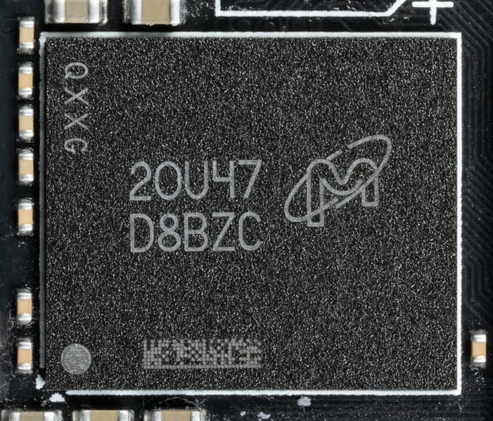 Карта имеет 12 ГБ памяти GDDR6X SDRAM, размещенной в 6 микросхемах по 16 Гбит на лицевой стороне PCB. Микросхемы памяти Micron (GDDR6X, MT61K512M32KPA-21/D8BZC) рассчитаны на номинальную частоту работы в 2625 (21000) МГц.