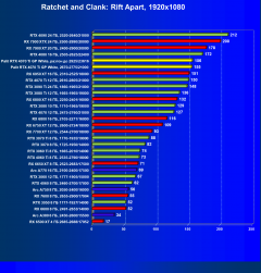 Здесь вряд ли нужны комментарии: даже в разрешении 4K производительность во многих играх ограничивается уже не видеокартой, а другими компонентами системы, чаще всего упирается в возможности центрального процессора. Что касается карты Palit, то она уверенно входит в пятерку лидеров, ей по плечу игры с максимальным качеством картинки в любом разрешении до 4K включительно (но без RT и/или DLSS/FSR/XeSS).