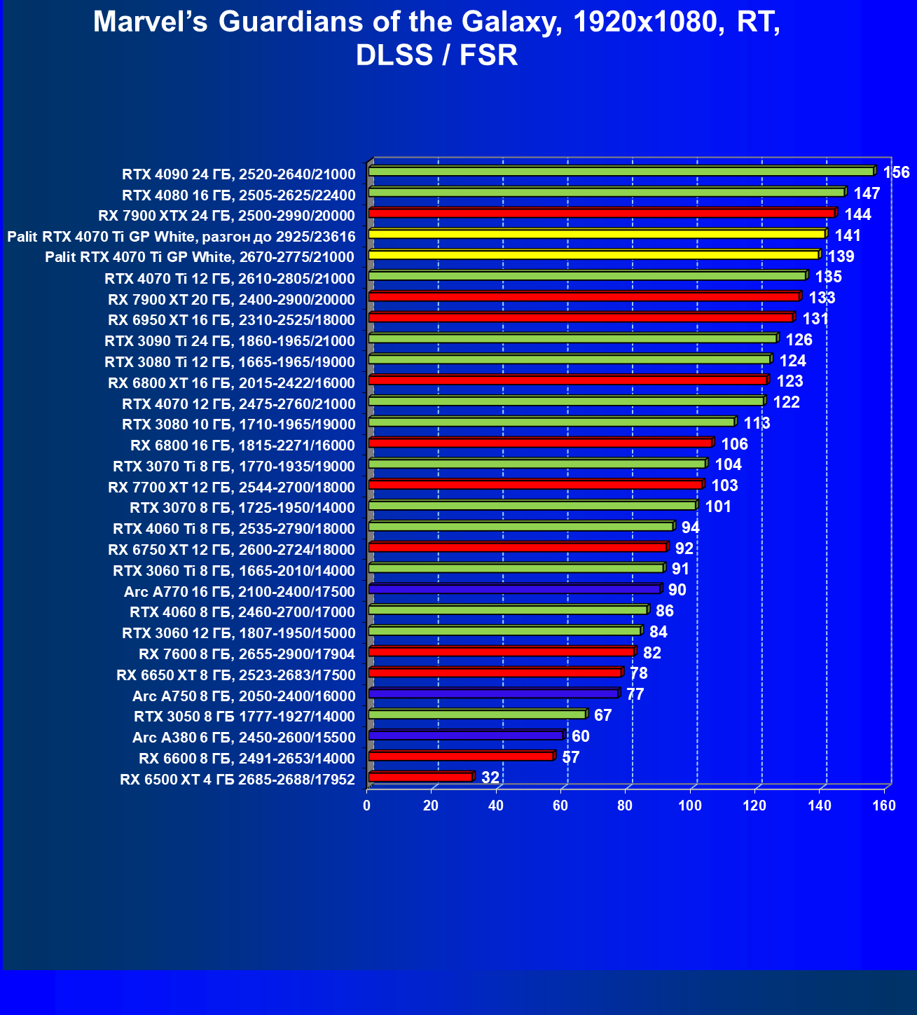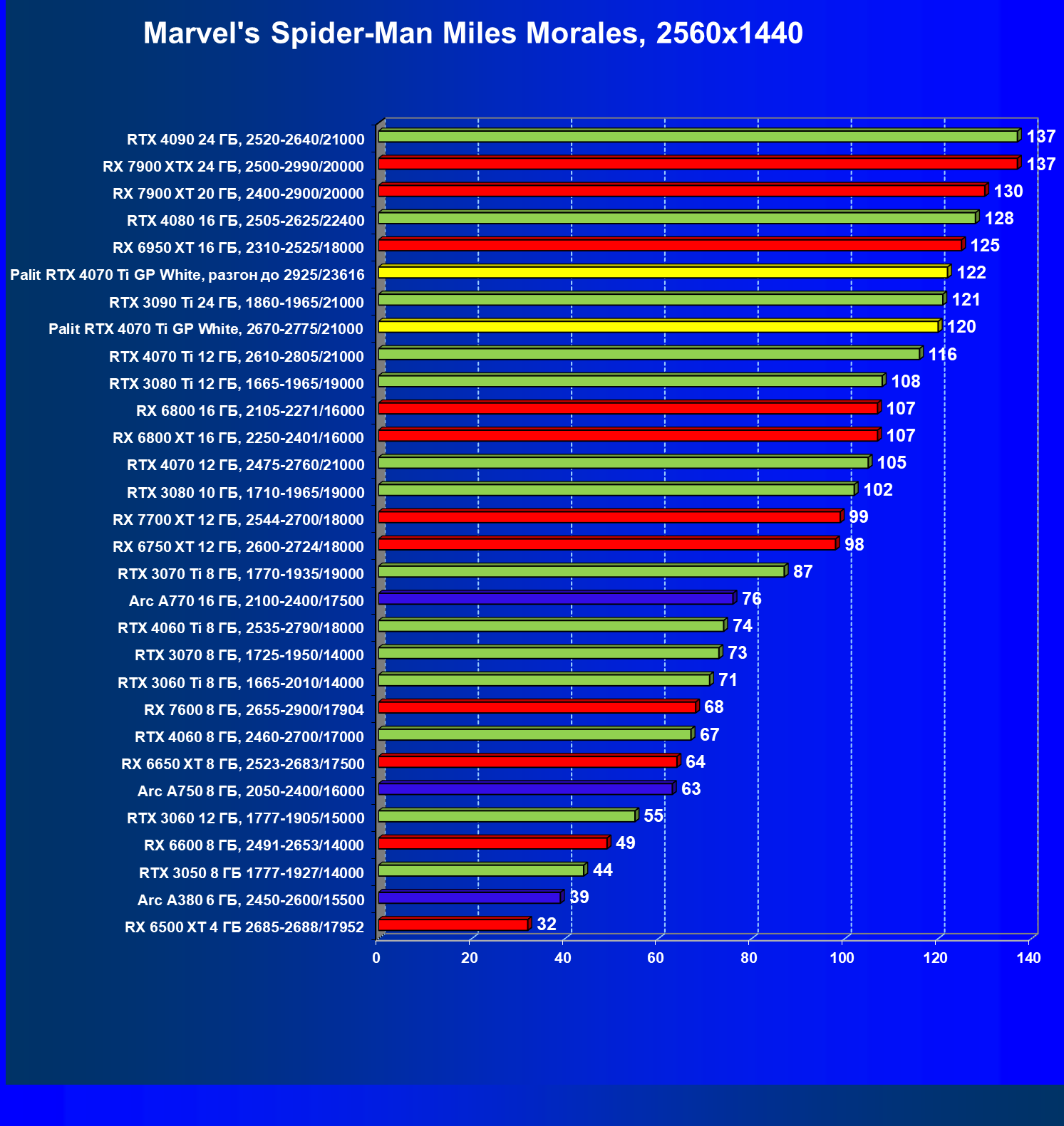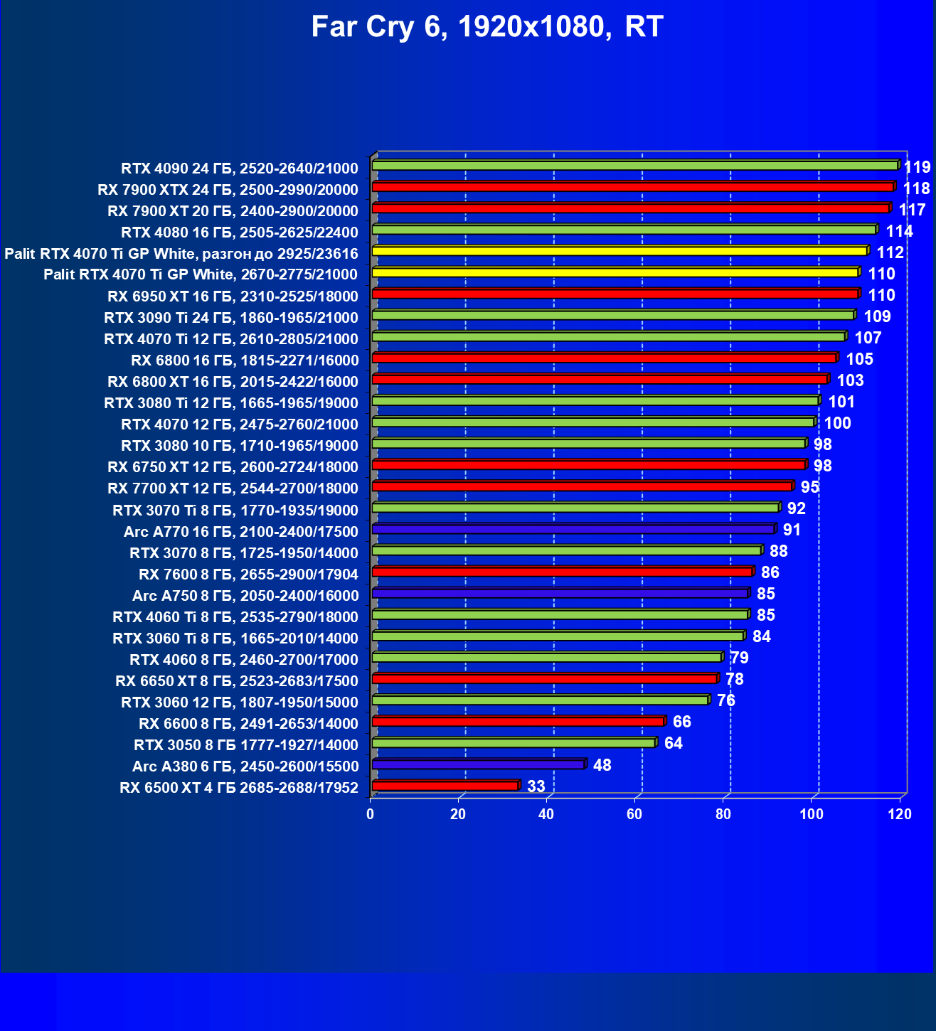 | 05 | Palit RTX 4070 Ti GP White, разгон до 2925/23616 | 1098 | 122 | 90 000 |