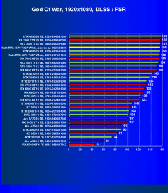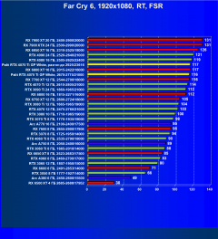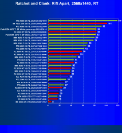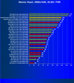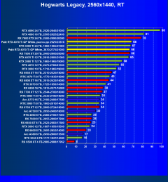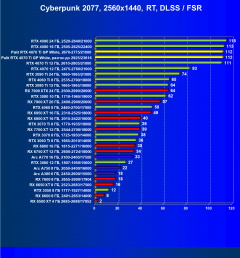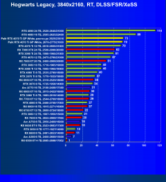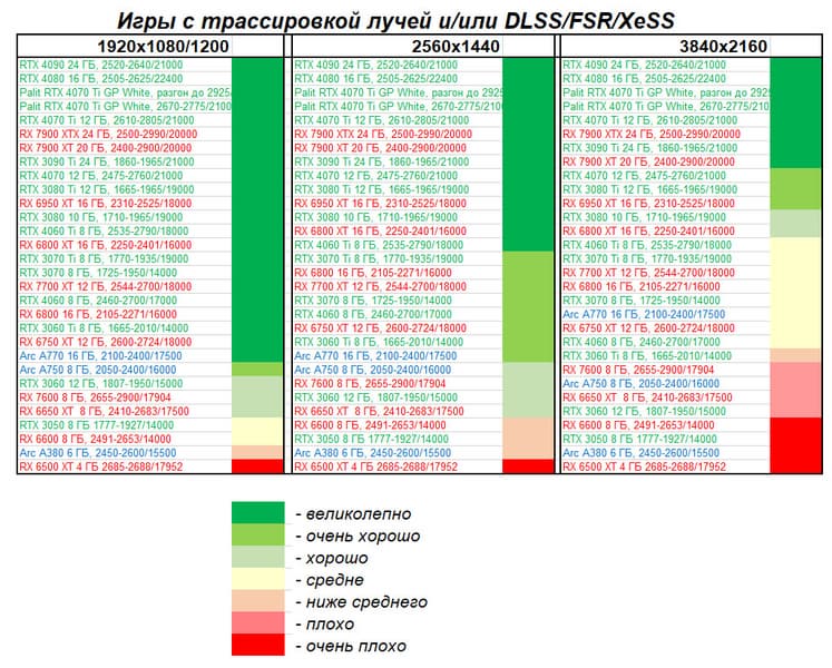 - Результаты тестов со включенной аппаратной трассировкой лучей и/или DLSS/FSR/XeSS в разрешениях 1920×1080, 2560×1440 и 3840×2160