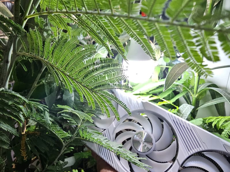 «Изюминкой» этой карты является не только стильная подсветка (которая может синхронизироваться с материнской платой), но и возможность заменить пластиковый кожух кулера. С помощью концепции «Автор» и предлагаемых компанией Palit 3D-моделей вариантов дизайна можно создать свой уникальный кожух, нужен только 3D-принтер и краски. Также стоит отметить приятный цвет карты, отменно сочетающийся с подсветкой на верхнем торце.