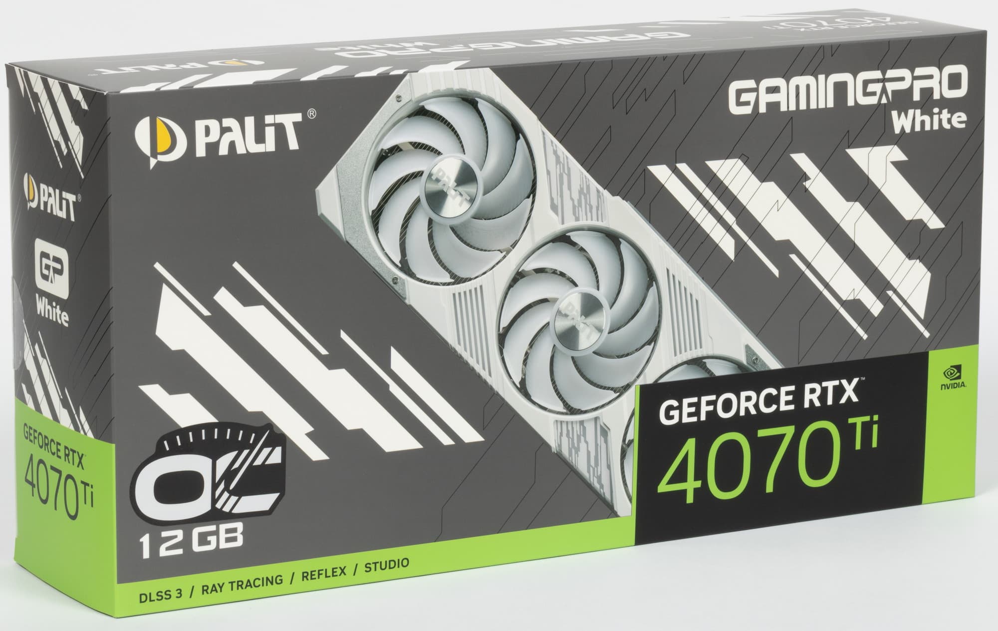 Palit GeForce RTX 4070 Ti GamingPro White OC (12 ГБ) — красивая видеокарта из категории топовых (хотя формально это третий по производительности GPU в линейке GeForce RTX 40). GeForce RTX 4070 Ti примерно соответствует по скорости флагману предыдущего поколения GeForce RTX 3090 Ti, но дополнительно имеет потенциал в виде DLSS 3, а также уверенно обходит соперника в лице Radeon RX 7900 XT в играх с трассировкой лучей и с технологиями «умного» антиалиасинга.