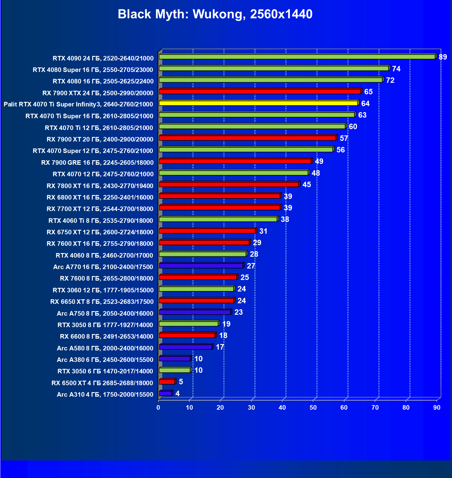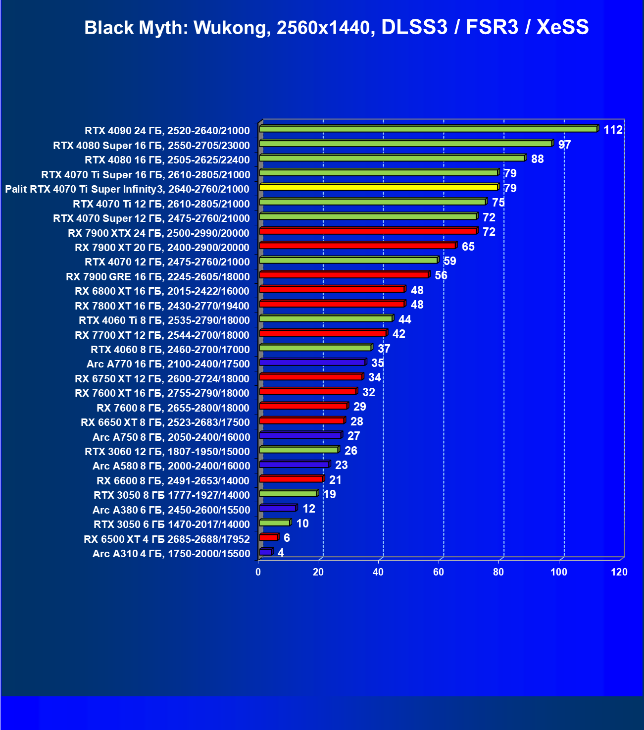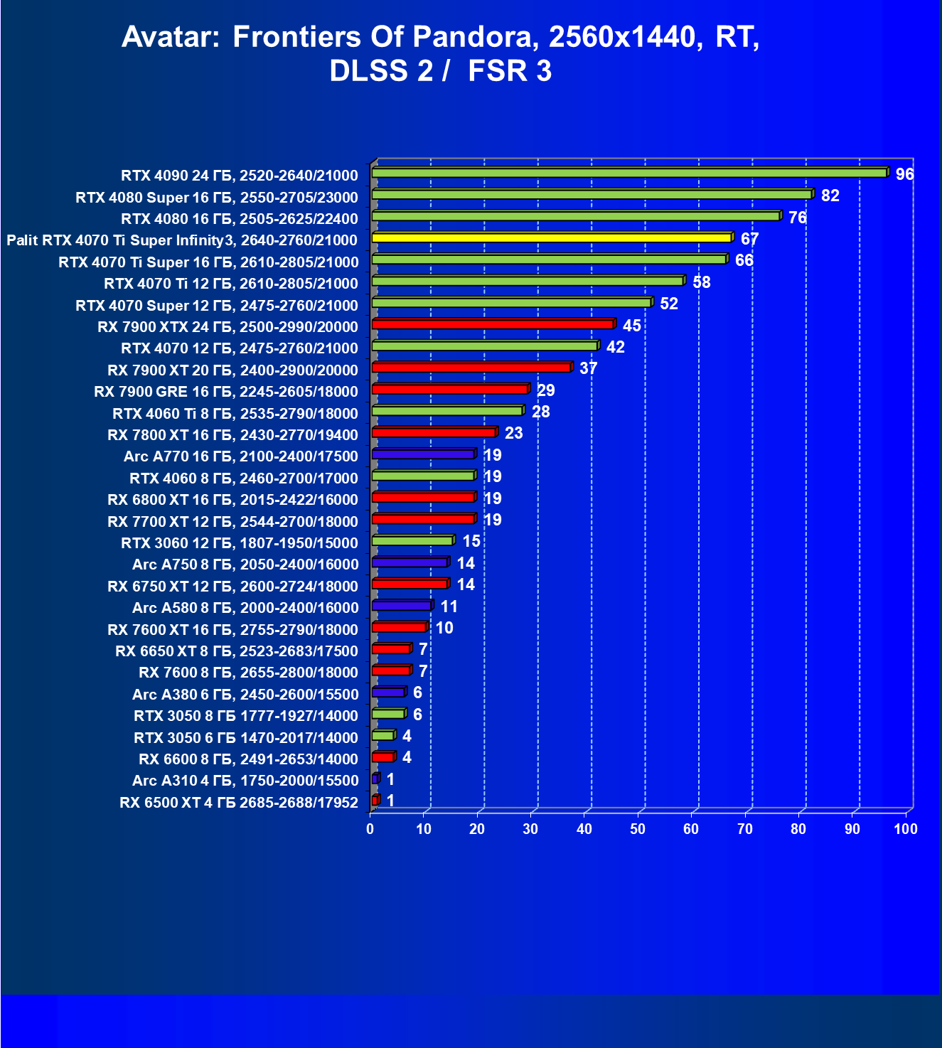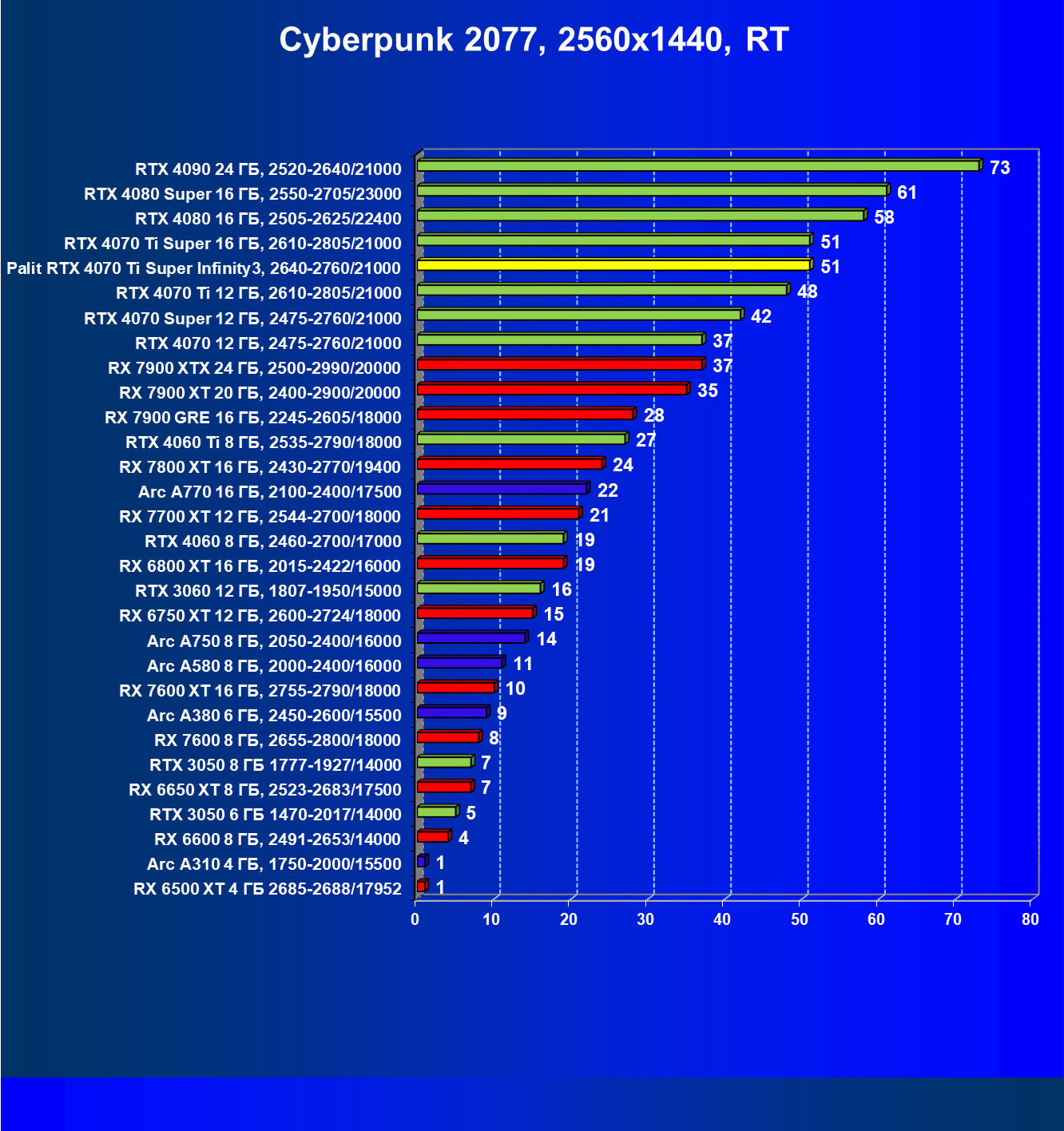 | 04 | Palit RTX 4070 Ti Super Infinity3, 2640—2760/21000 | 6011 | 640 | 94 000 |