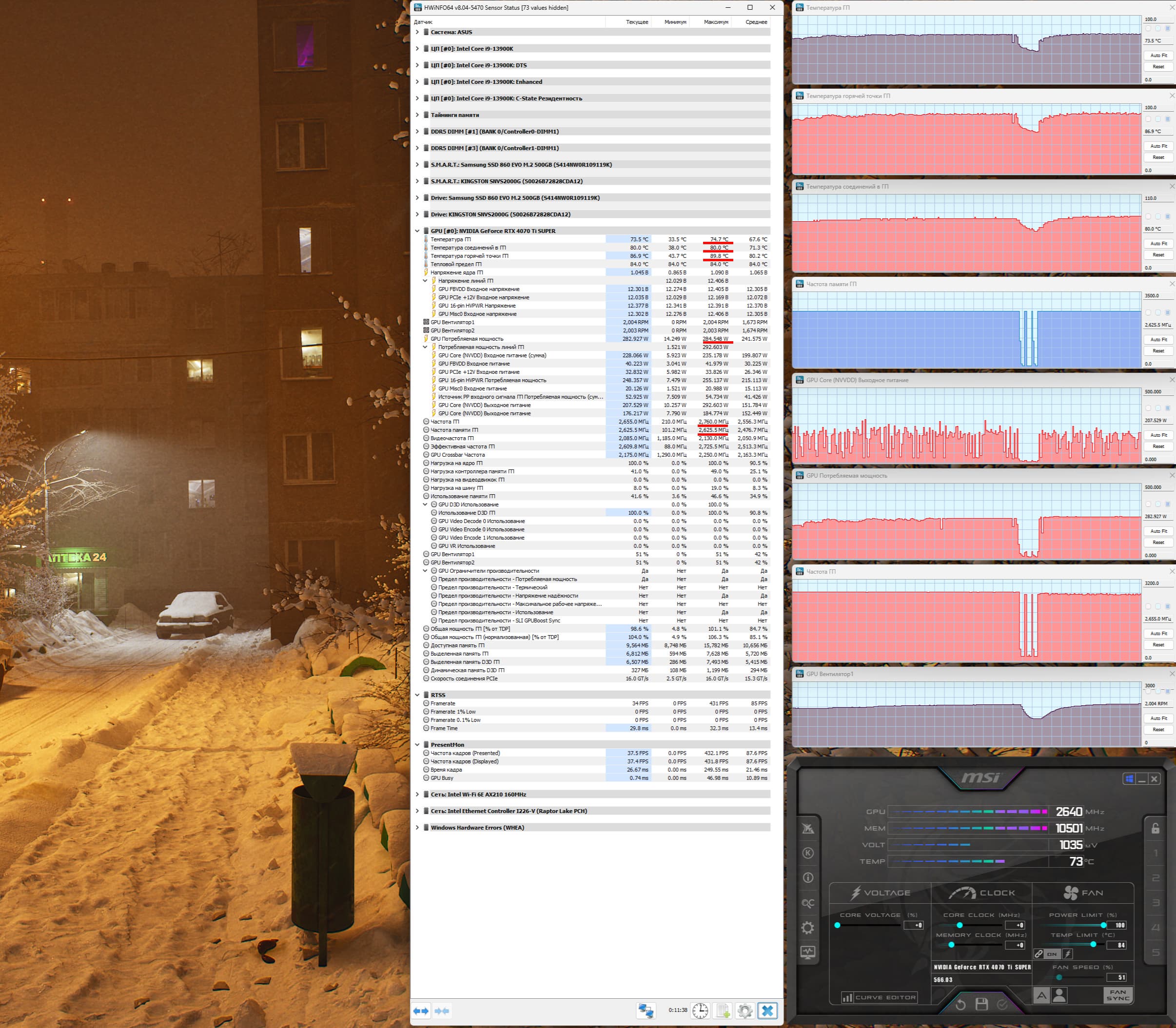 | 07 | RTX 4070 Ti Super 16 ГБ, 2610—2805/21000 | 3511 | 382 | 92 000 |