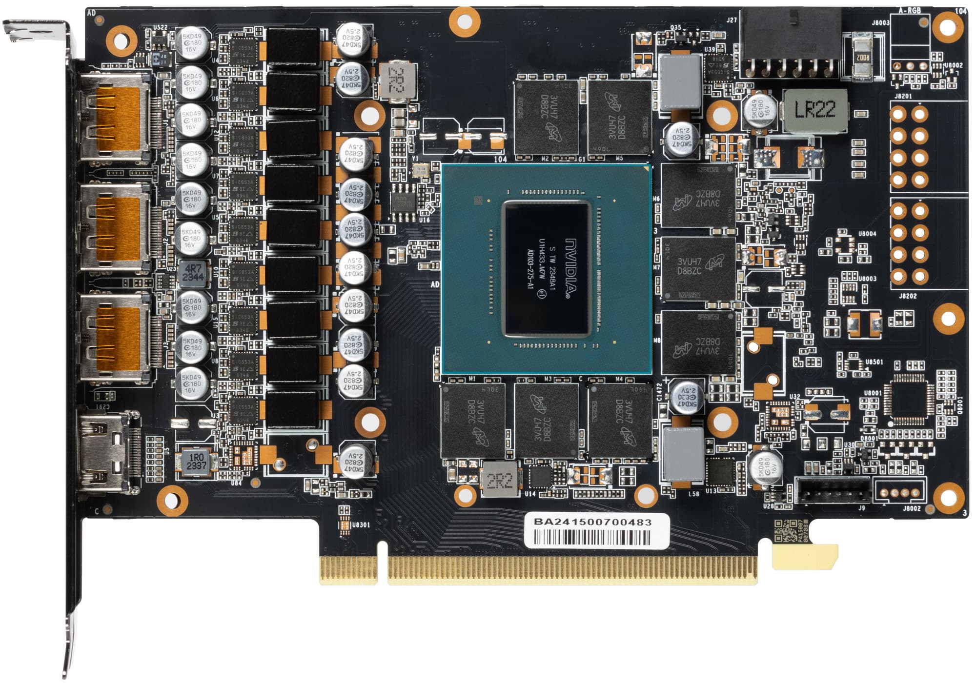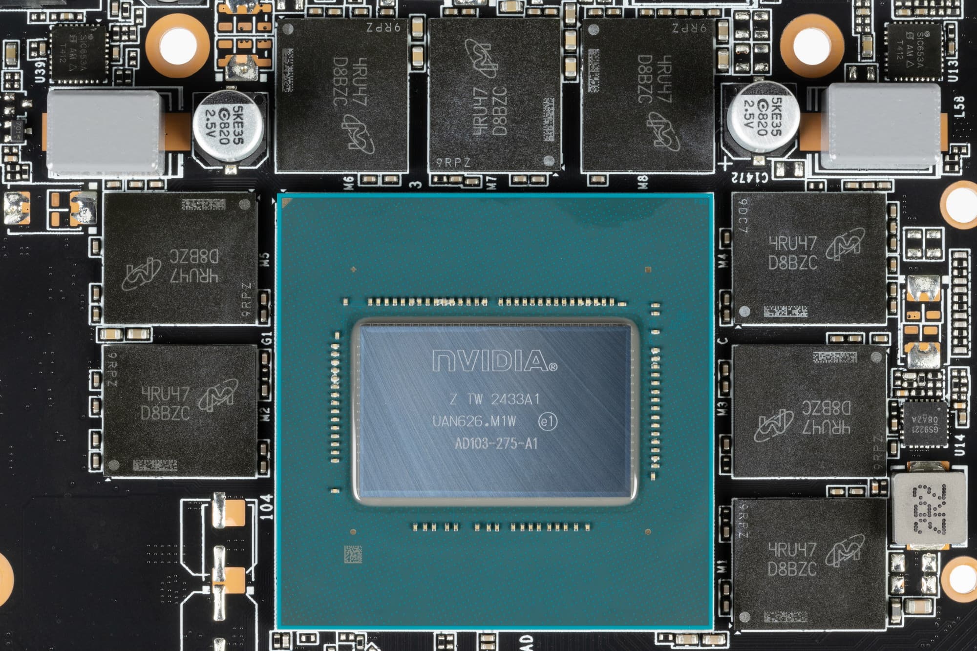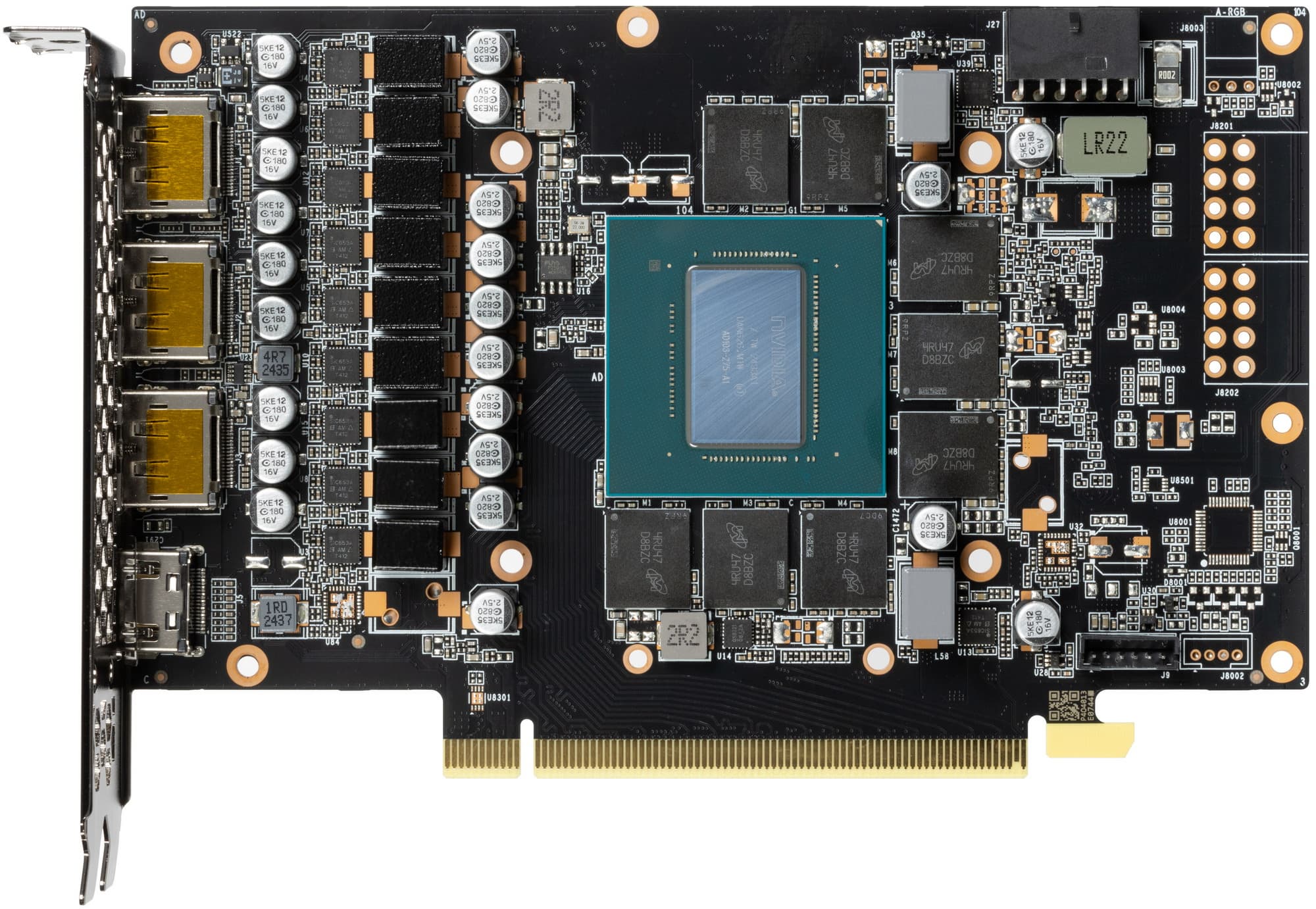 Карта имеет 16 ГБ памяти GDDR6X SDRAM, размещенной в 8 микросхемах по 16 Гбит на лицевой стороне PCB. Микросхемы памяти Micron (MT61K512M32KPA-21/D8BZC) рассчитаны на номинальную частоту работы в 2625 (21000) МГц.