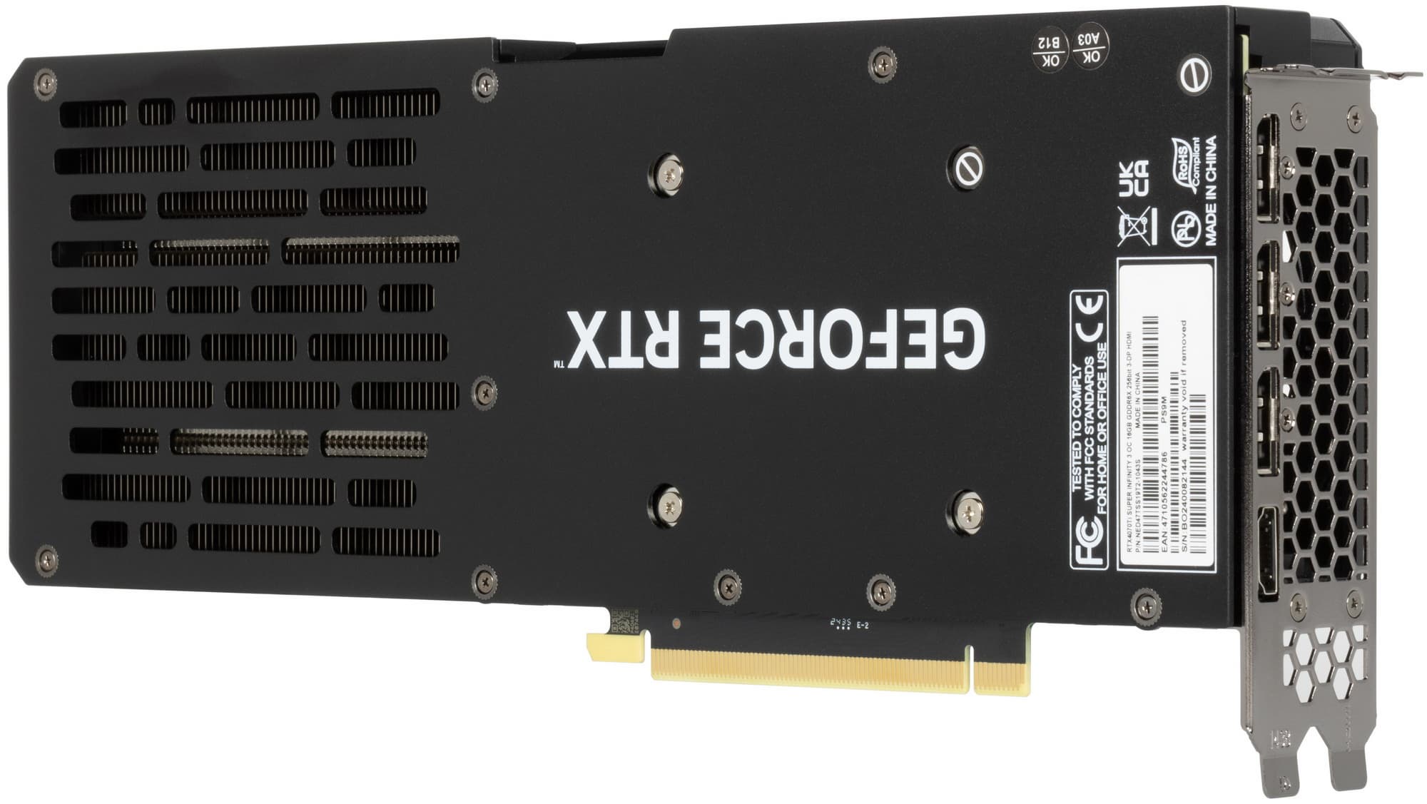 GeForce RTX 4070 Ti Super не обладает поддержкой мультиграфической конфигурации, то есть технологии SLI, и у карты нет специального разъема на верхнем торце.