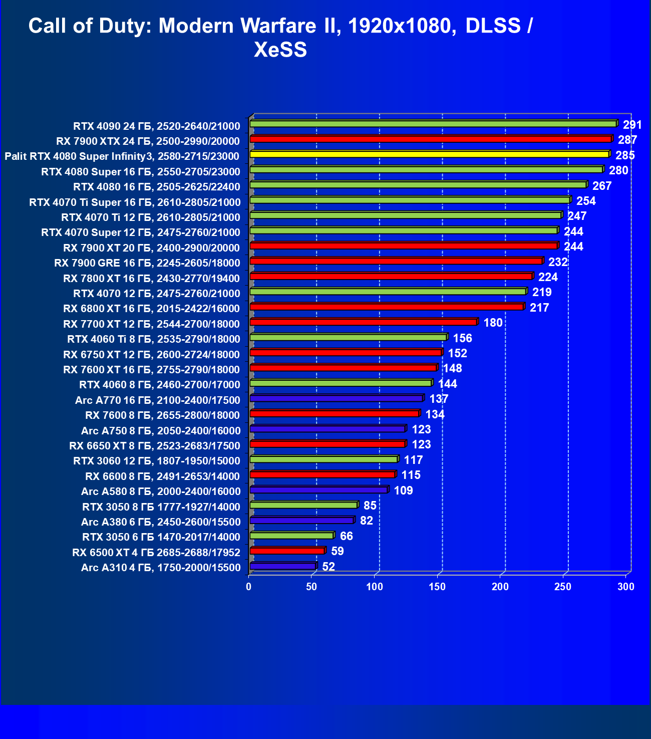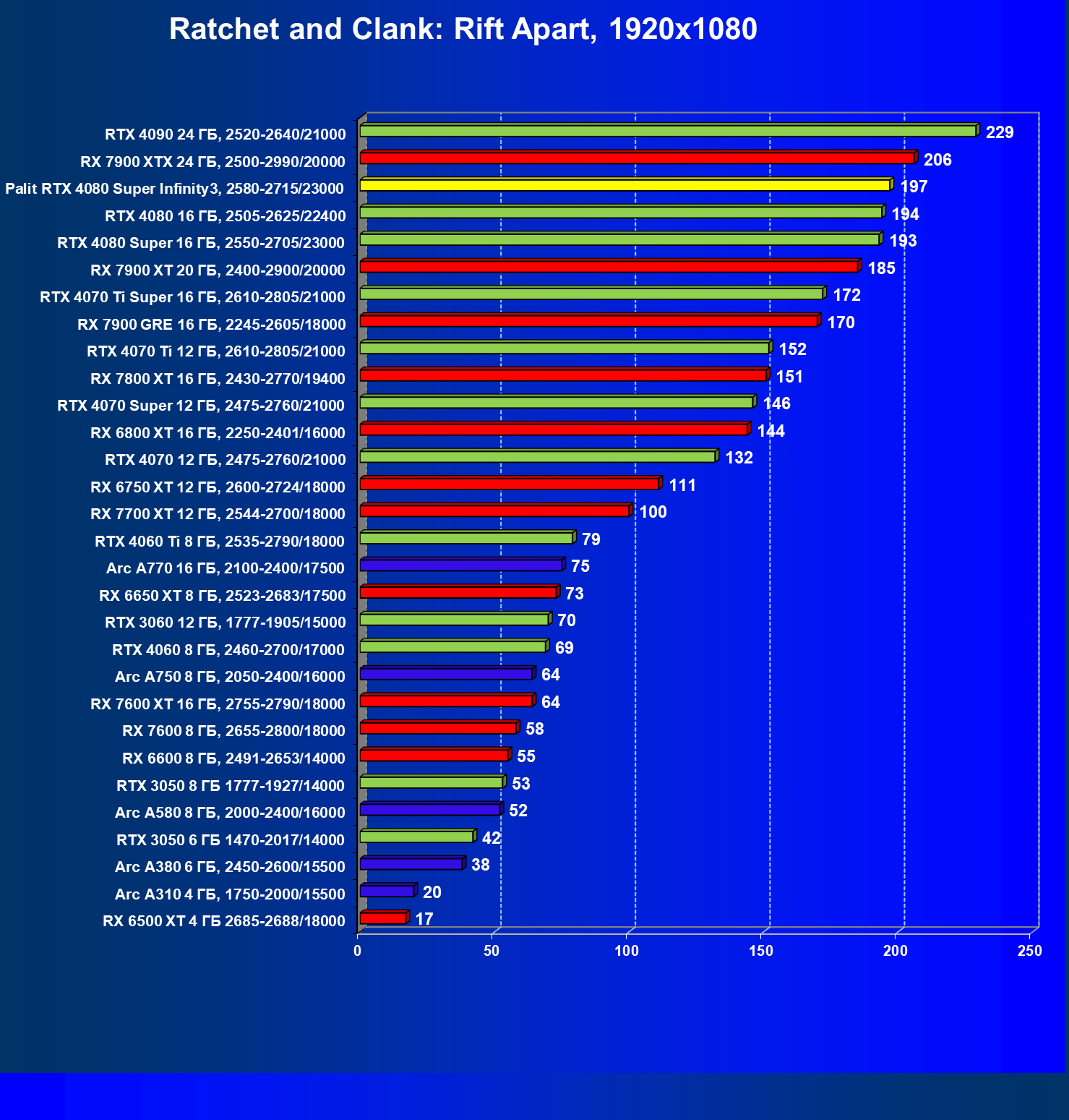 | 17 | Palit RTX 4080 Super Infinity3, 2580—2715/23000 | 372 | 4317 | 116 000 |