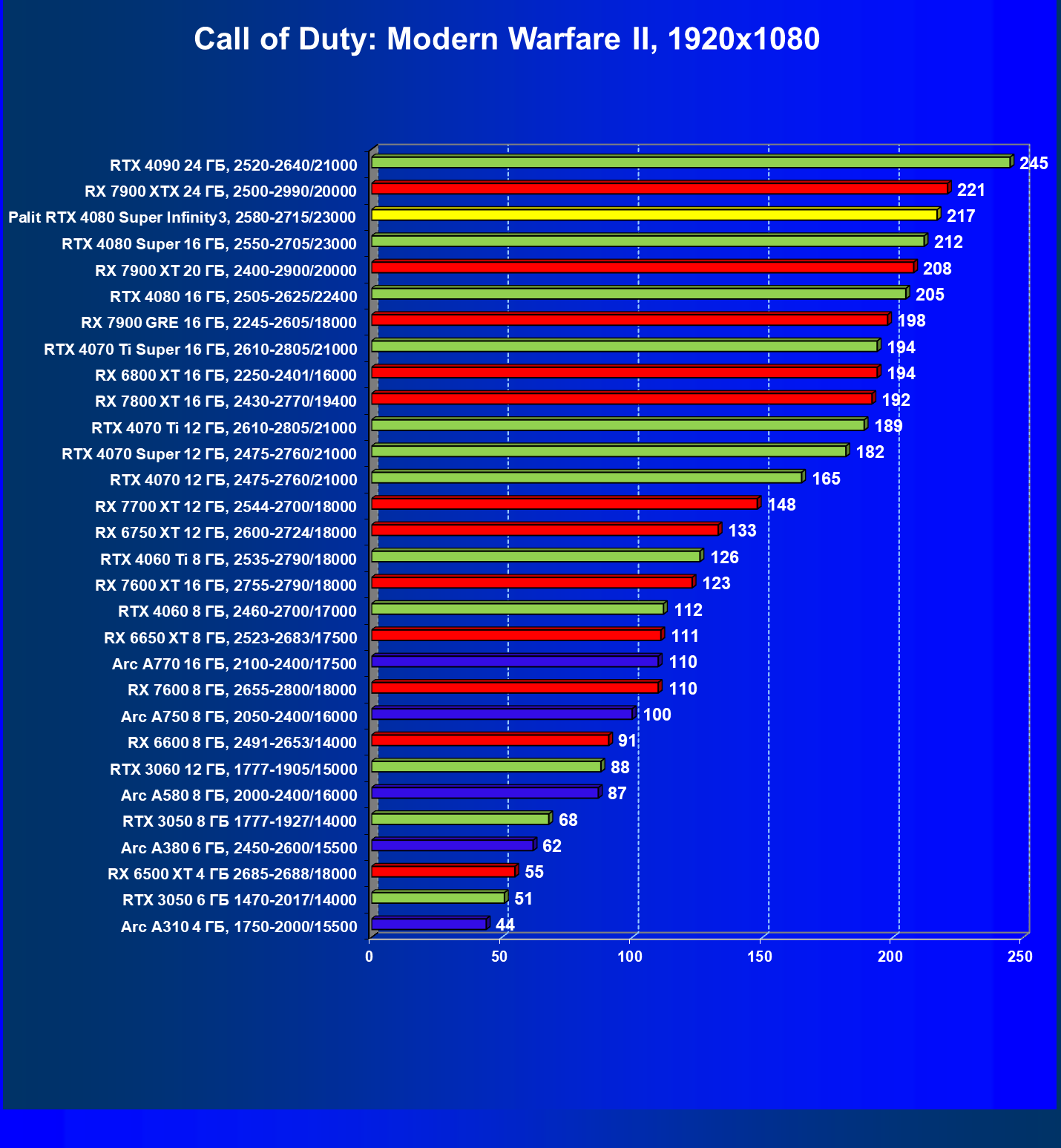 | 17 | RX 7900 XTX 24 ГБ, 2500—2990/20000 | 438 | 4988 | 114 000 |