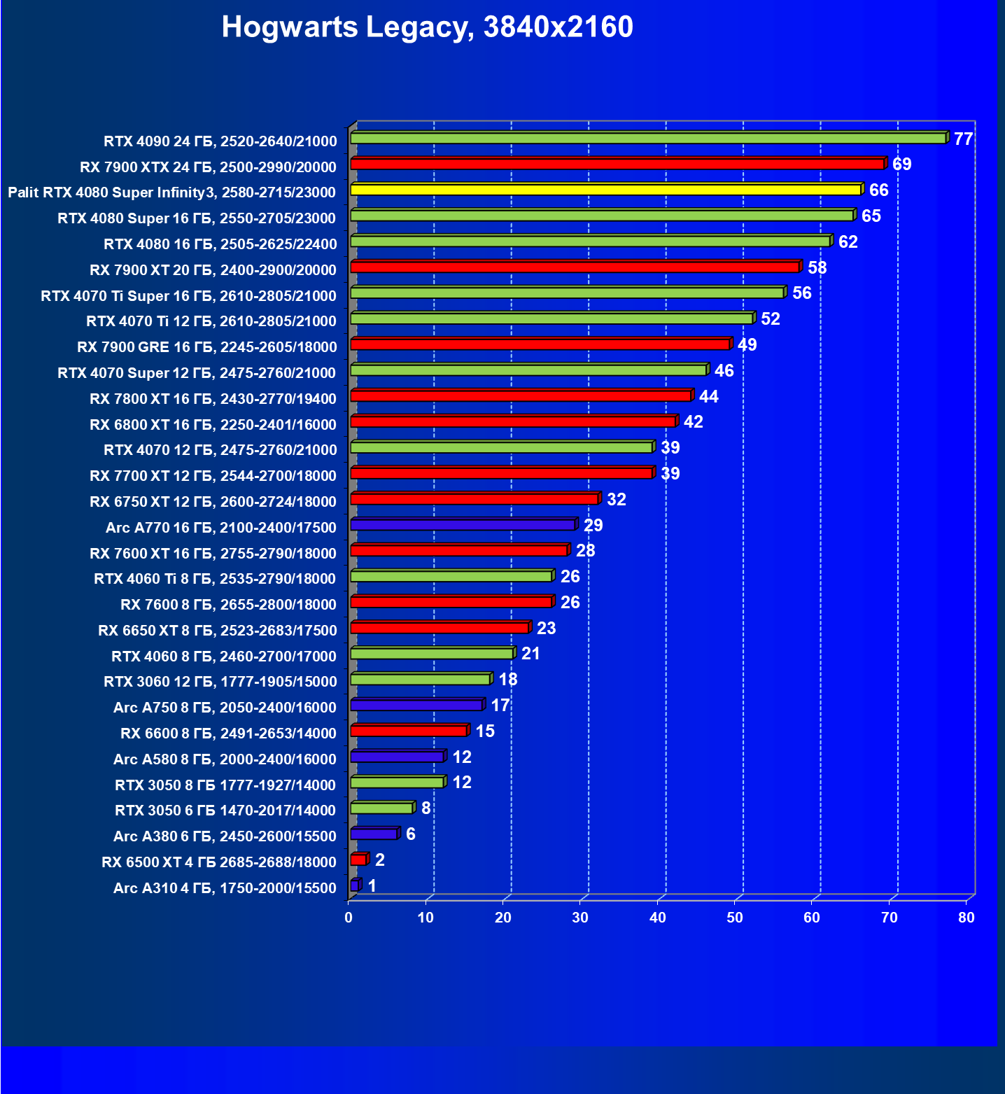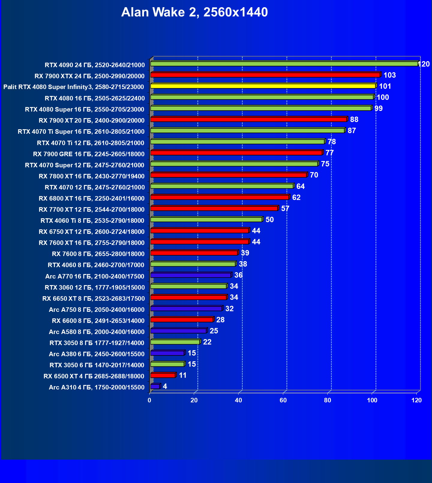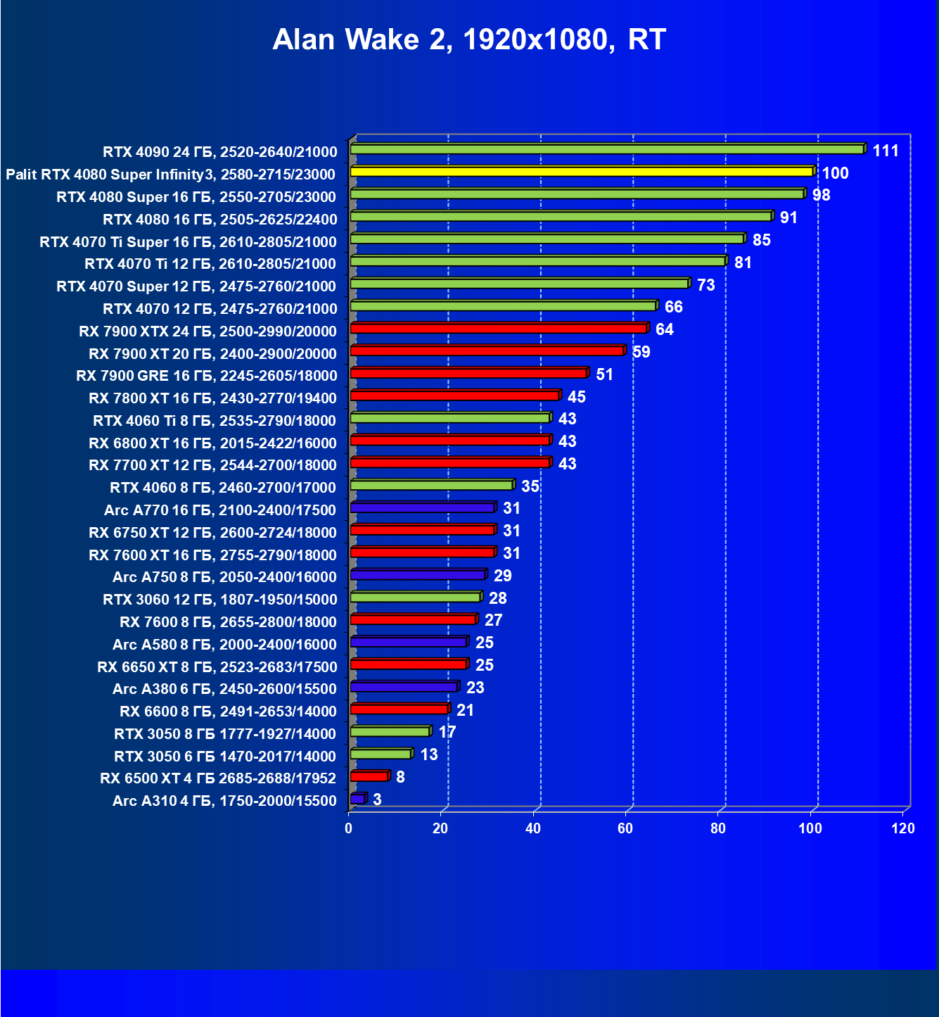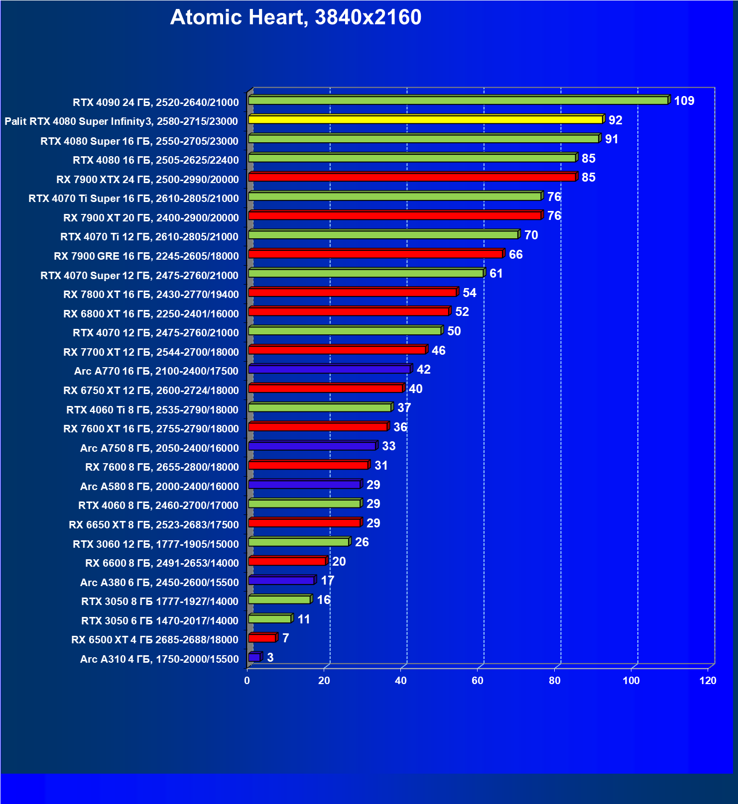 | 03 | Palit RTX 4080 Super Infinity3, 2580—2715/23000 | 628 | 7290 | 116 000 |