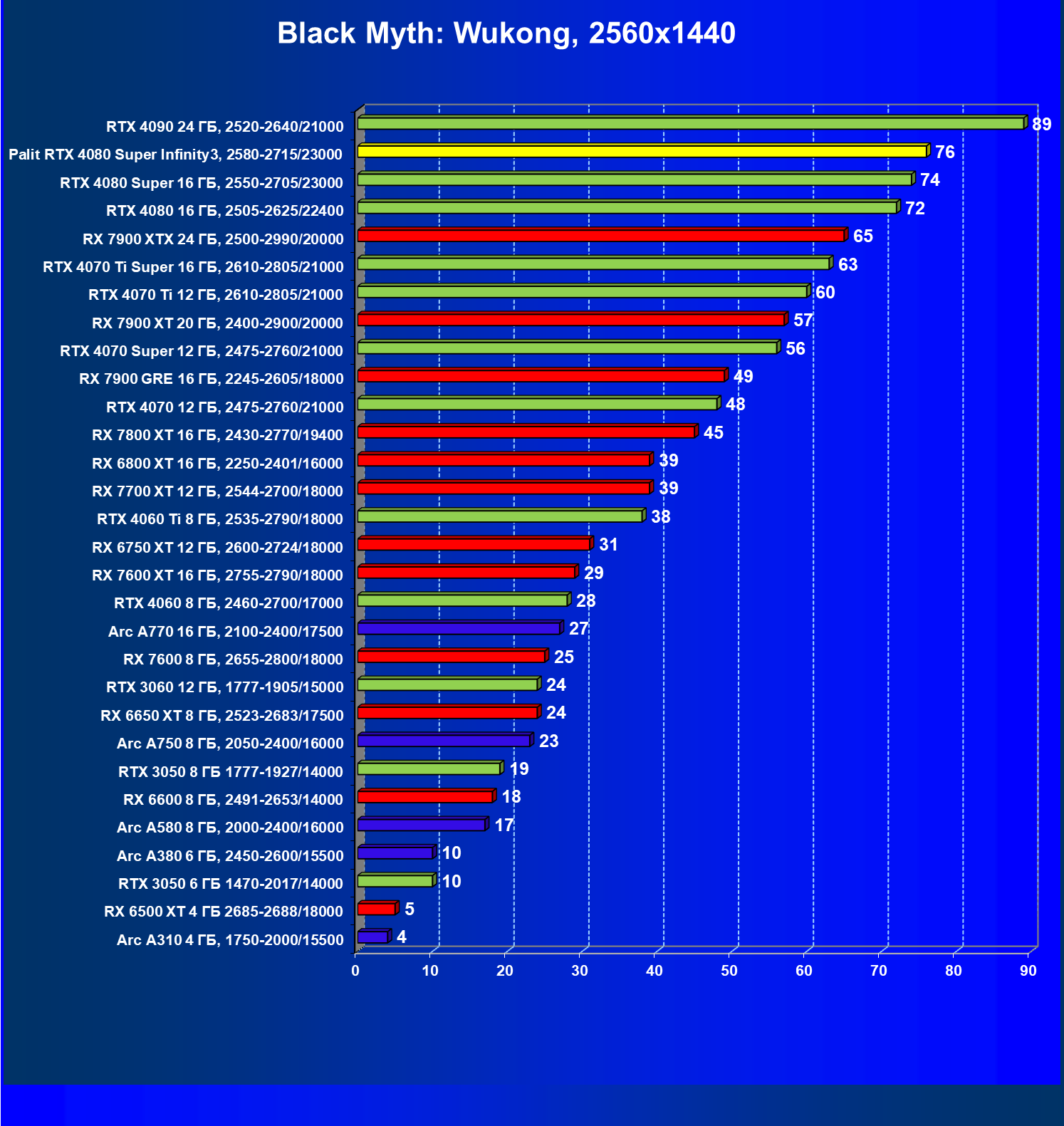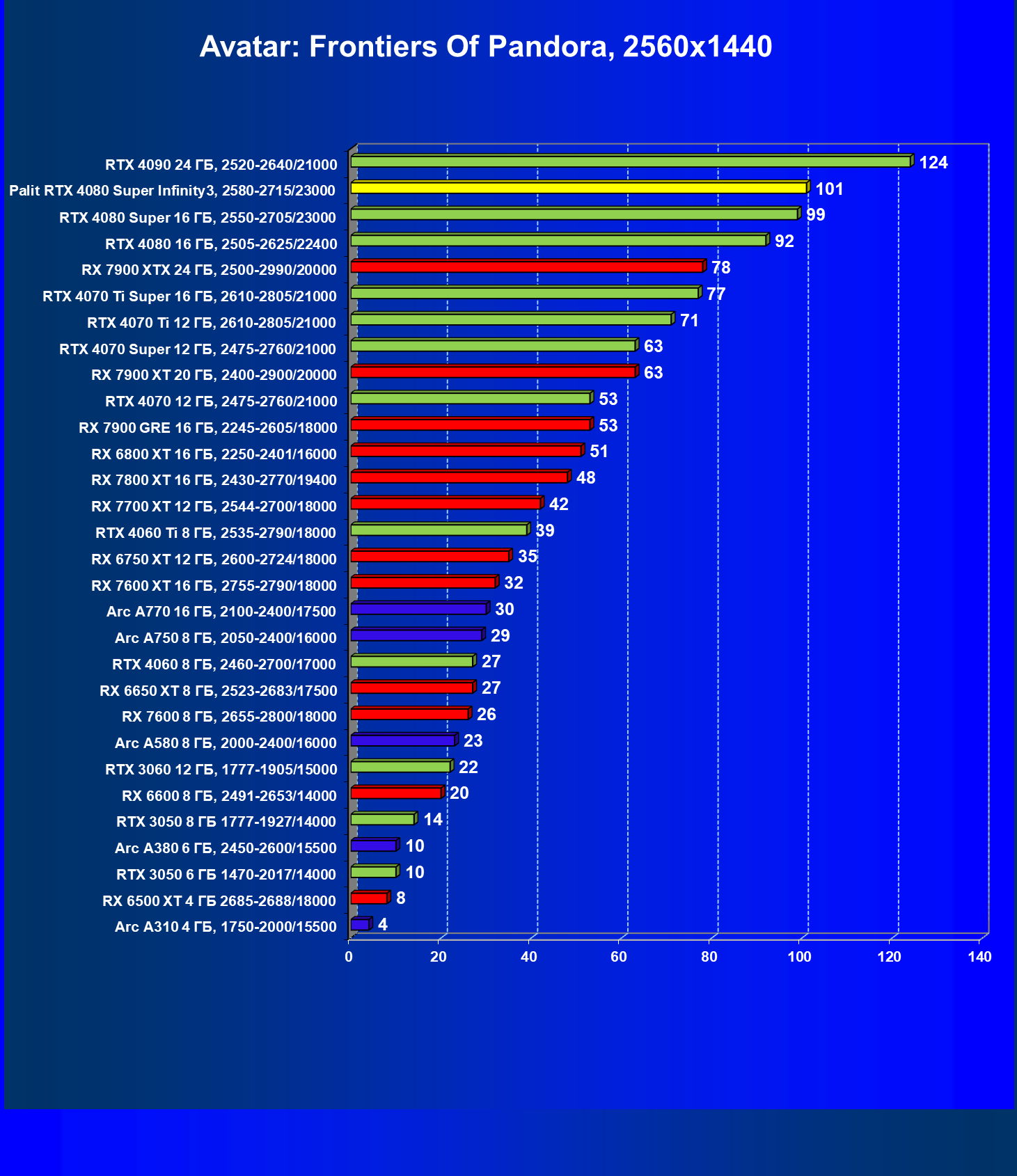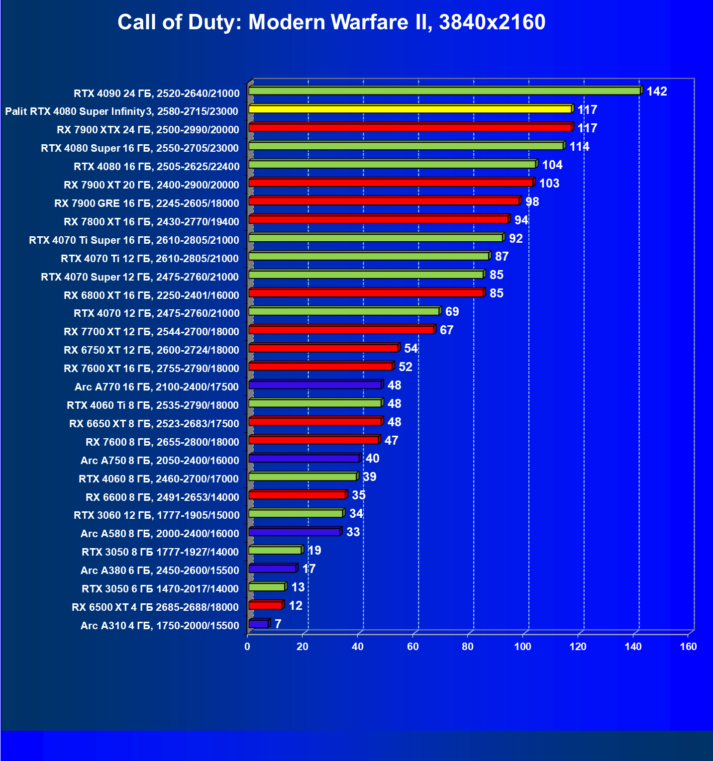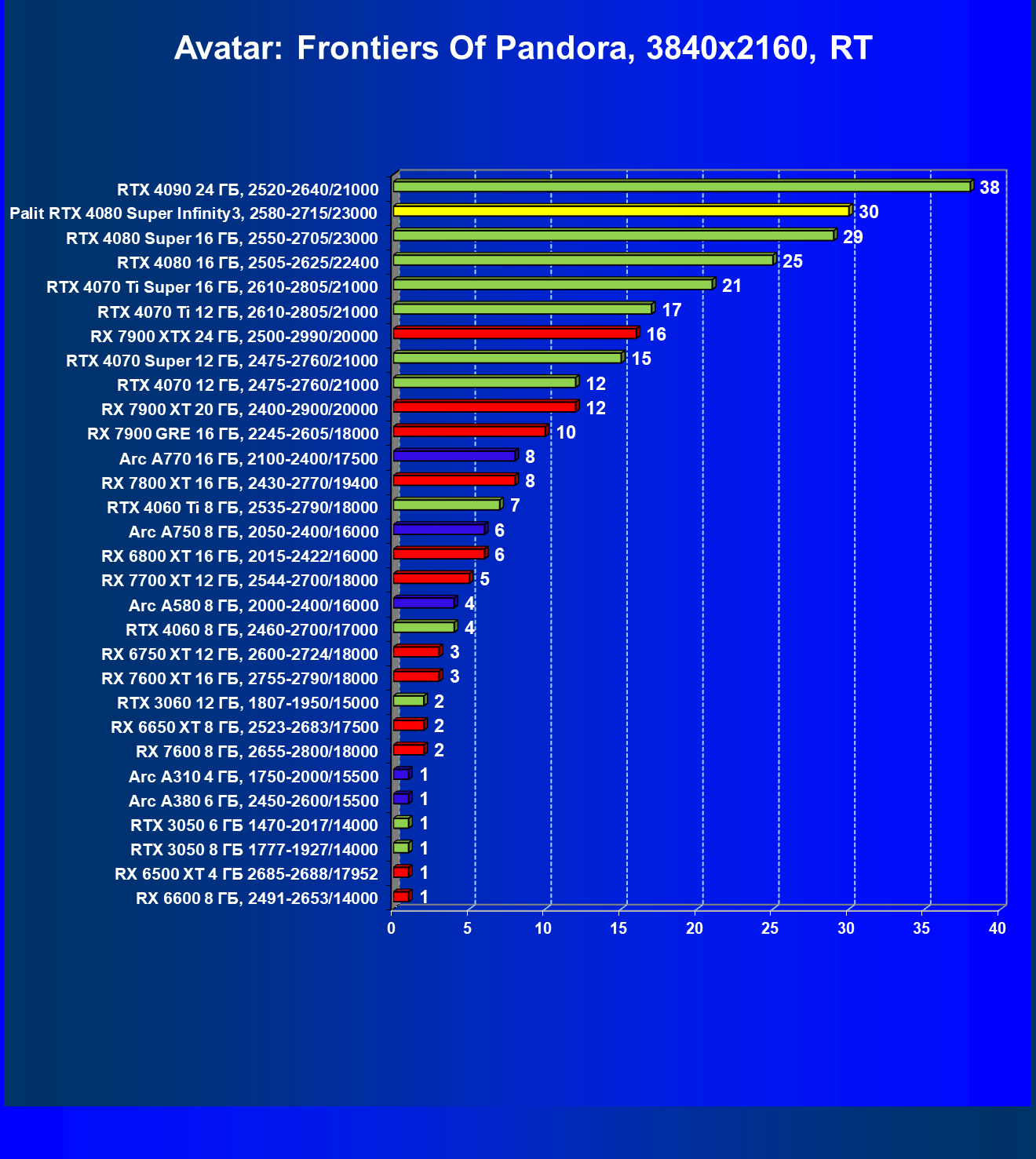 | 03 | Palit RTX 4080 Super Infinity3, 2580—2715/23000 | 628 | 7290 | 116 000 |