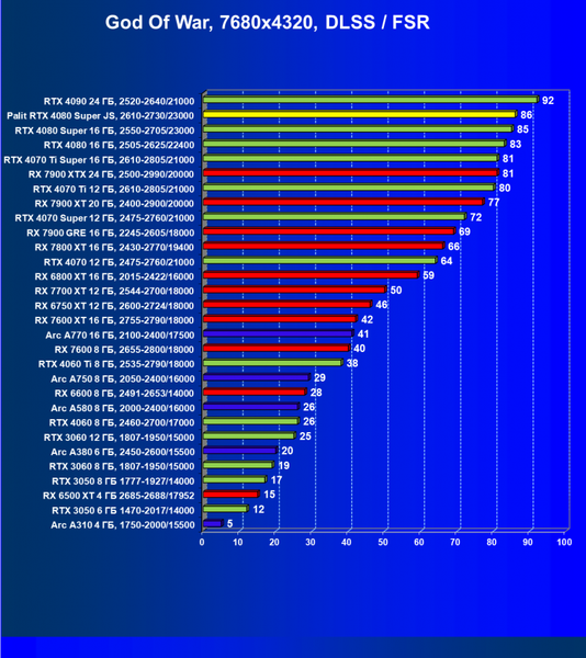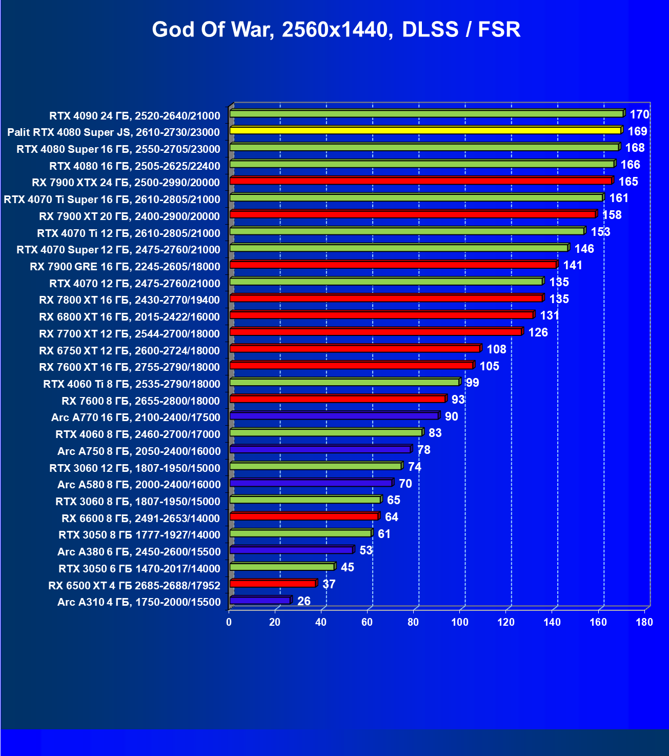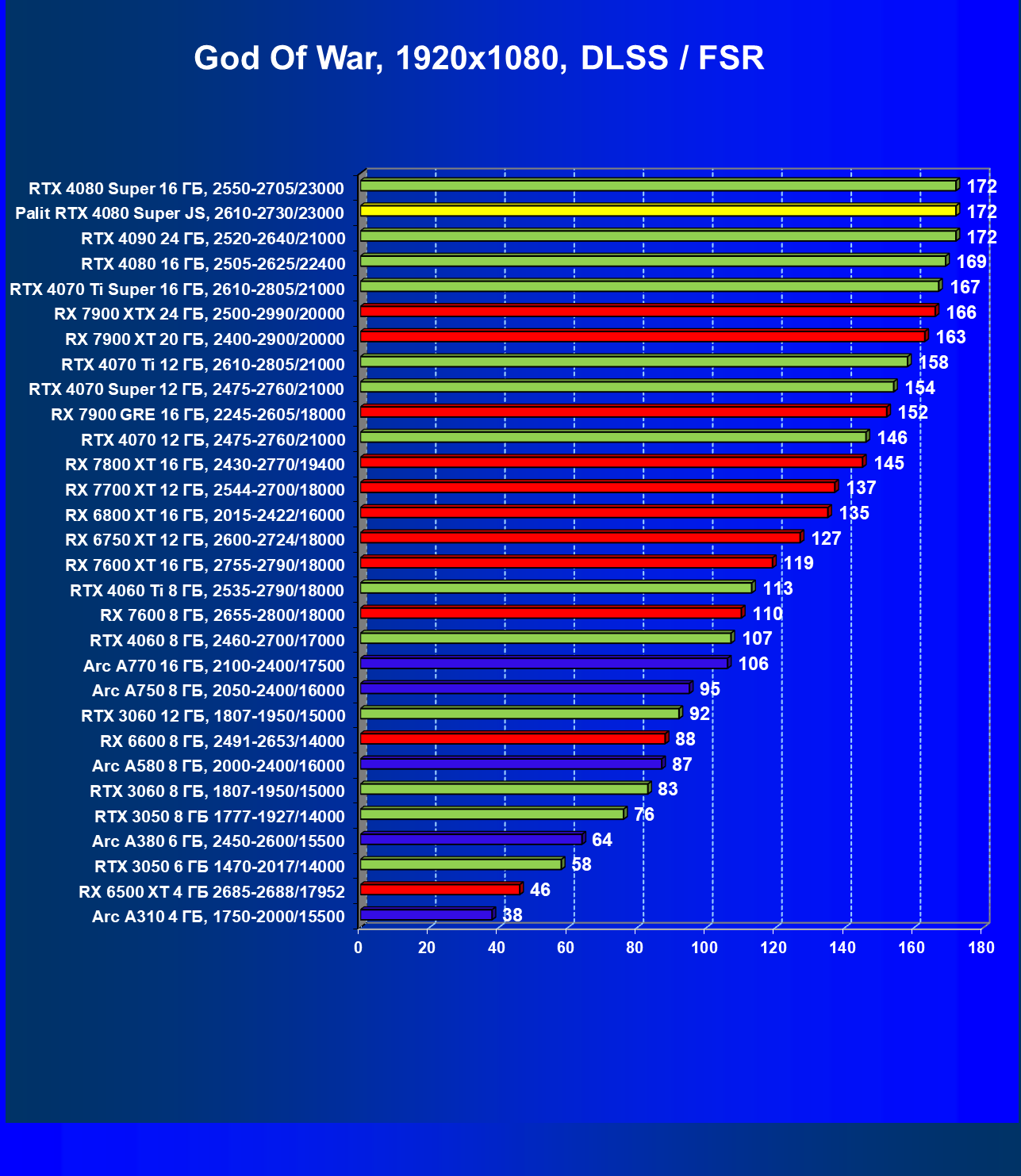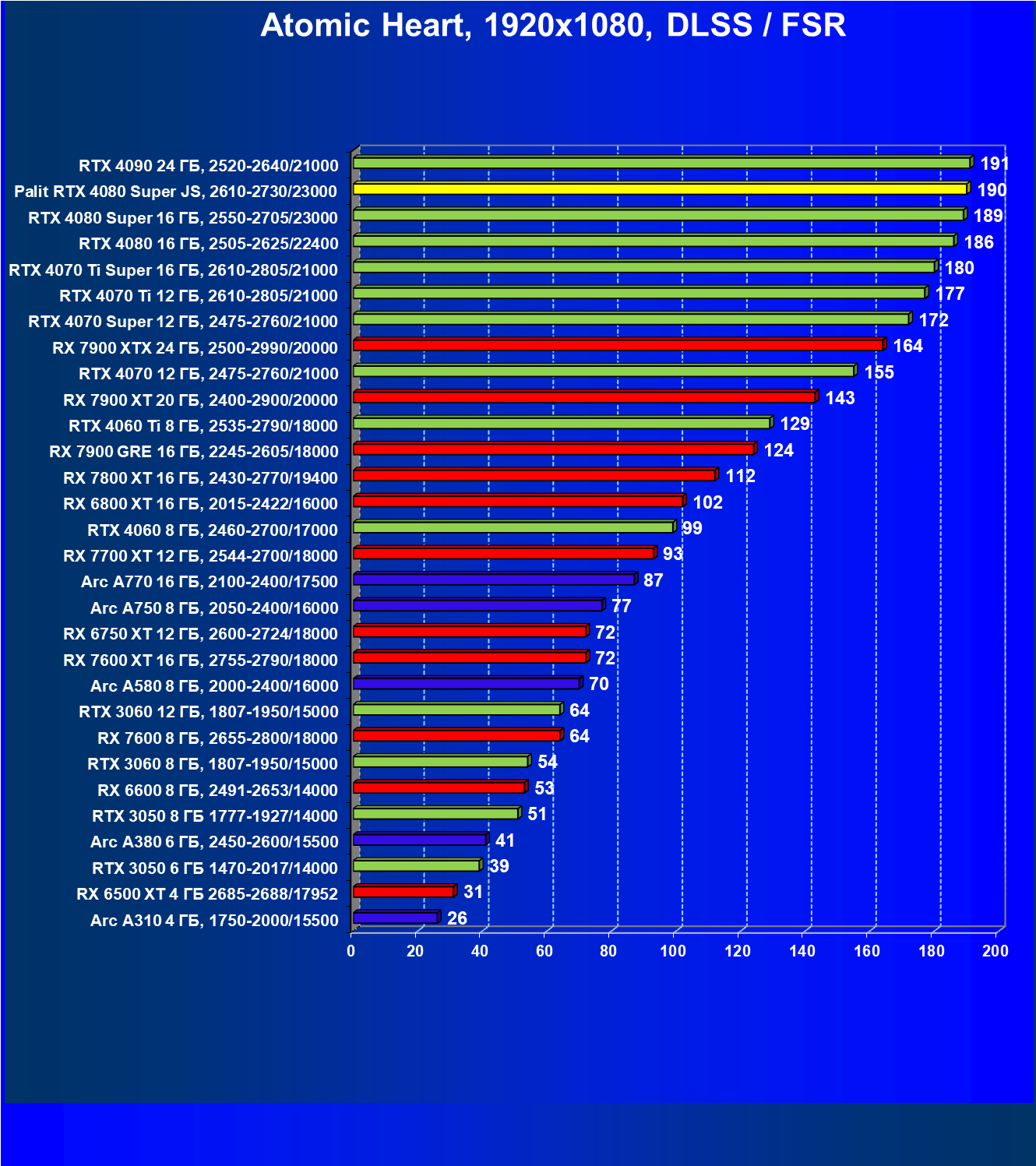 Да-да, у Radeon RX 7900 XT/XTX цены ниже (AMD вынуждена снижать, ибо иначе решения неконкурентоспособны), отсюда у них и рейтинг выше, но! Снова акцентируем внимание на том, что данном случае мы говорим о классических играх без трассировки лучей и технологий масштабирования, поэтому данный рейтинг для флагманского уровня решений как-то не показателен.