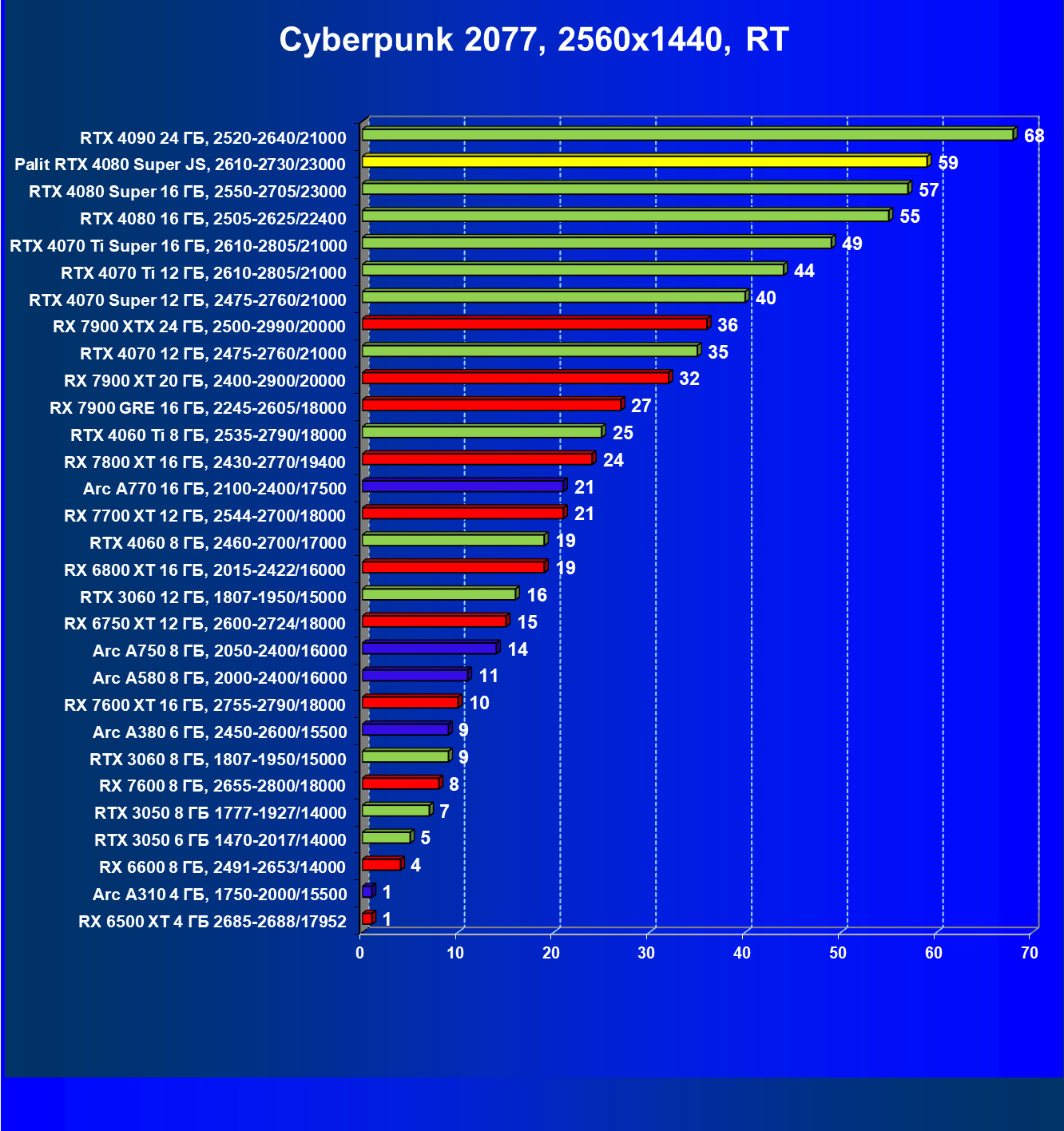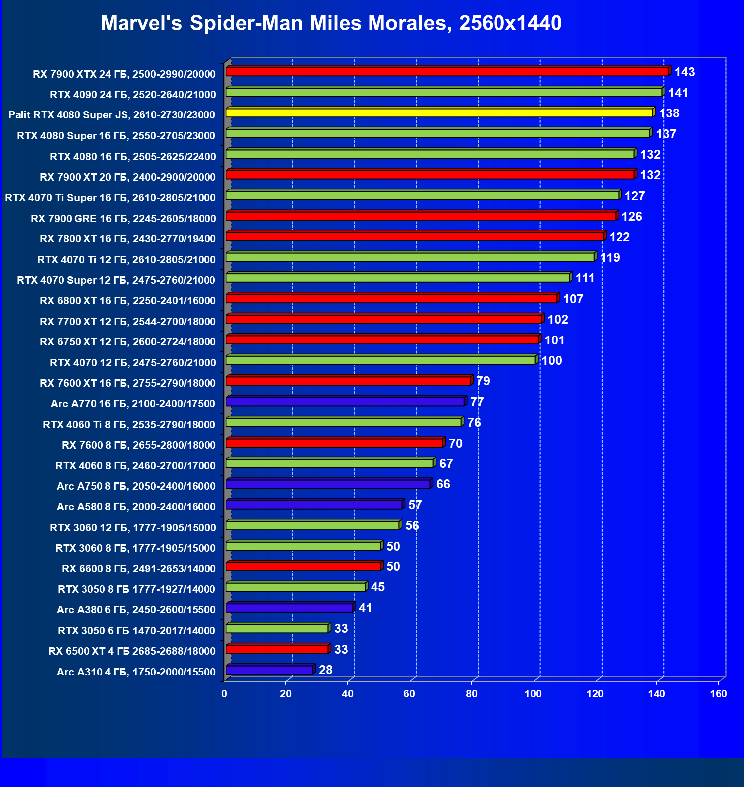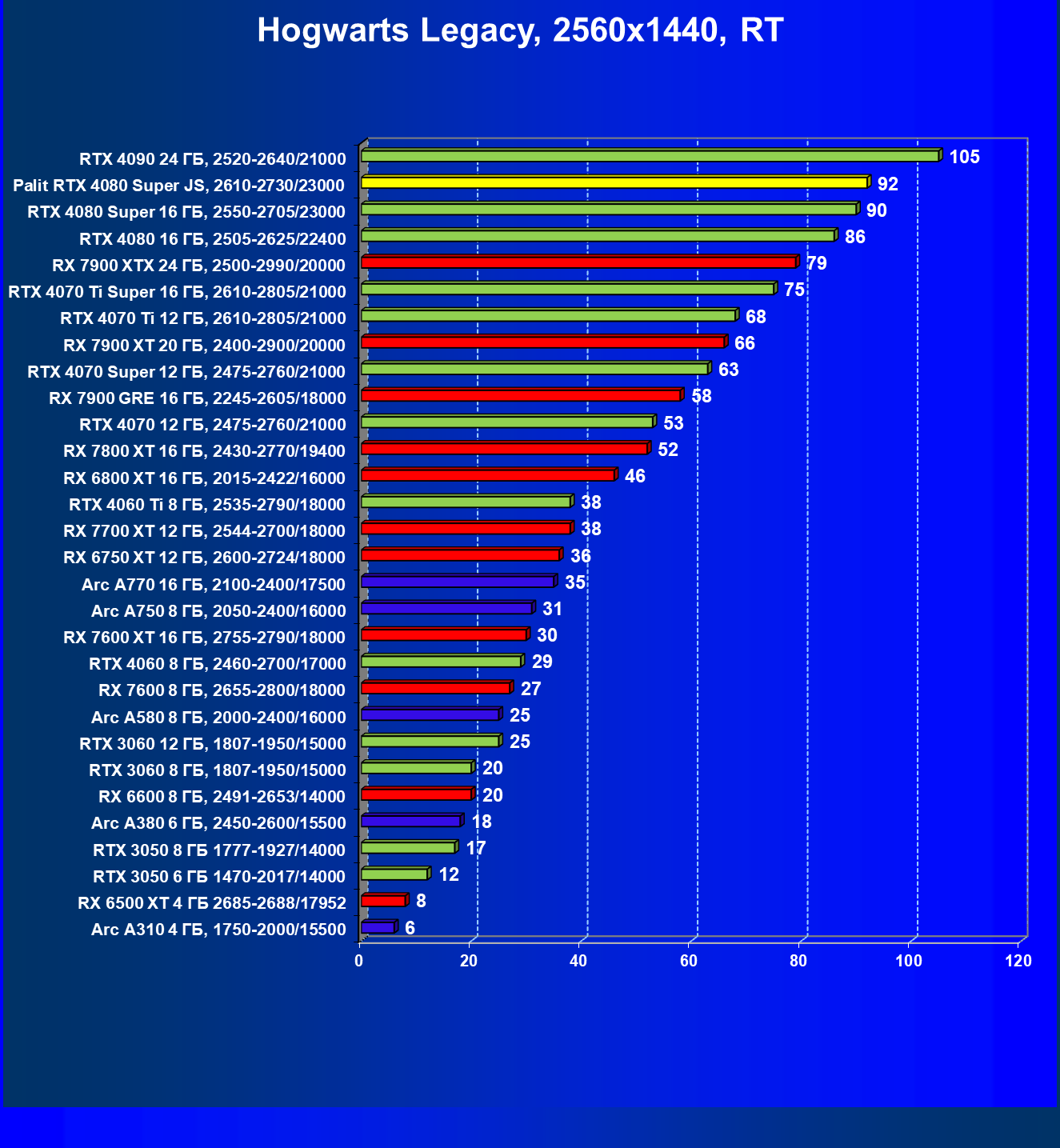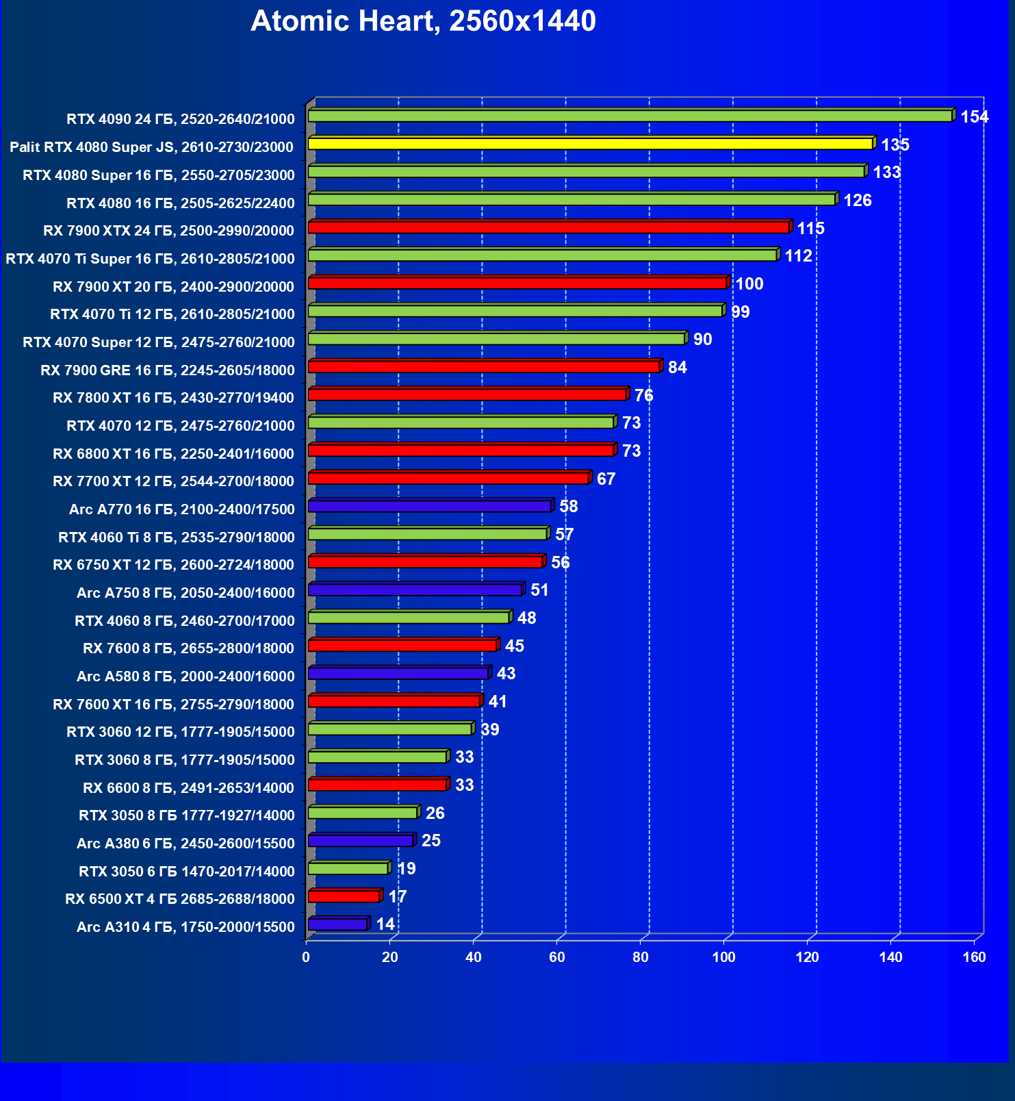 | 20 | Palit RTX 4080 Super JS, 2610—2730/23000 | 239 | 2864 | 120 000 |