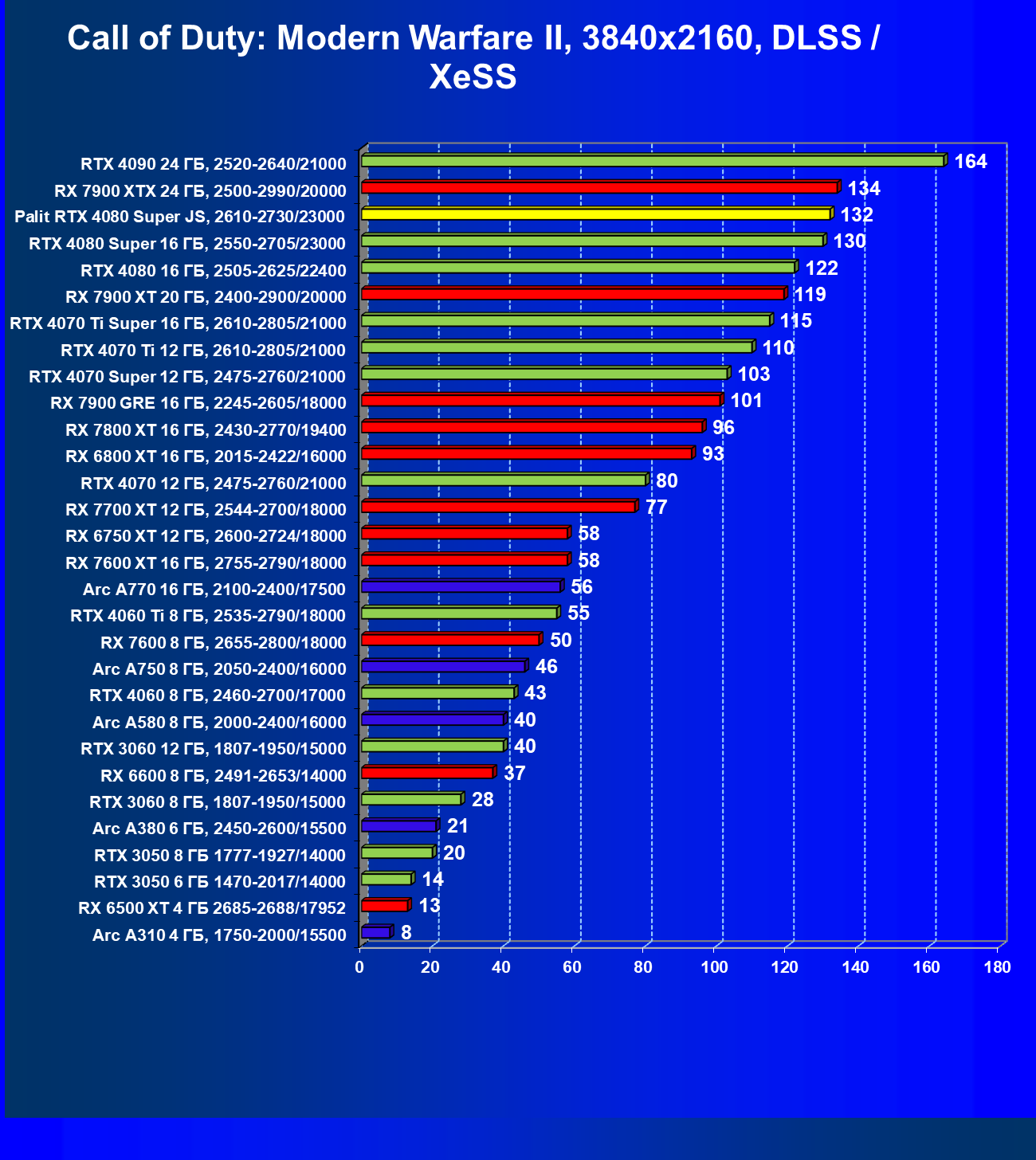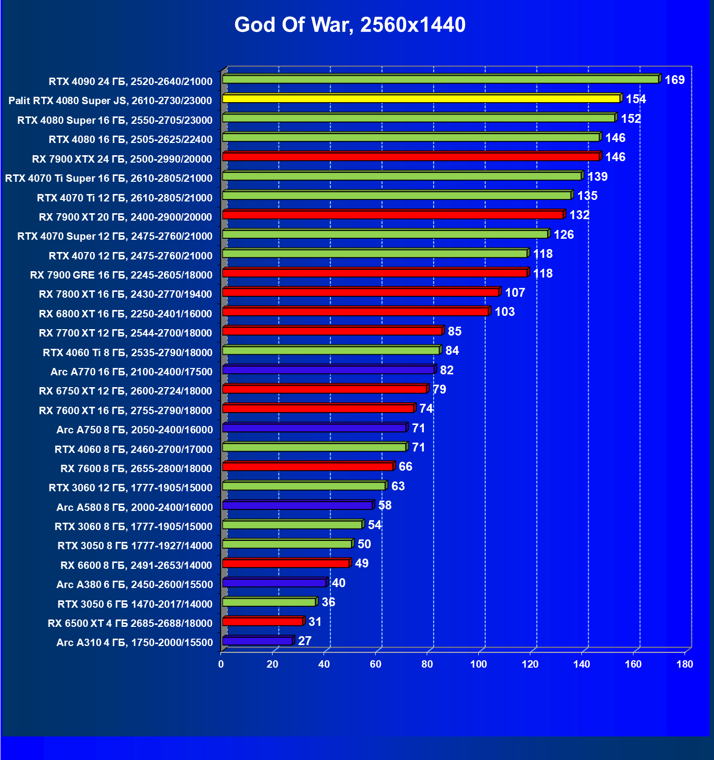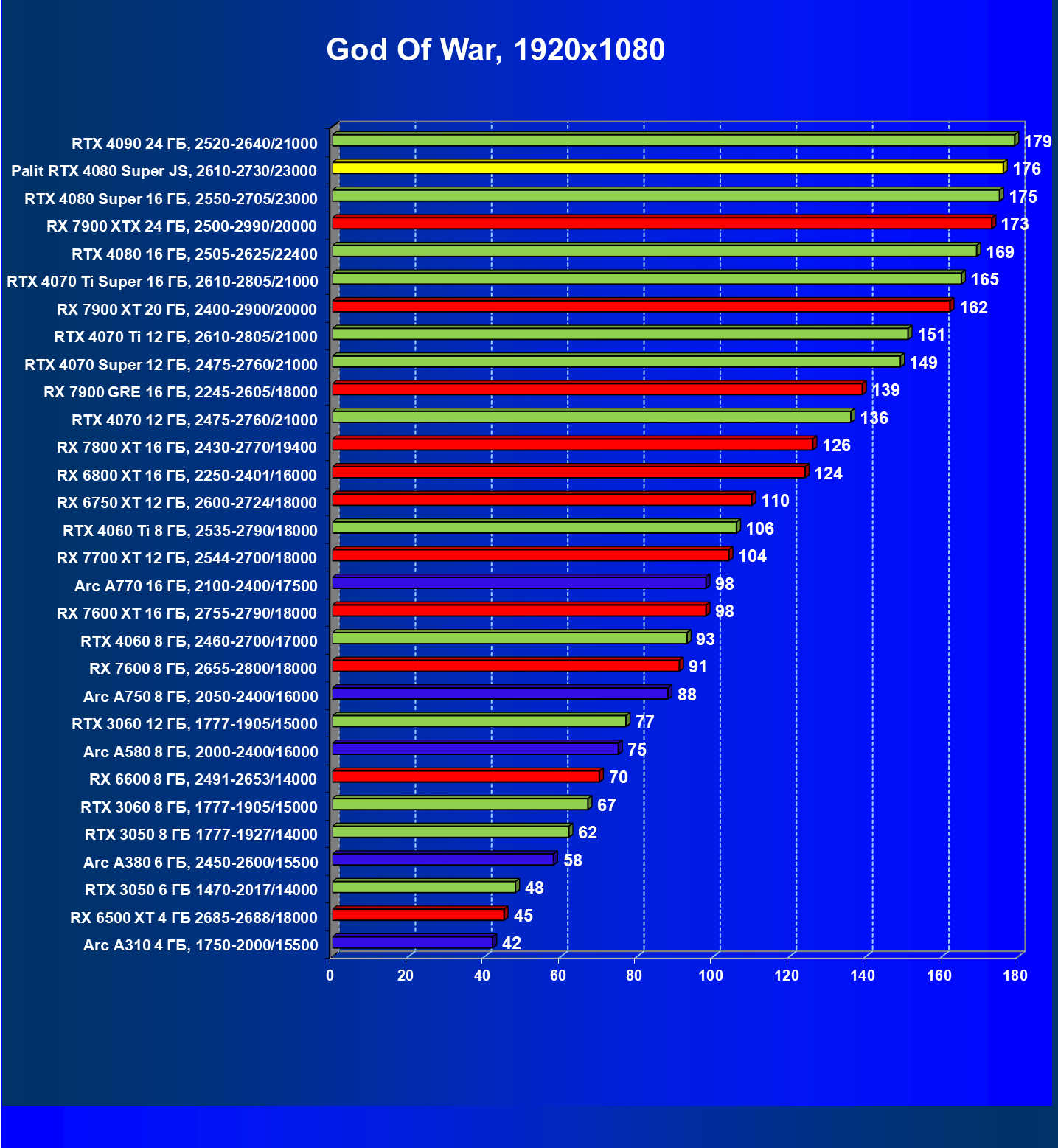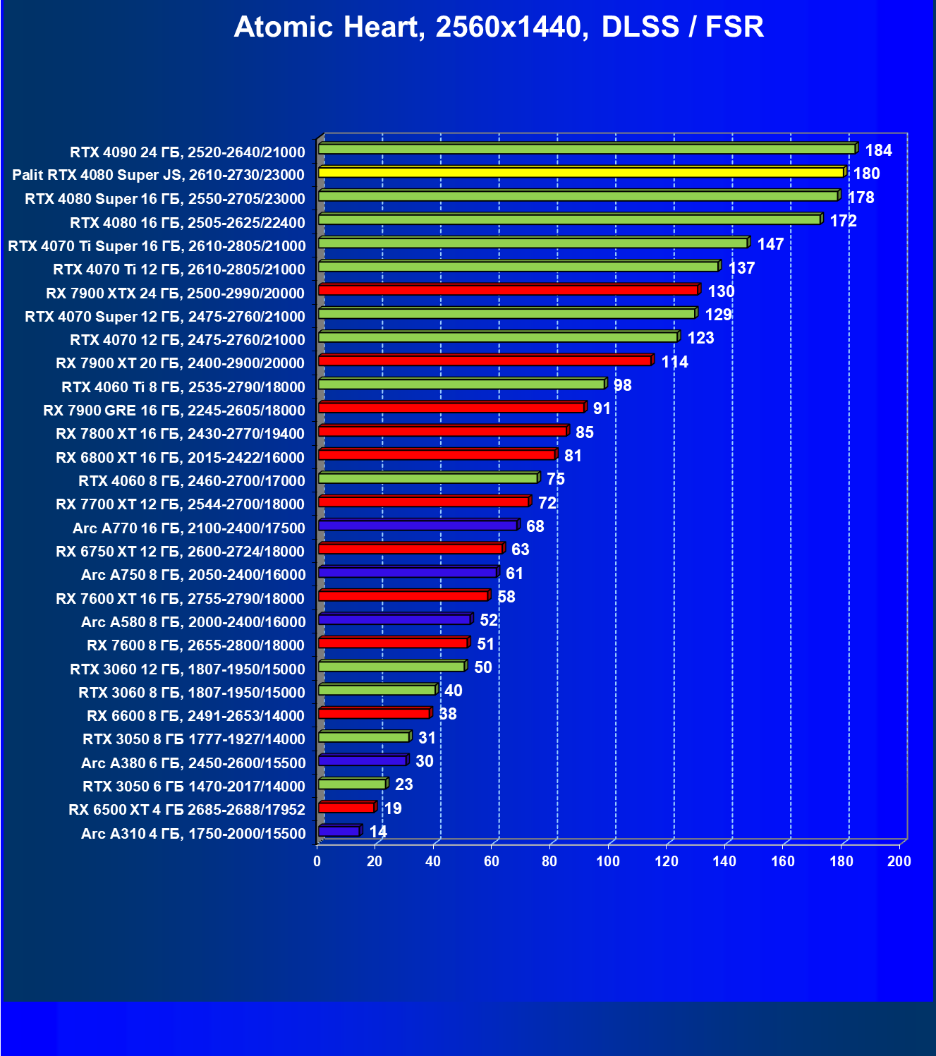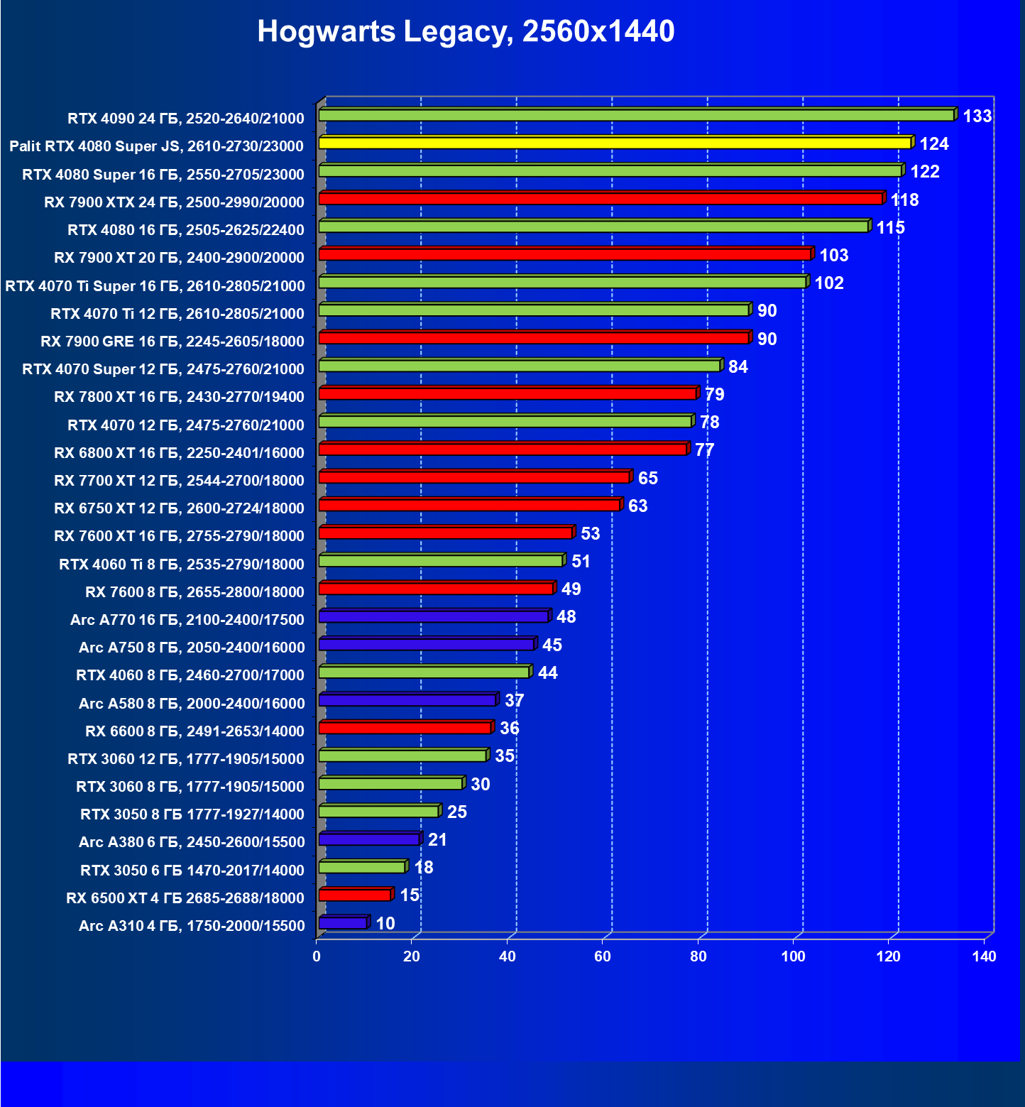 | 20 | Palit RTX 4080 Super JS, 2610—2730/23000 | 239 | 2864 | 120 000 |