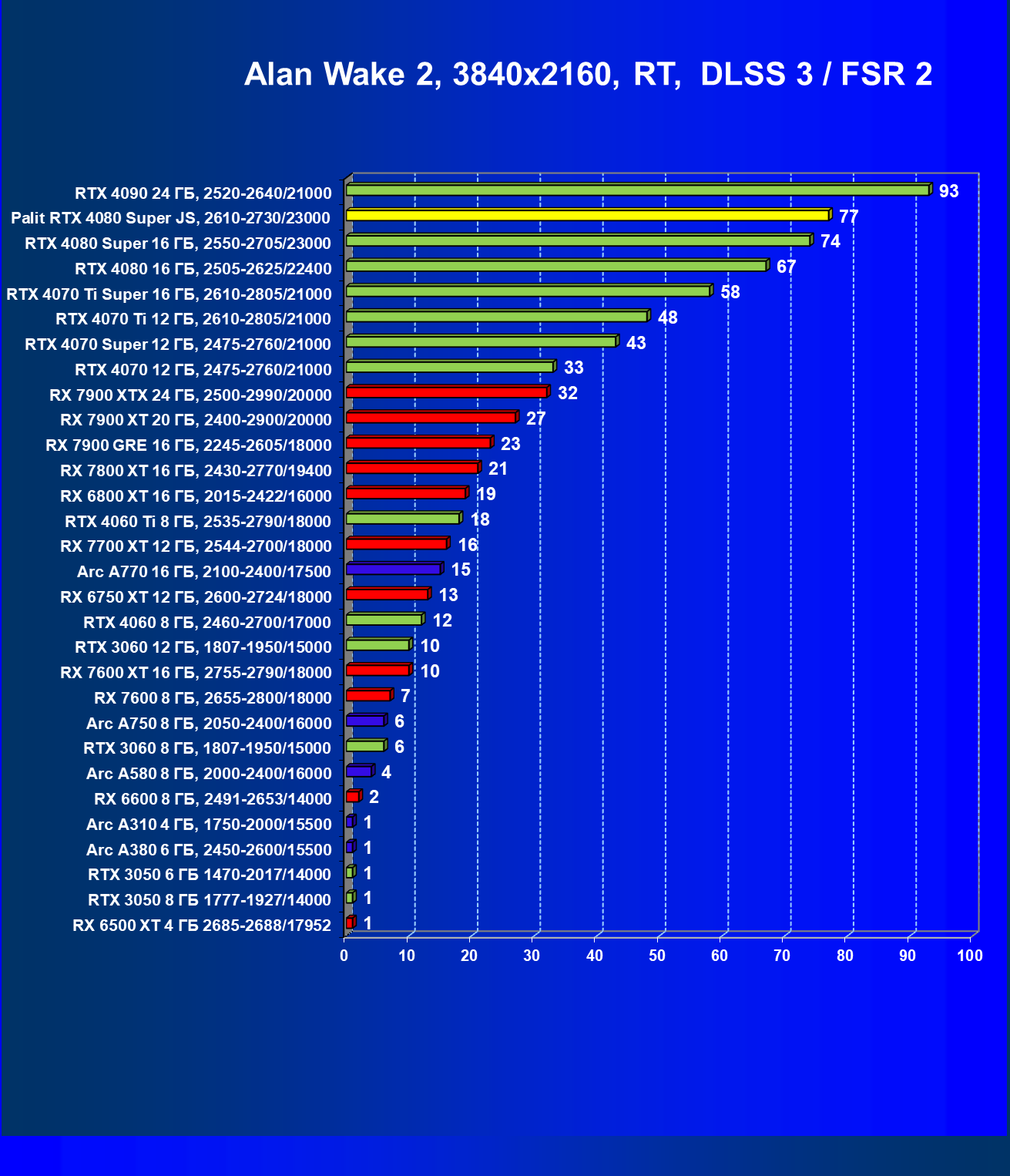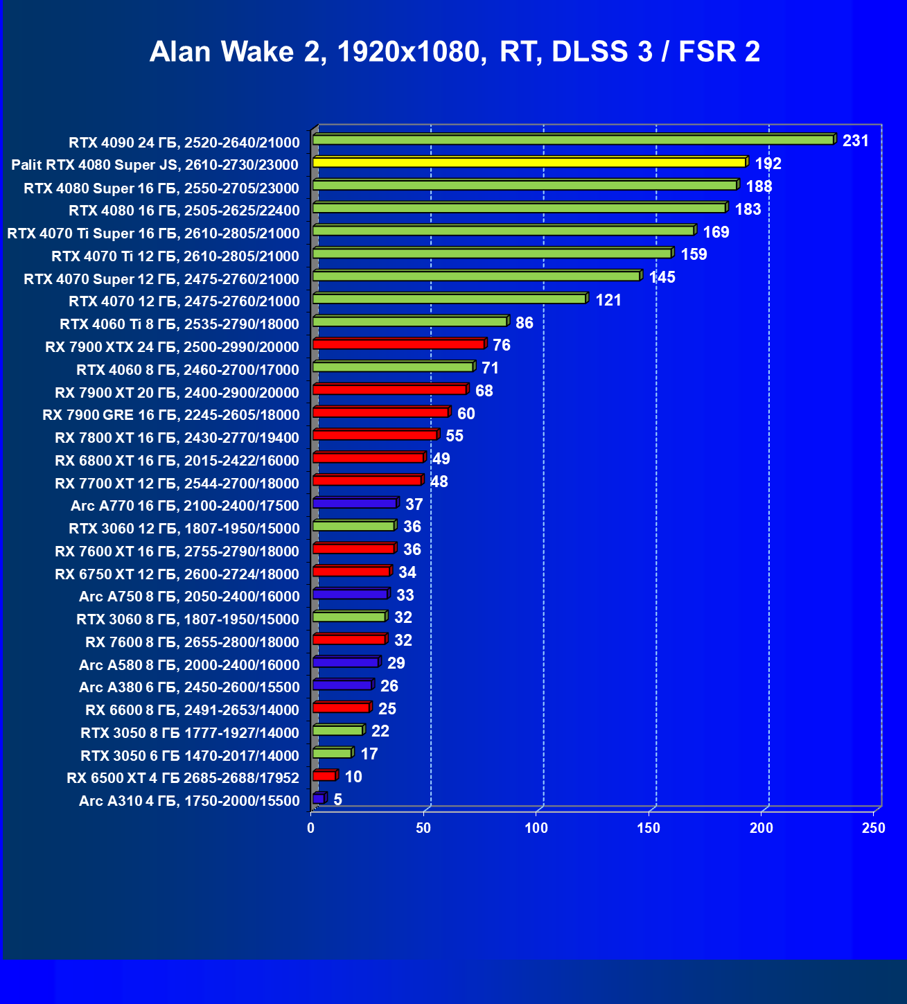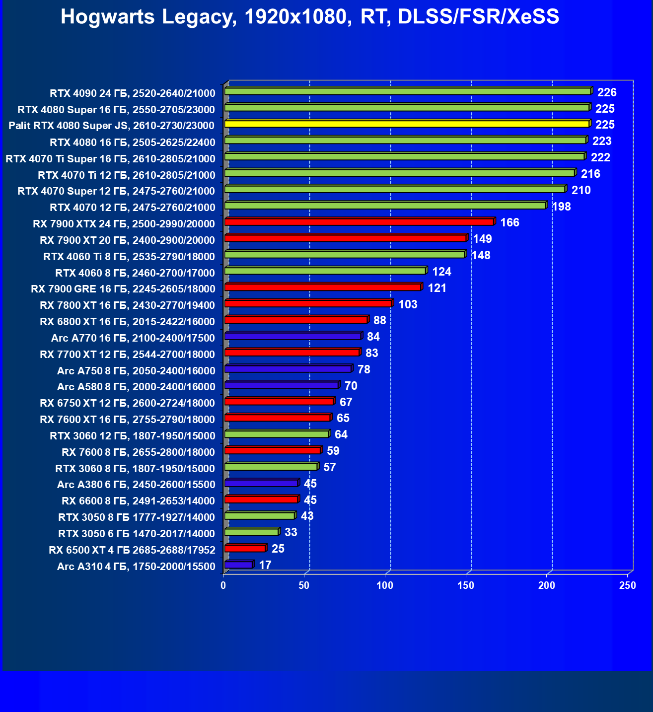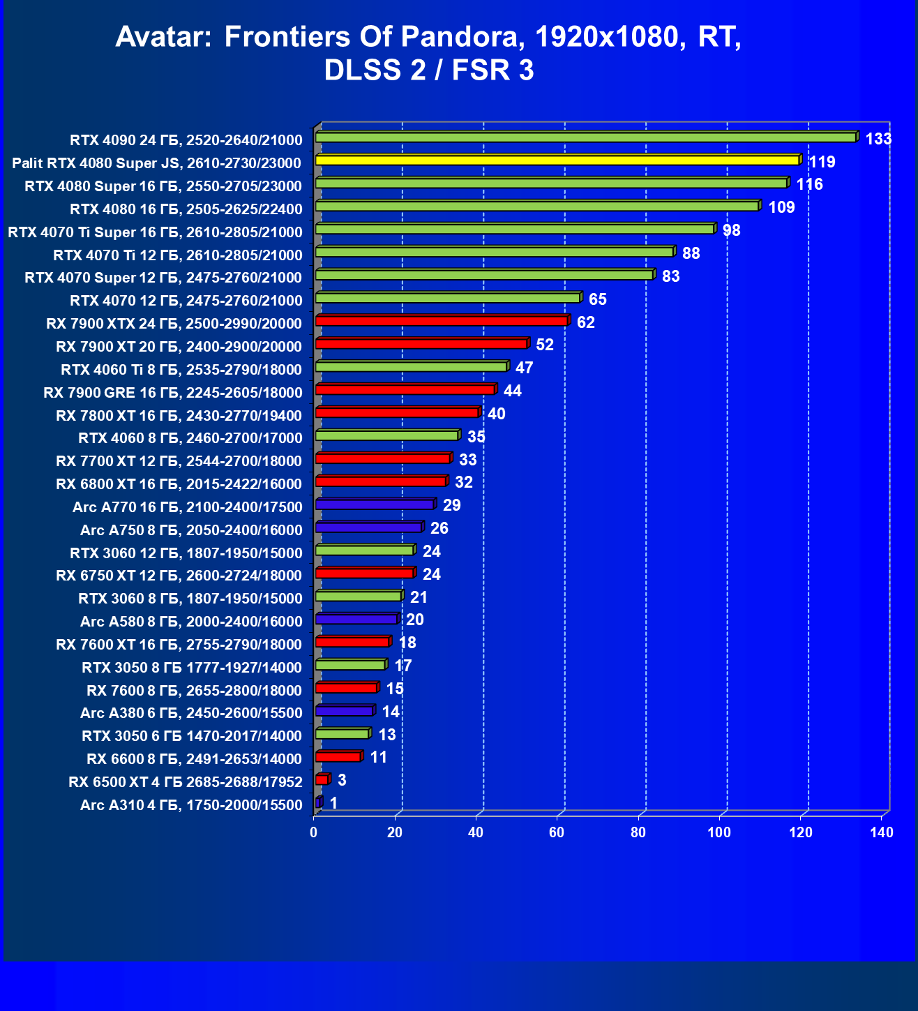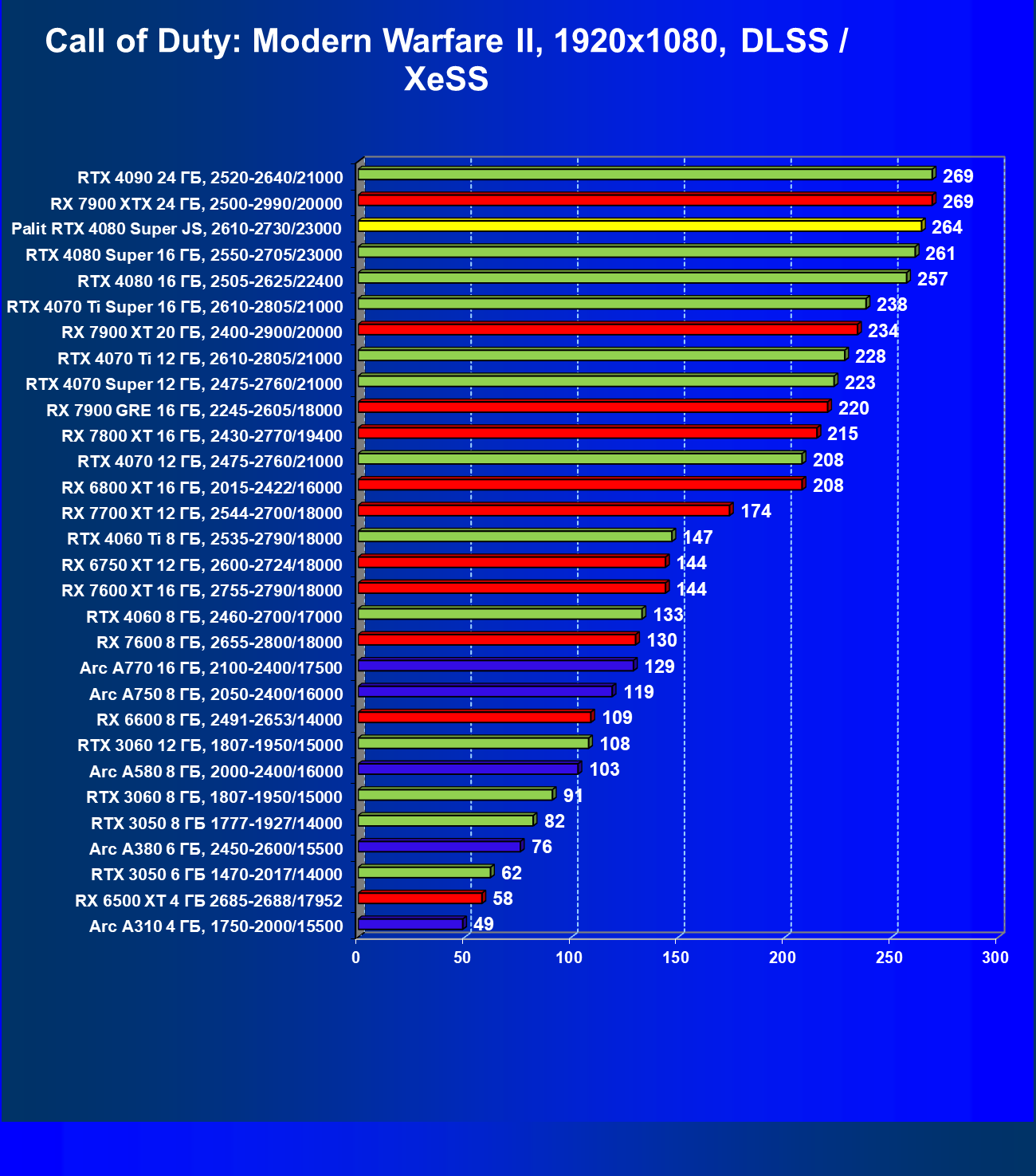 | 02 | Palit RTX 4080 Super JS, 2610—2730/23000 | 2864 | 239 | 120 000 |