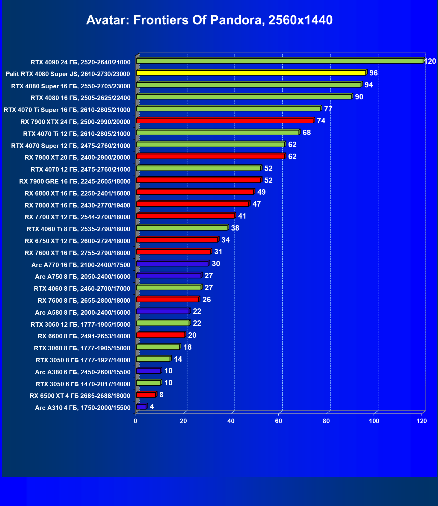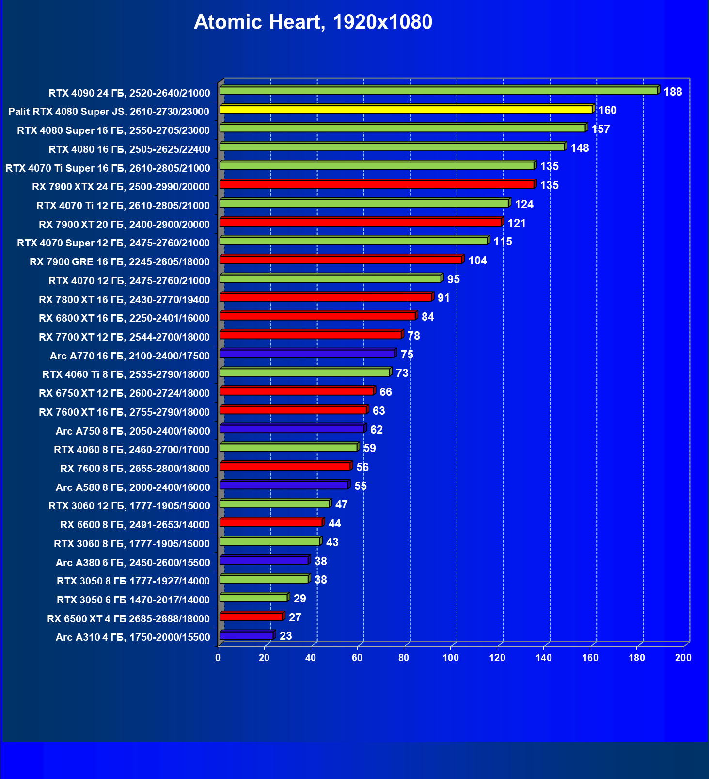 | 06 | Palit RTX 4080 Super JS, 2610—2730/23000 | 436 | 5230 | 120 000 |