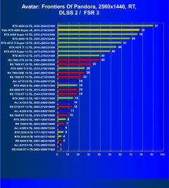 При активации трассировки лучей в играх решения AMD сдают свои позиции, уходят в аутсайдеры. Учитывая, что дело идет к тому, что вскоре львиная доля 3D-игр по умолчанию будет поддерживать и RT, и DLSS/FSR/XeSS, данный рейтинг более показателен для тех, кто покупает дорогую видеокарту на приличную перспективу. А вся причина в том, что работа DLSS 3 на сегодня намного более эффективная (компенсация потерь от RT почти полная, а то и лихвой), нежели FSR/XeSS.