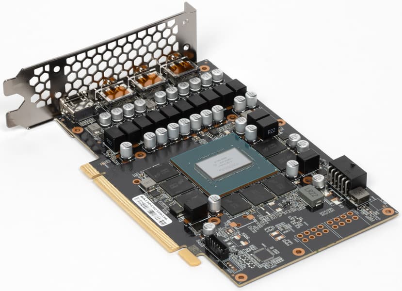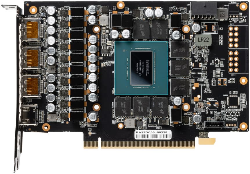 Еще надо отметить поддержку стандарта HDMI 2.1, позволяющего выводить 4K-изображение со 120 FPS или 8K-разрешение при помощи одного кабеля, поддержку аппаратного декодирования видеоданных в формате AV1, технологию RTX IO, способную обеспечить быструю передачу и распаковку данных с накопителей прямо в GPU. Однако что касается поддержки стандарта DisplayPort, то здесь по-прежнему версия только 1.4a.