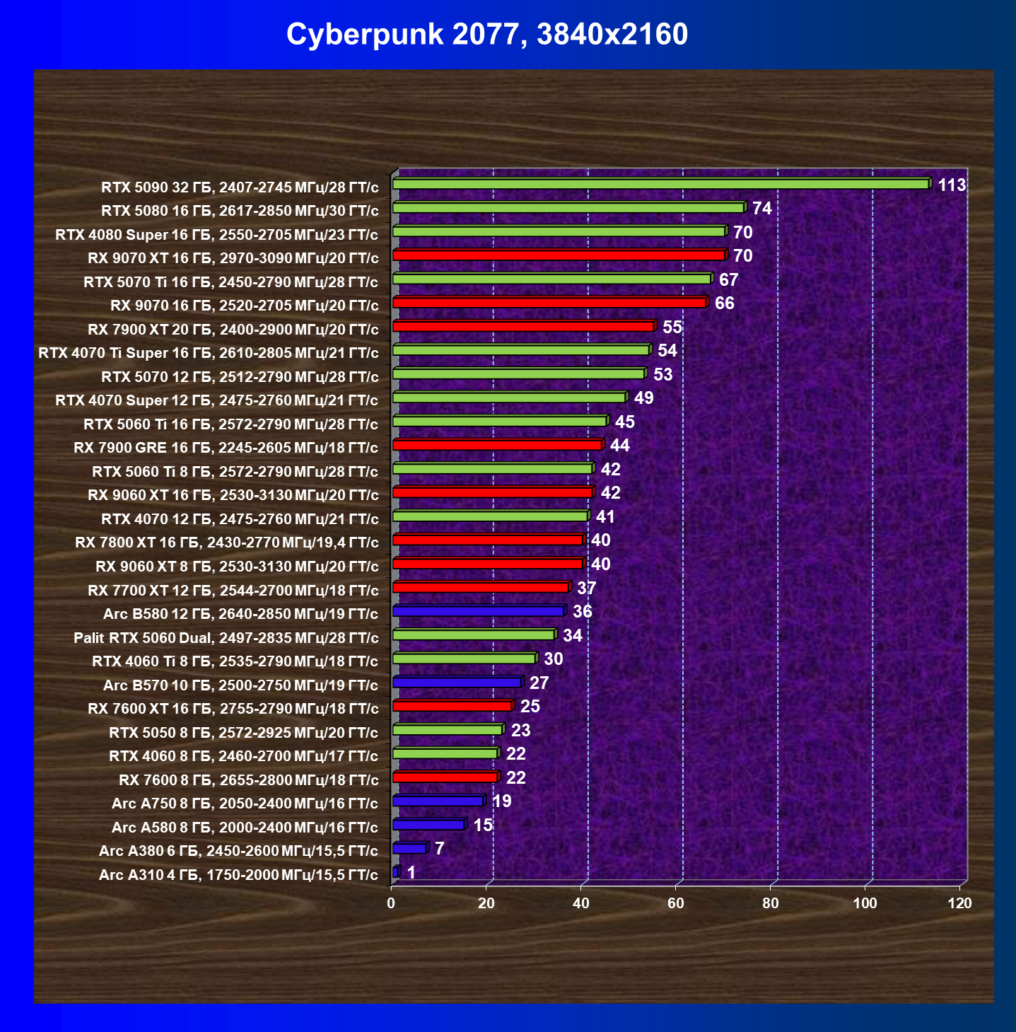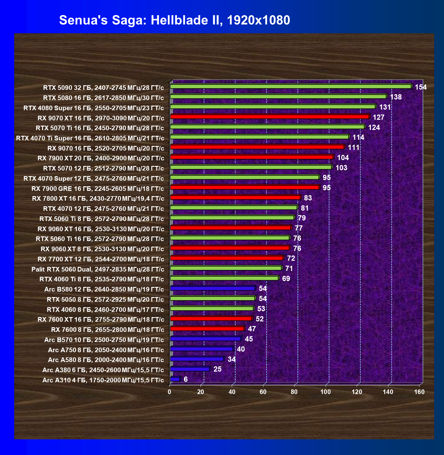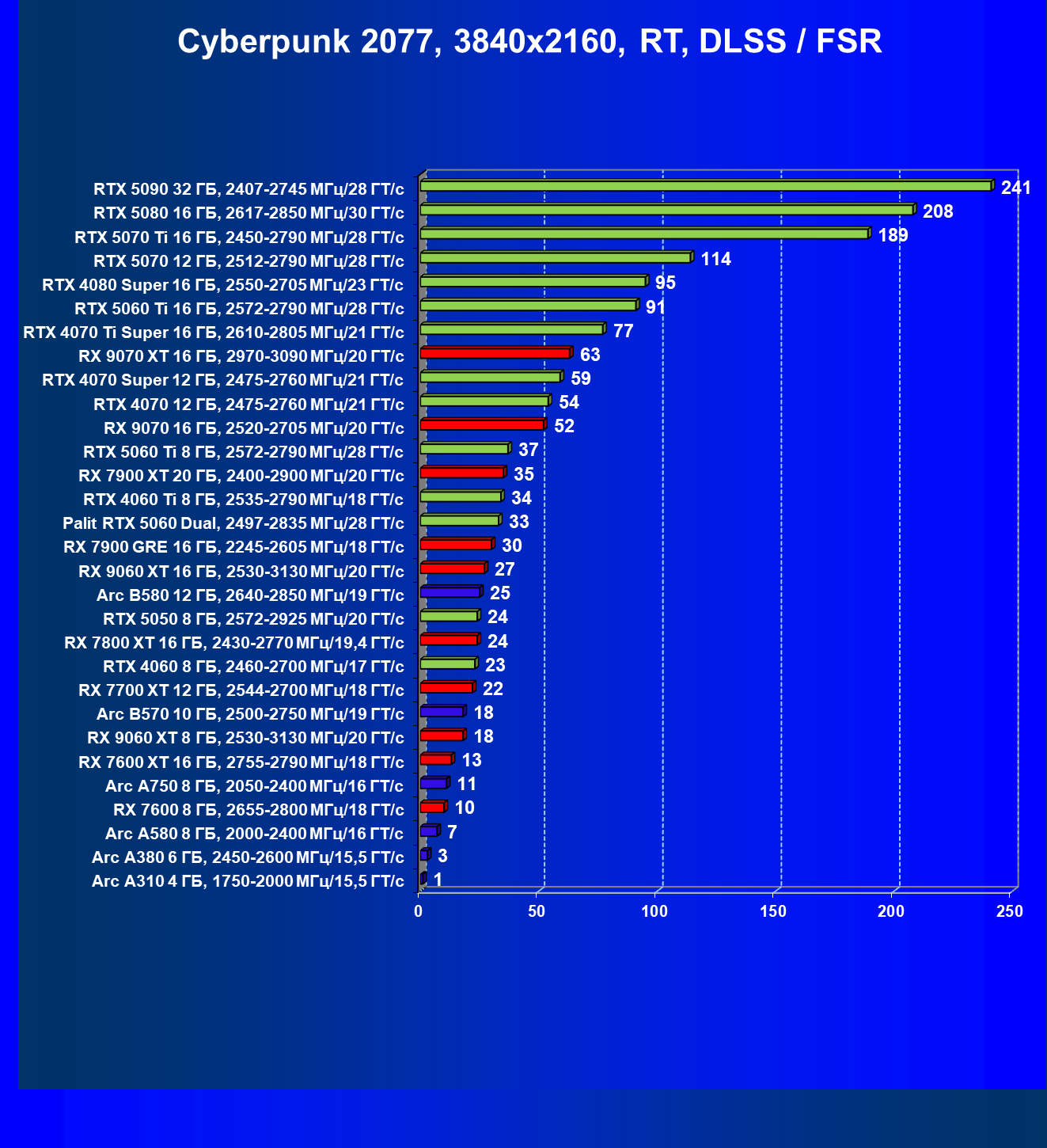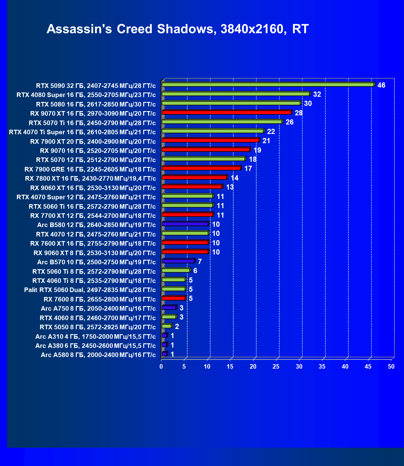 | 03 | Arc B570 10 ГБ, 2500—2750 МГц/19 ГТ/с | 166 | 449 | 27 000 |