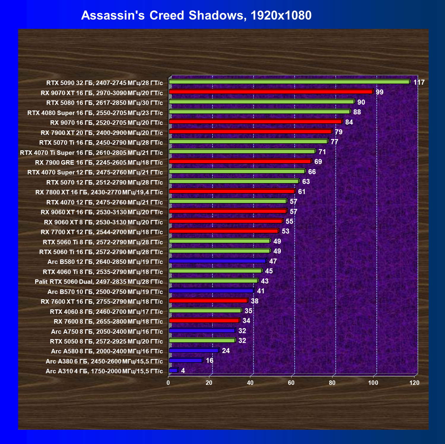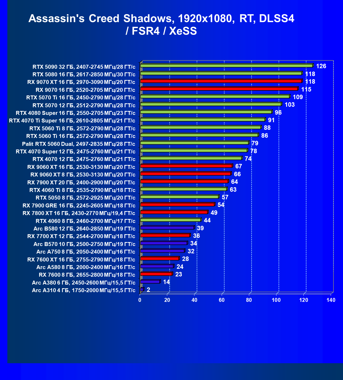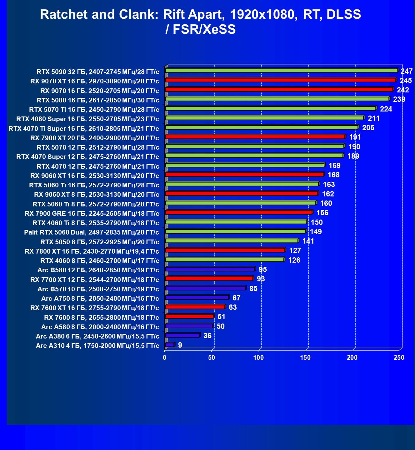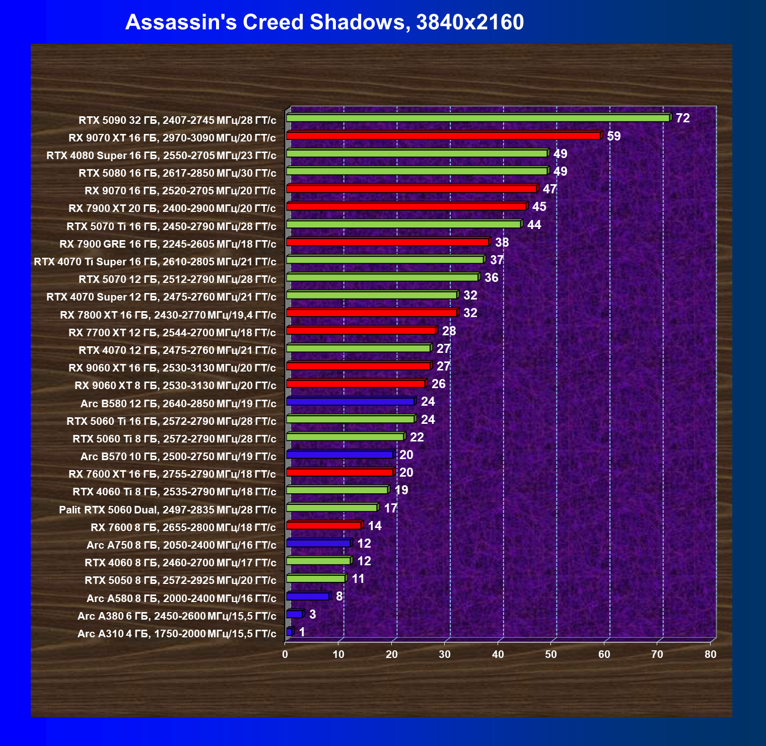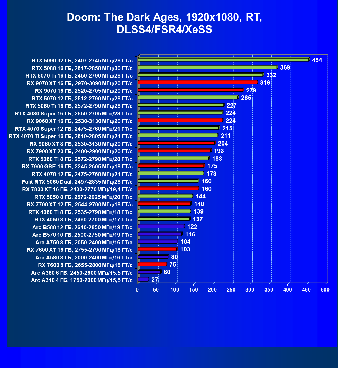 | 03 | Arc B570 10 ГБ, 2500—2750 МГц/19 ГТ/с | 166 | 449 | 27 000 |