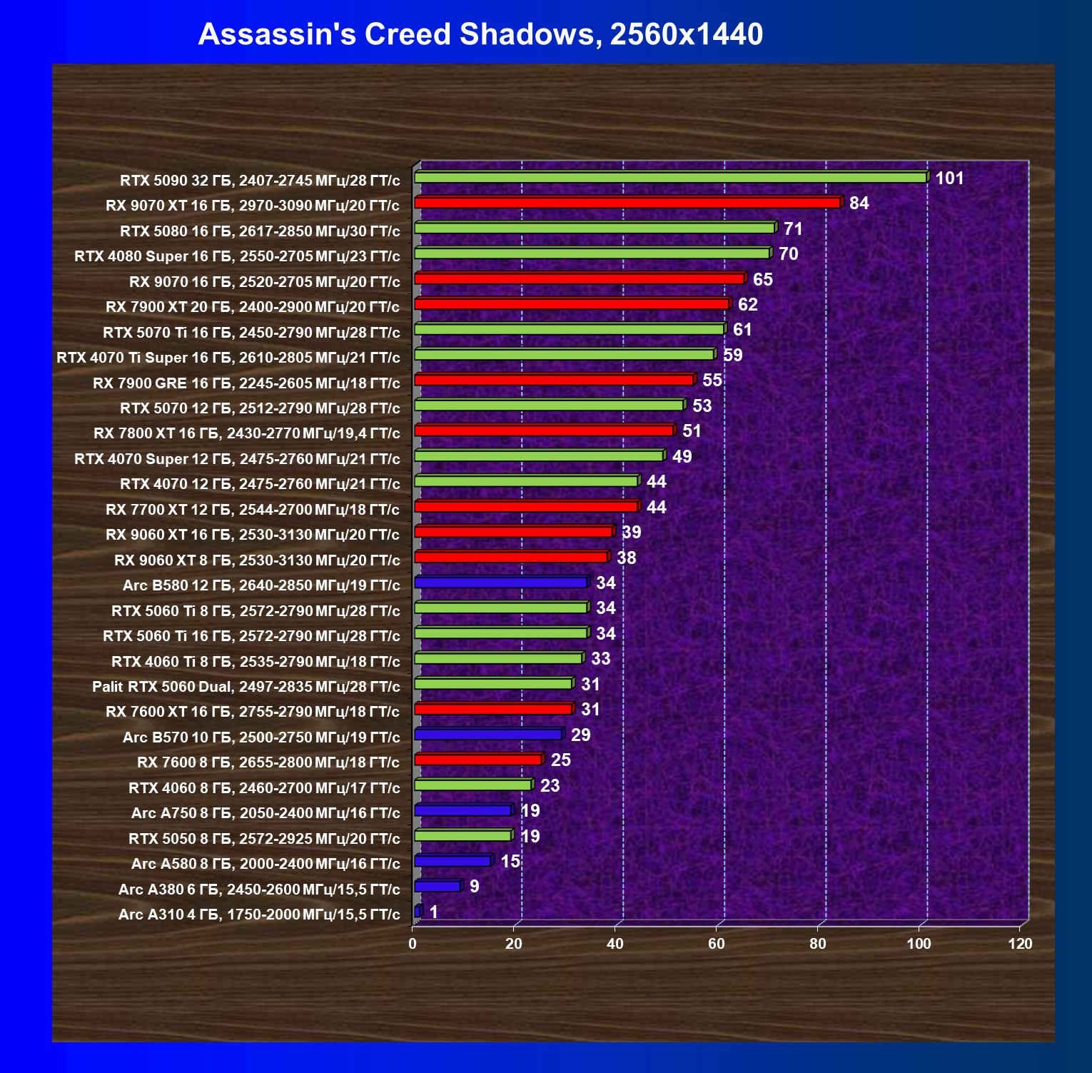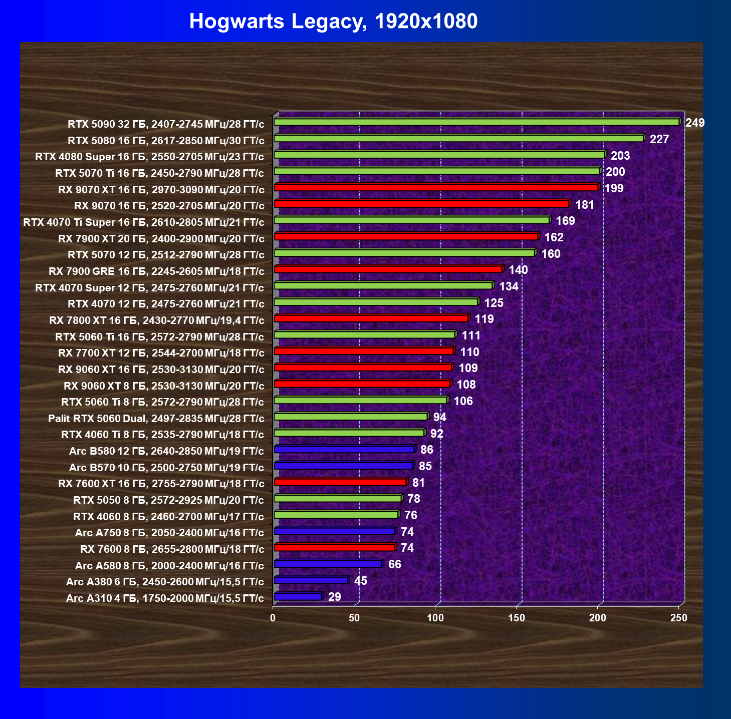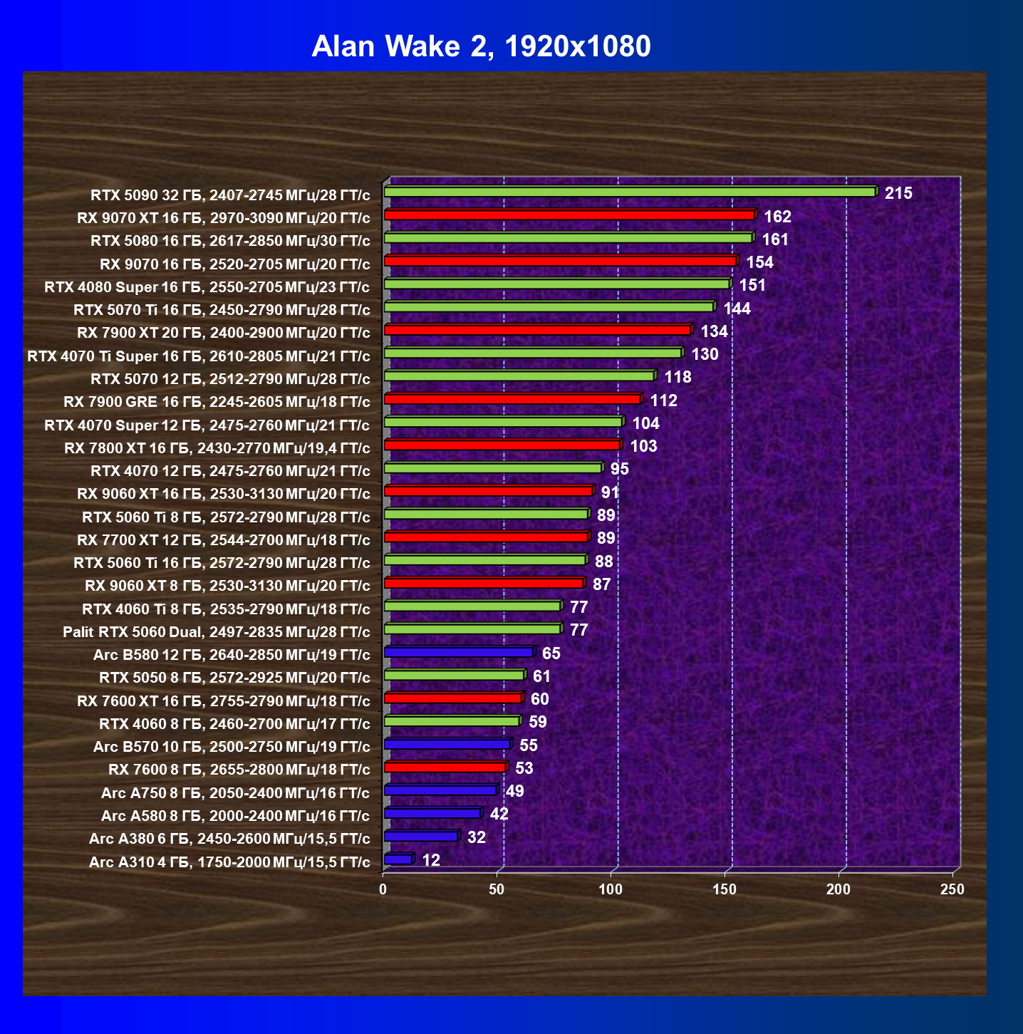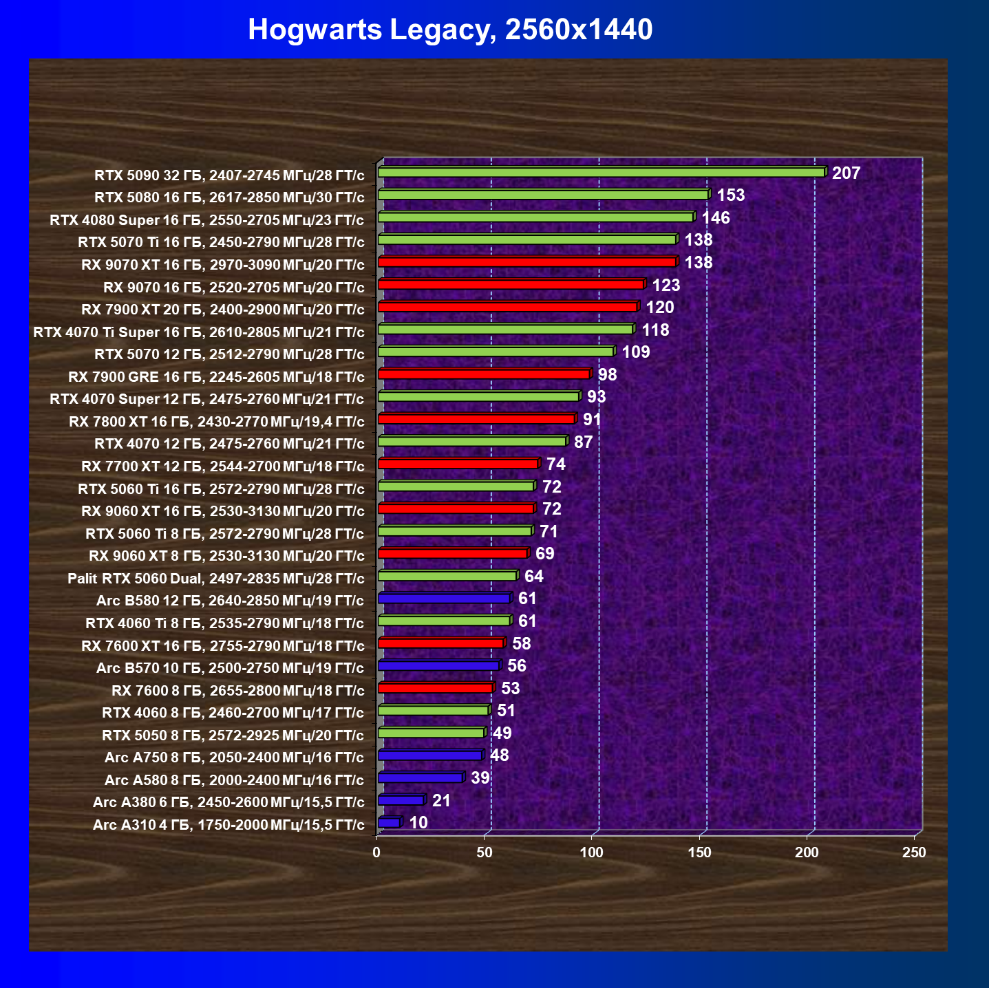 | 03 | Arc B570 10 ГБ, 2500—2750 МГц/19 ГТ/с | 166 | 449 | 27 000 |