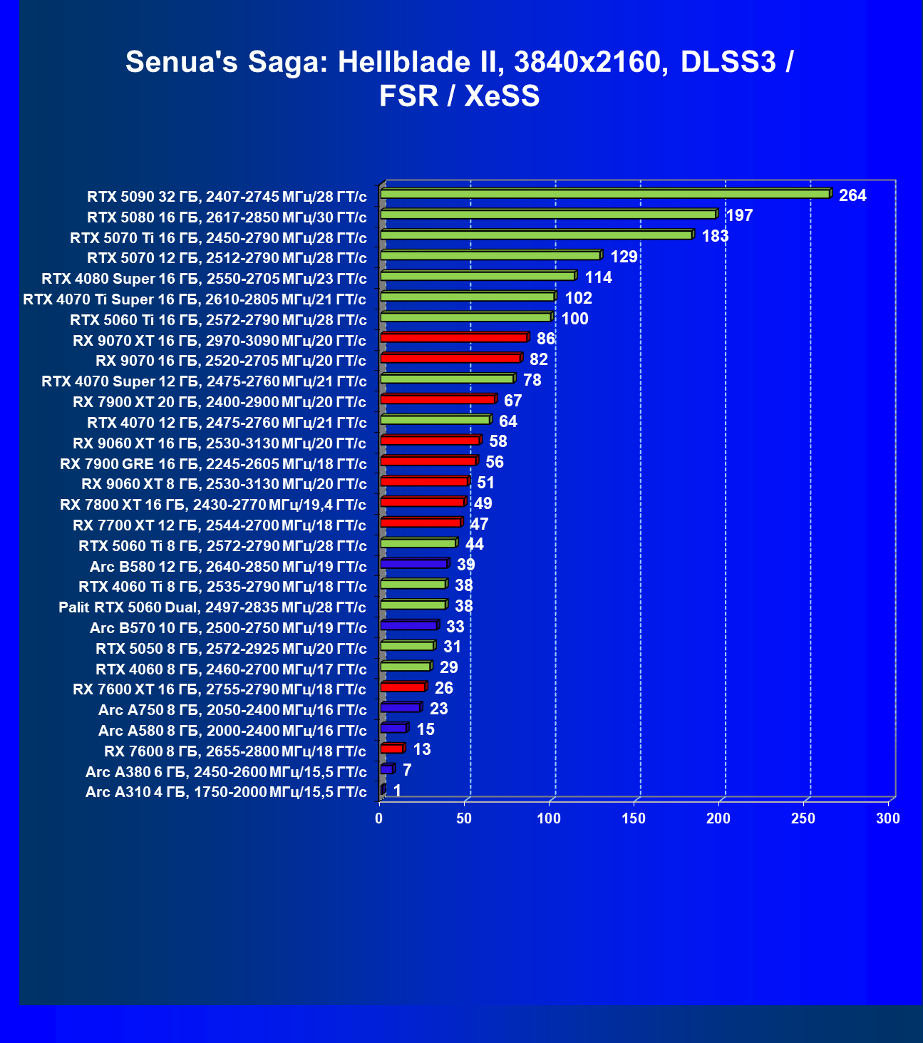 | 24 | Arc B570 10 ГБ, 2500—2750 МГц/19 ГТ/с | 774 | 287 | 27 000 |