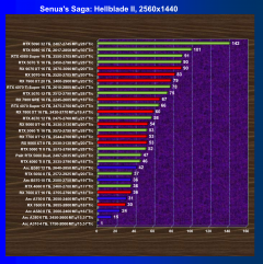- Стандартные результаты тестов без использования аппаратной трассировки лучей в разрешениях 1920×1080, 2560×1440 и 3840×2160