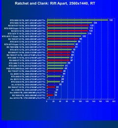 Если включить RT, то во все игры точно так же можно играть с высокими настройками графики в разрешении 1080p (Full HD), но динамическое масштабирование (DLSS или FSR/XeSS) будет при этом обязательным. В разрешении 1440p (2.5K) хорошую производительность можно получить только в играх, поддерживающих DLSS 4 (за счет MFG).