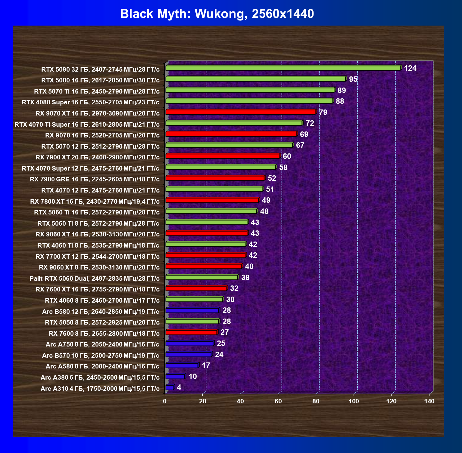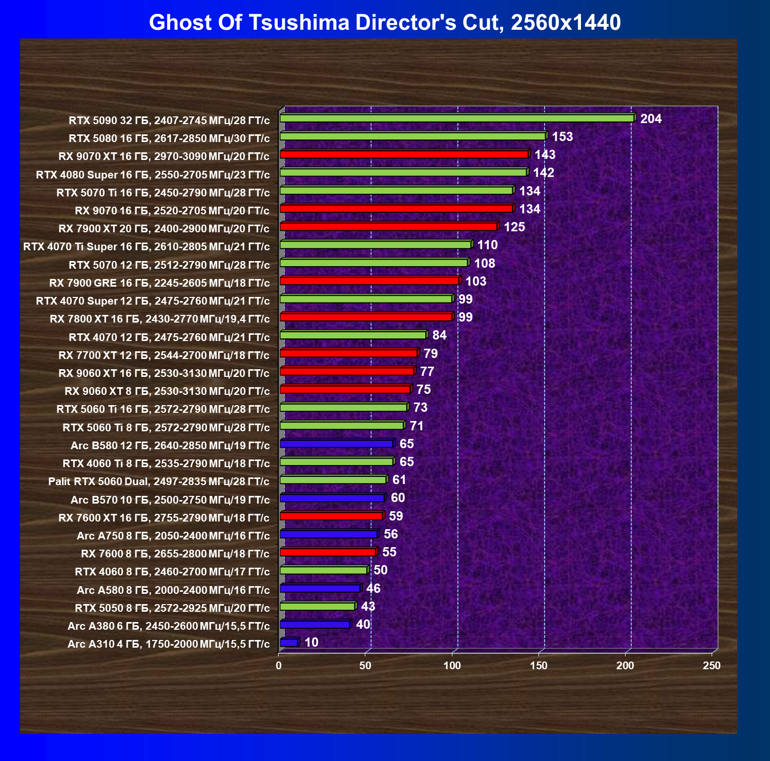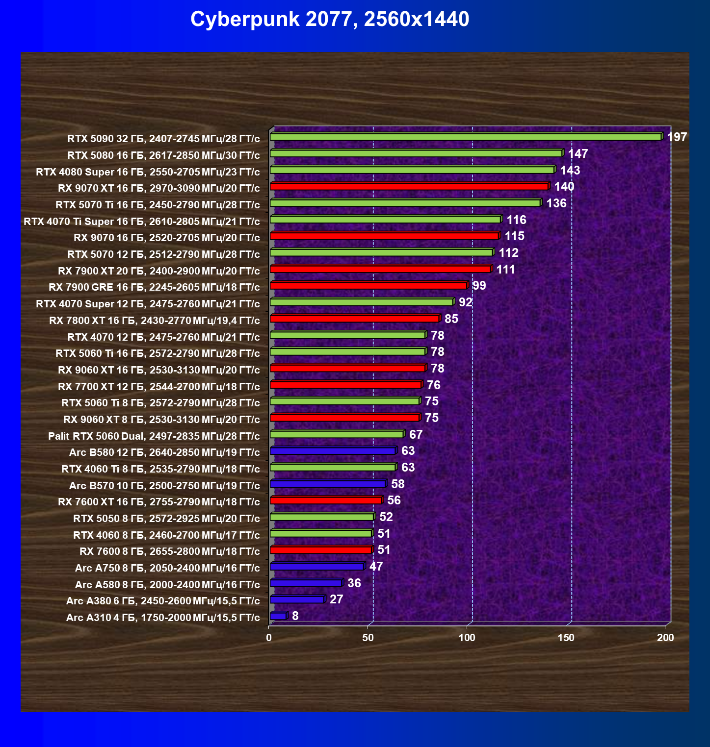 | 05 | RTX 5060 Ti 8 ГБ, 2572—2790 МГц/28 ГТ/с | 149 | 655 | 44 000 |