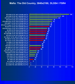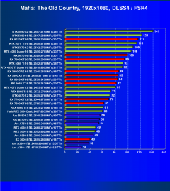 Ситуация почти аналогичная (в нашем наборе тестов пока игр с поддержкой FSR 4 немного (а это вид апскейлинга — главный козырь семейства Radeon RX 9xxx), а поддержка DLSS 4.* — более широкая, поэтому и здесь RTX 5060 опередил соперника из стана AMD.