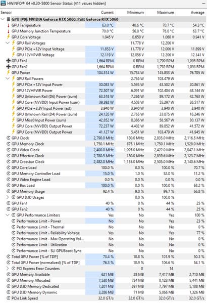 | 01 | Palit RTX 5060 Dual, 2497—2835 МГц/28 ГТ/с | 397 | 1311 | 33 000 |