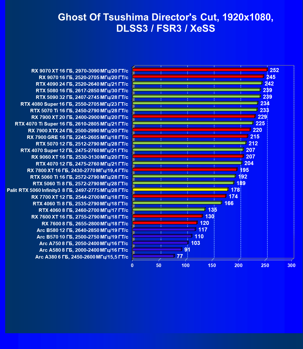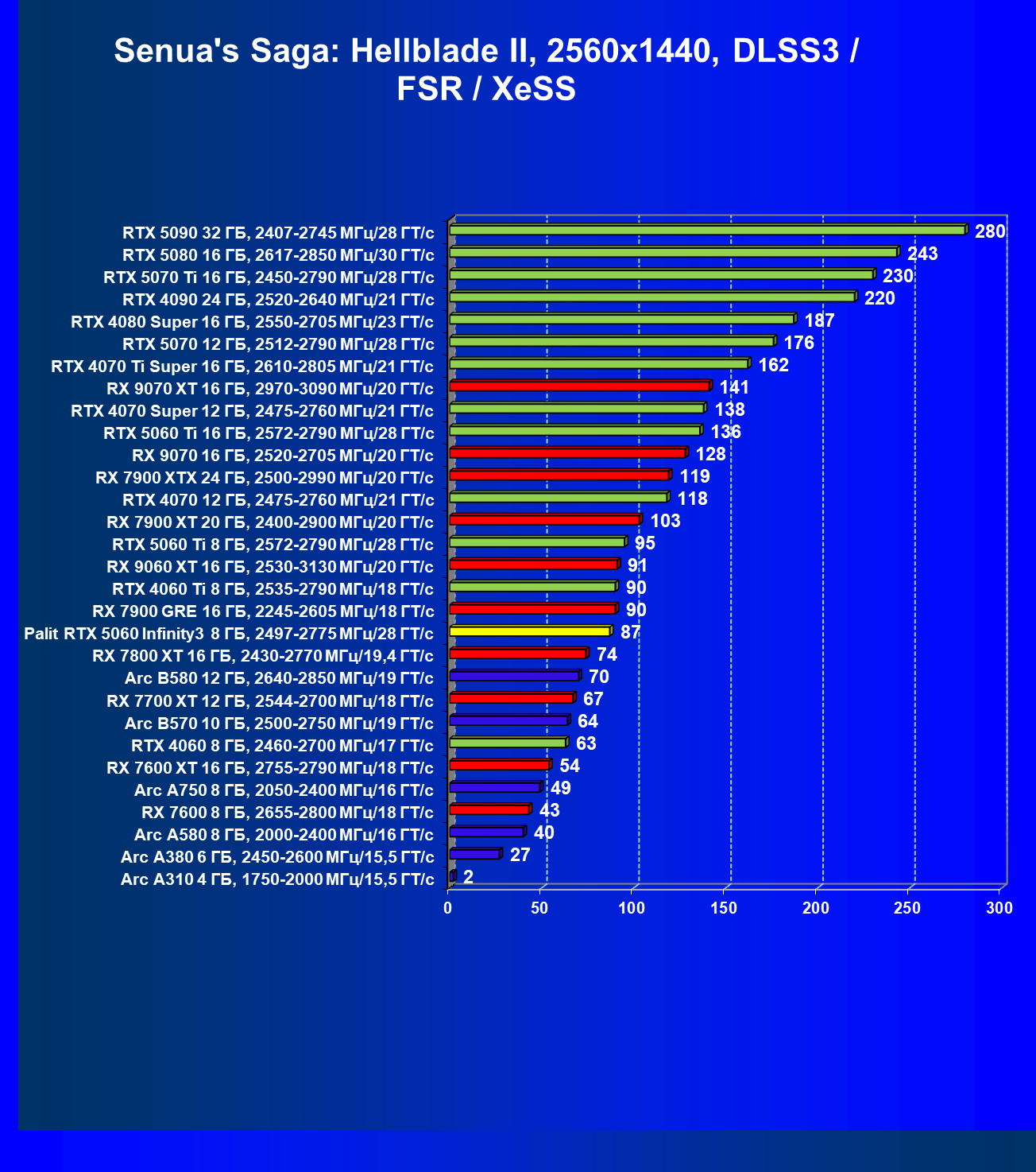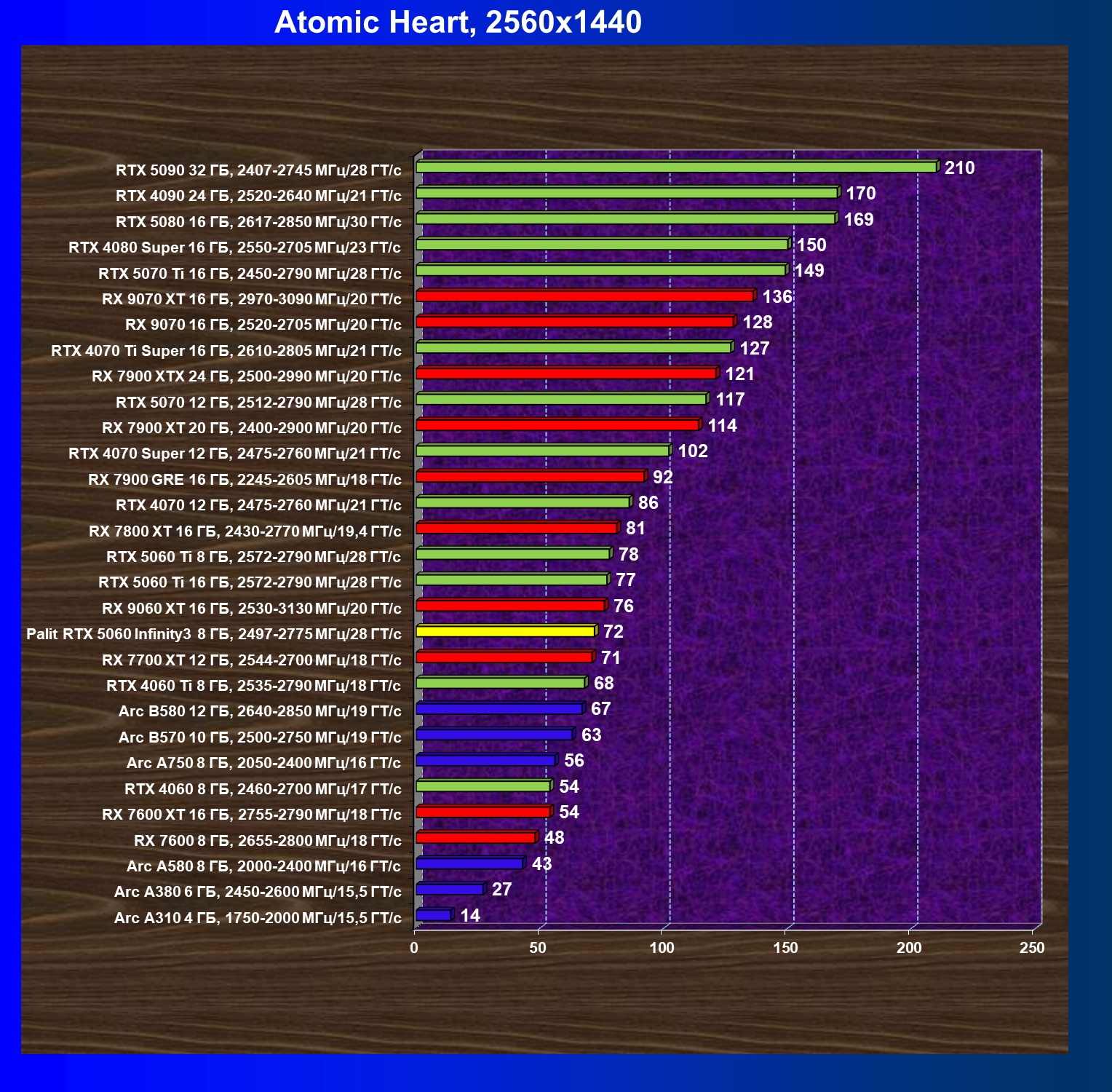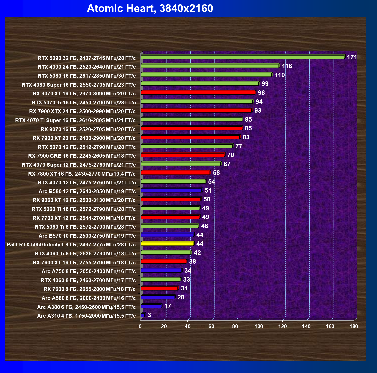 В данном рейтинге учитываются только результаты в играх без включения RT и DLSS, в целом в классических играх RTX 5060 в целом, и карта Palit в частности, смотрится очень хорошо!