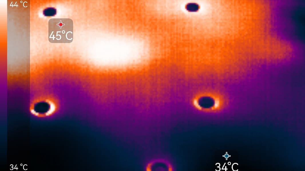 В режиме простоя в 2D температура была не выше 37,6 °C, вентиляторы не работали, уровень шума был равен фоновому — 18 дБА.