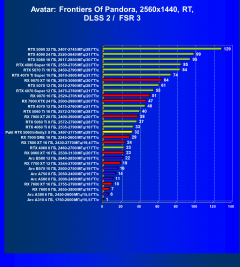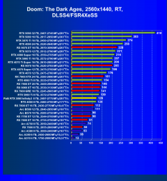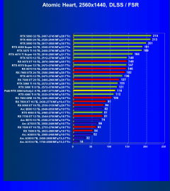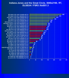 - Результаты тестов со включенной аппаратной трассировкой лучей и/или DLSS/FSR/XeSS в разрешениях 1920×1080, 2560×1440 и 3840×2160