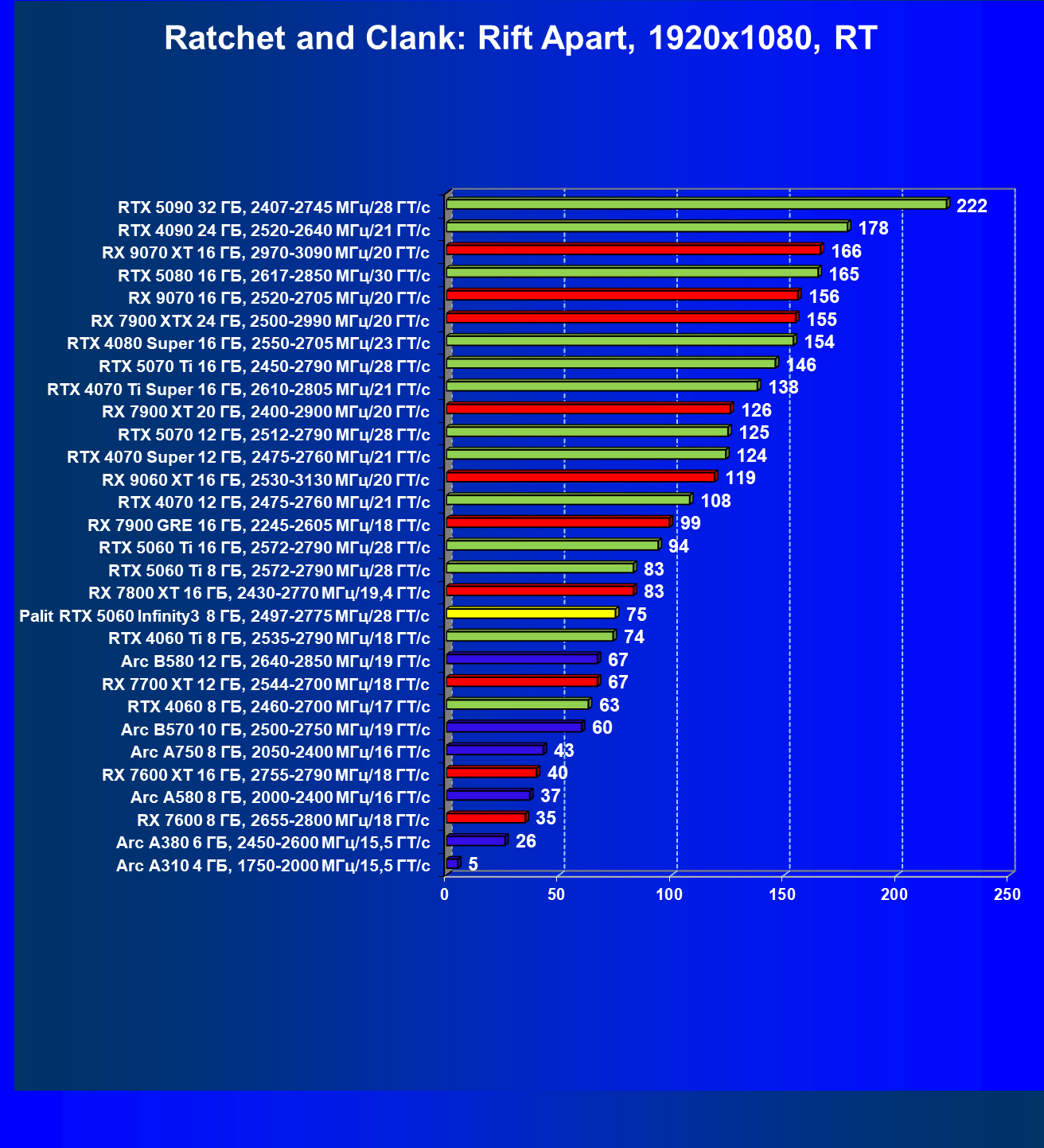 | 08 | Arc B570 10 ГБ, 2500—2750 МГц/19 ГТ/с | 156 | 452 | 29 000 |